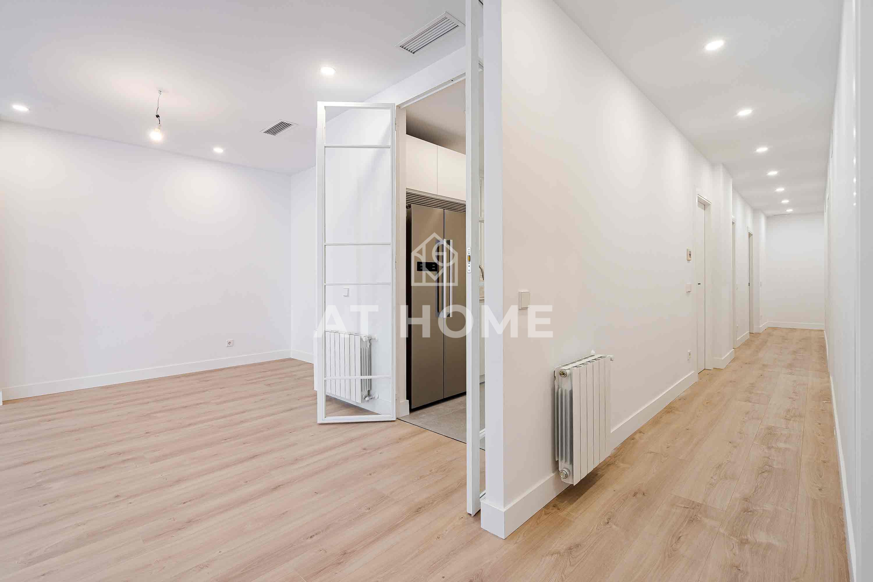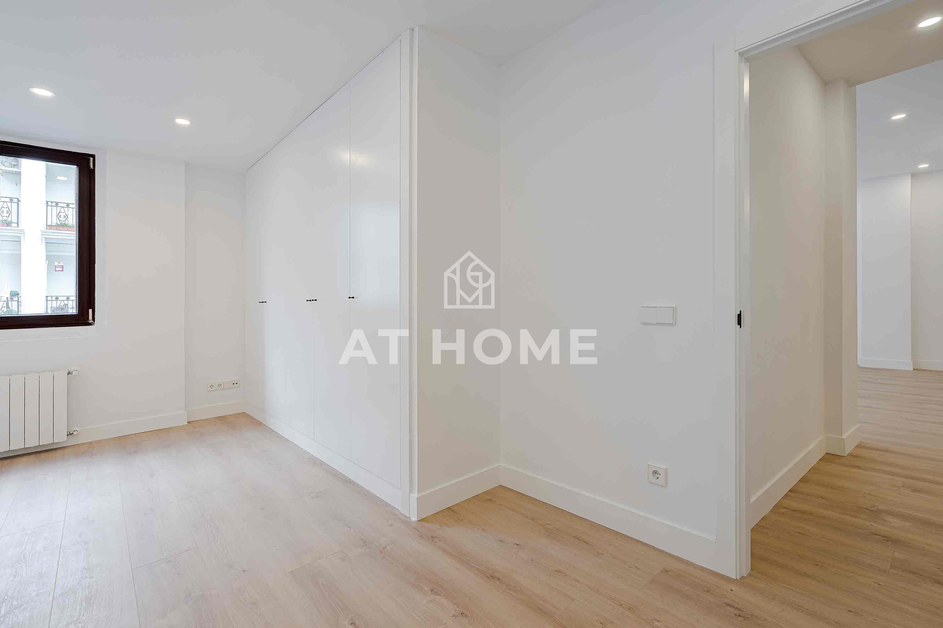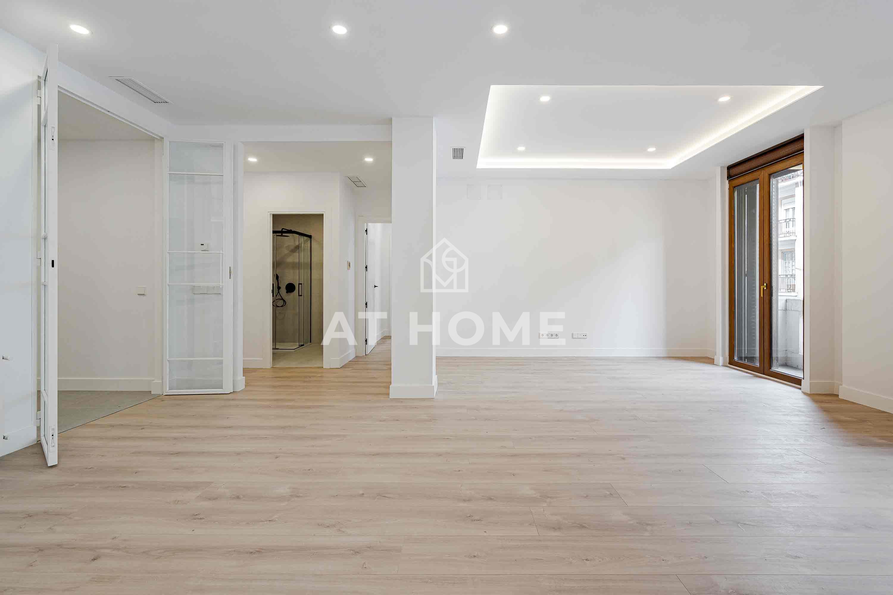 Magnificent flat in Barrio Salamanca, between Ortega y Gasset and Juan Bravo. With a living area of 155sqm, it has 4 bedrooms with fitted wardrobes and 3 complete bathrooms, including 2 en suite. It enjoys a spacious living-dining room with 2 balconies to the street, a fully equipped independent kitchen and excellent features such as individual gas heating, air conditioning, double glazed double glazed windows and white lacquered wooden doors. The integral refurbishment was completed in February, and the access to the building is adapted for people with reduced mobility.