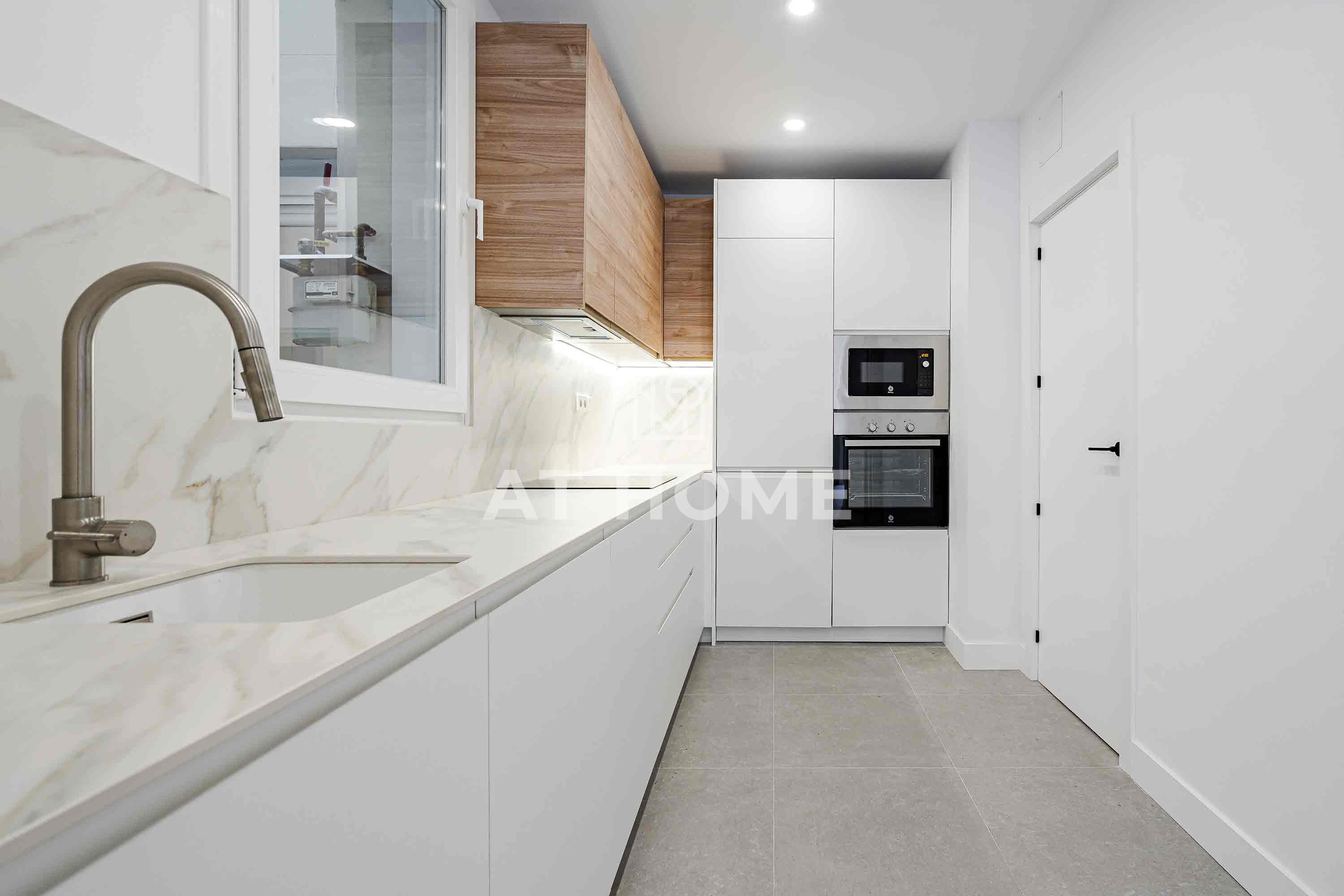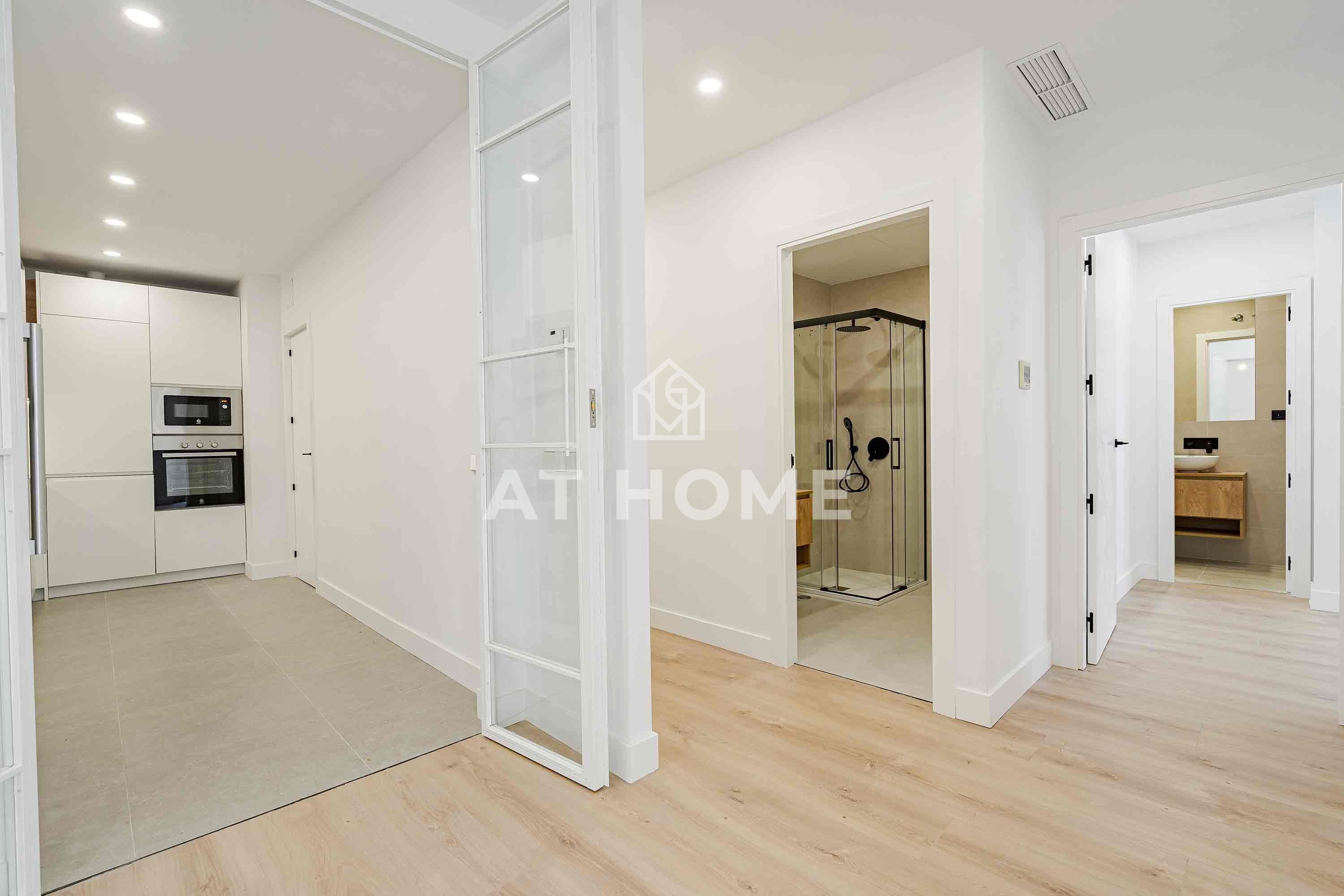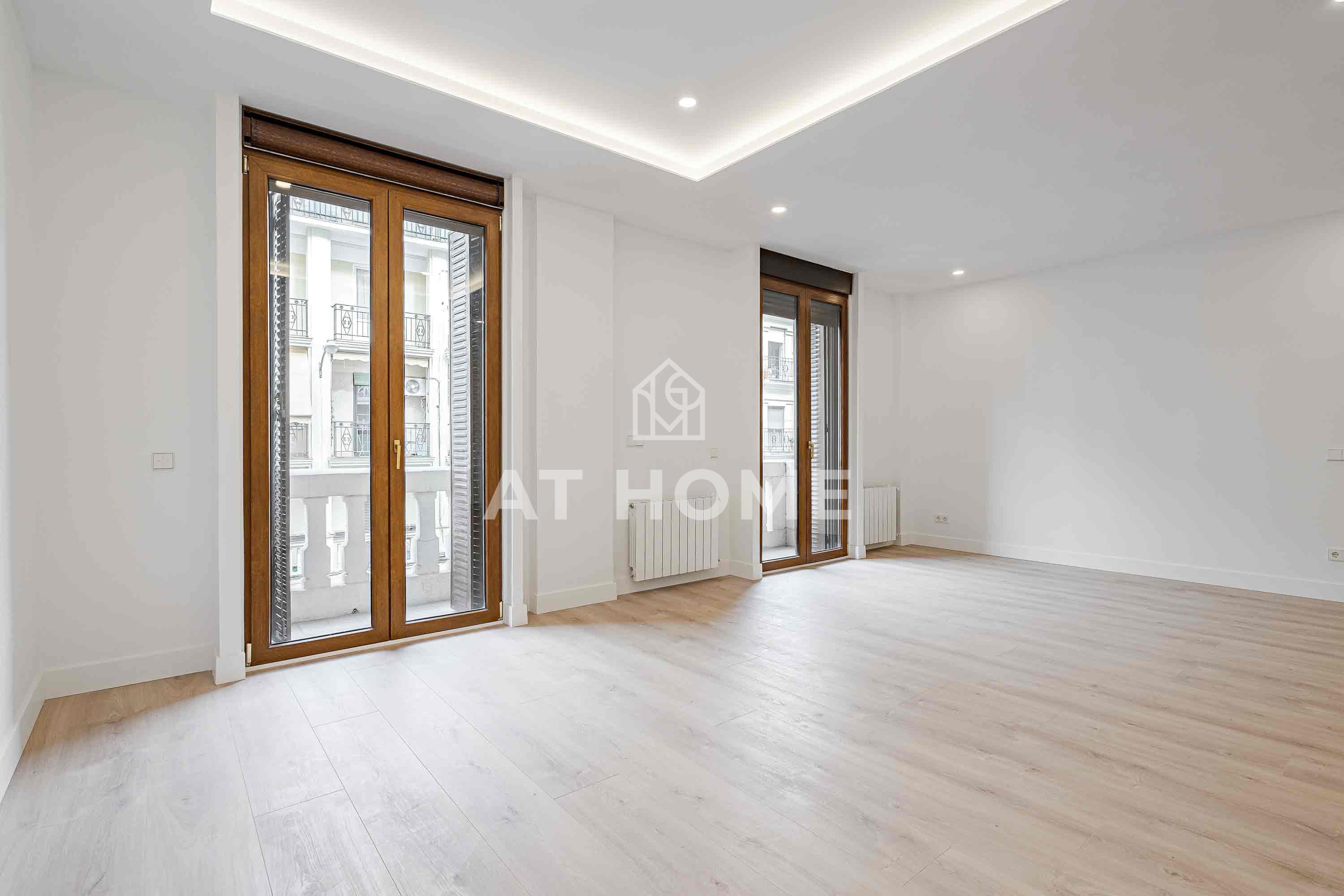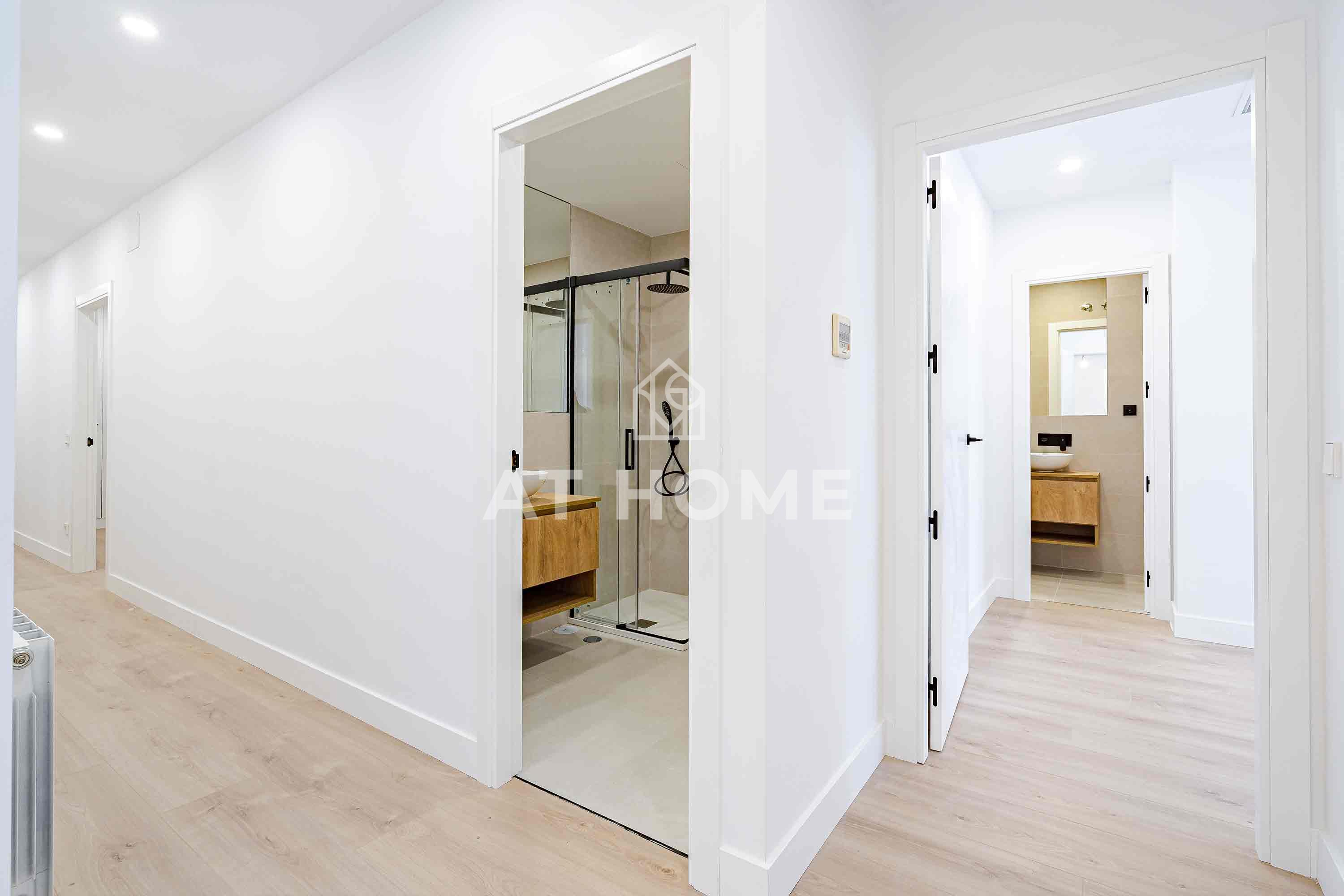 Magnificent flat in Barrio Salamanca, between Ortega y Gasset and Juan Bravo. With a living area of 155sqm, it has 4 bedrooms with fitted wardrobes and 3 complete bathrooms, including 2 en suite. It enjoys a spacious living-dining room with 2 balconies to the street, a fully equipped independent kitchen and excellent features such as individual gas heating, air conditioning, double glazed double glazed windows and white lacquered wooden doors. The integral refurbishment was completed in February, and the access to the building is adapted for people with reduced mobility.