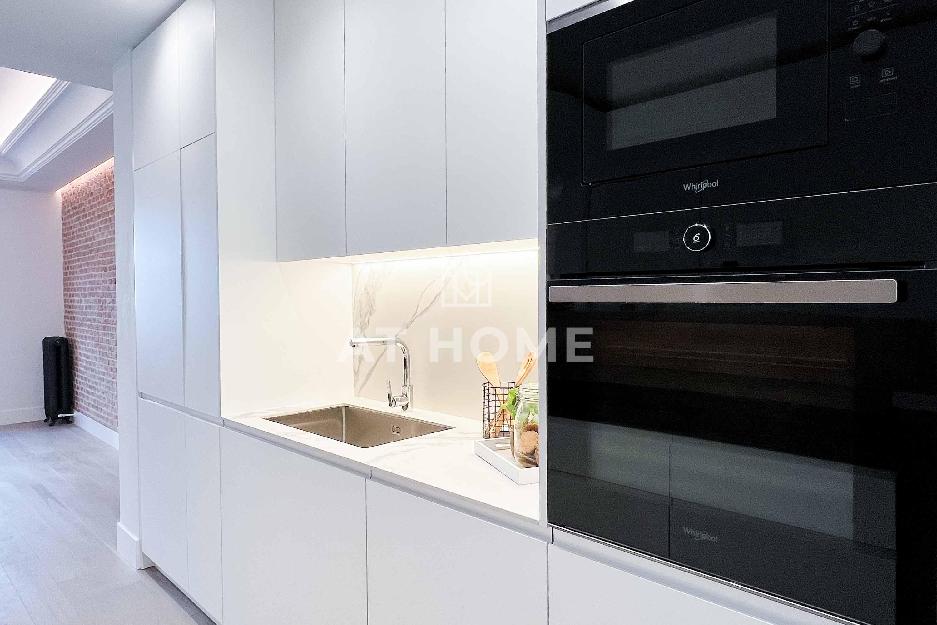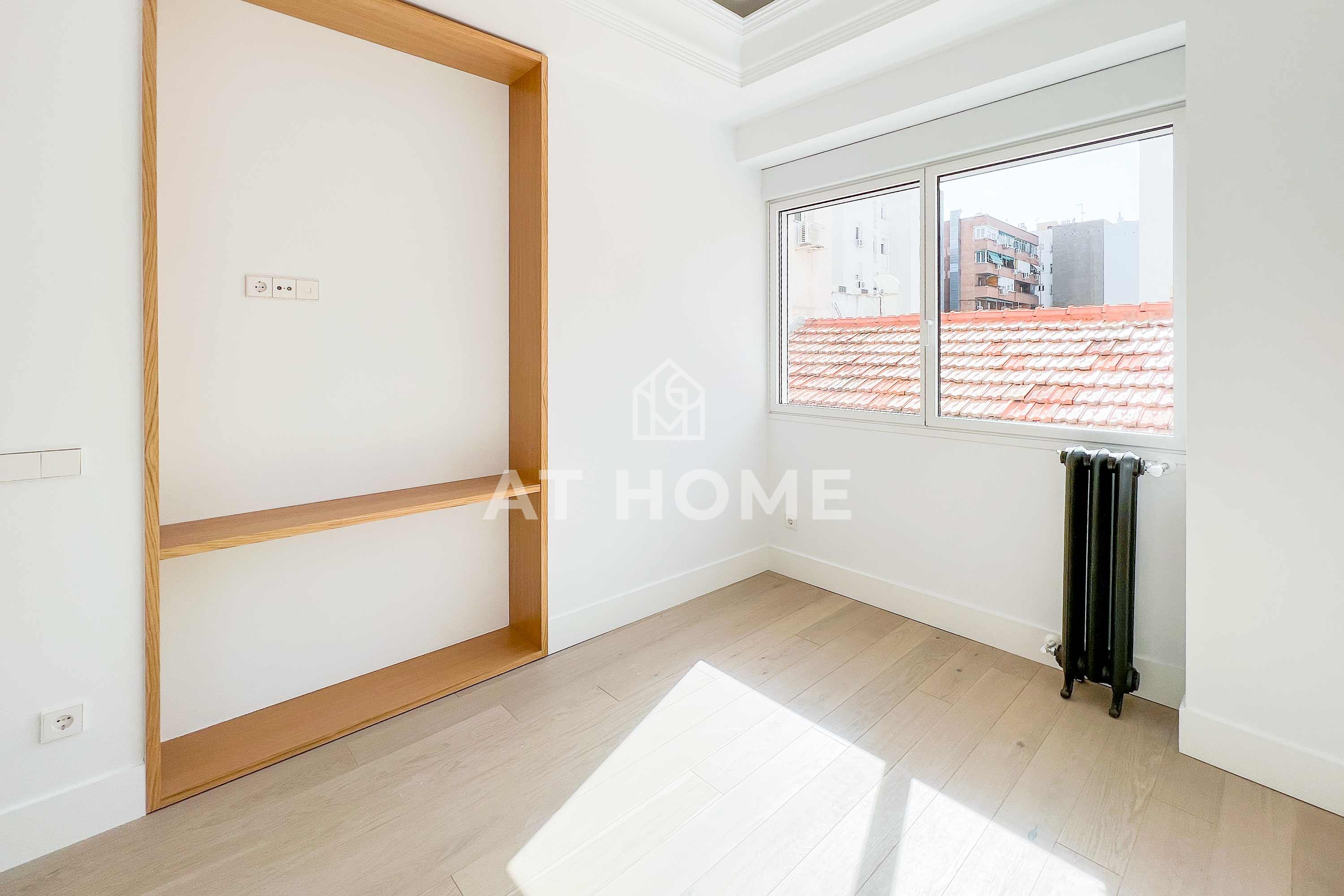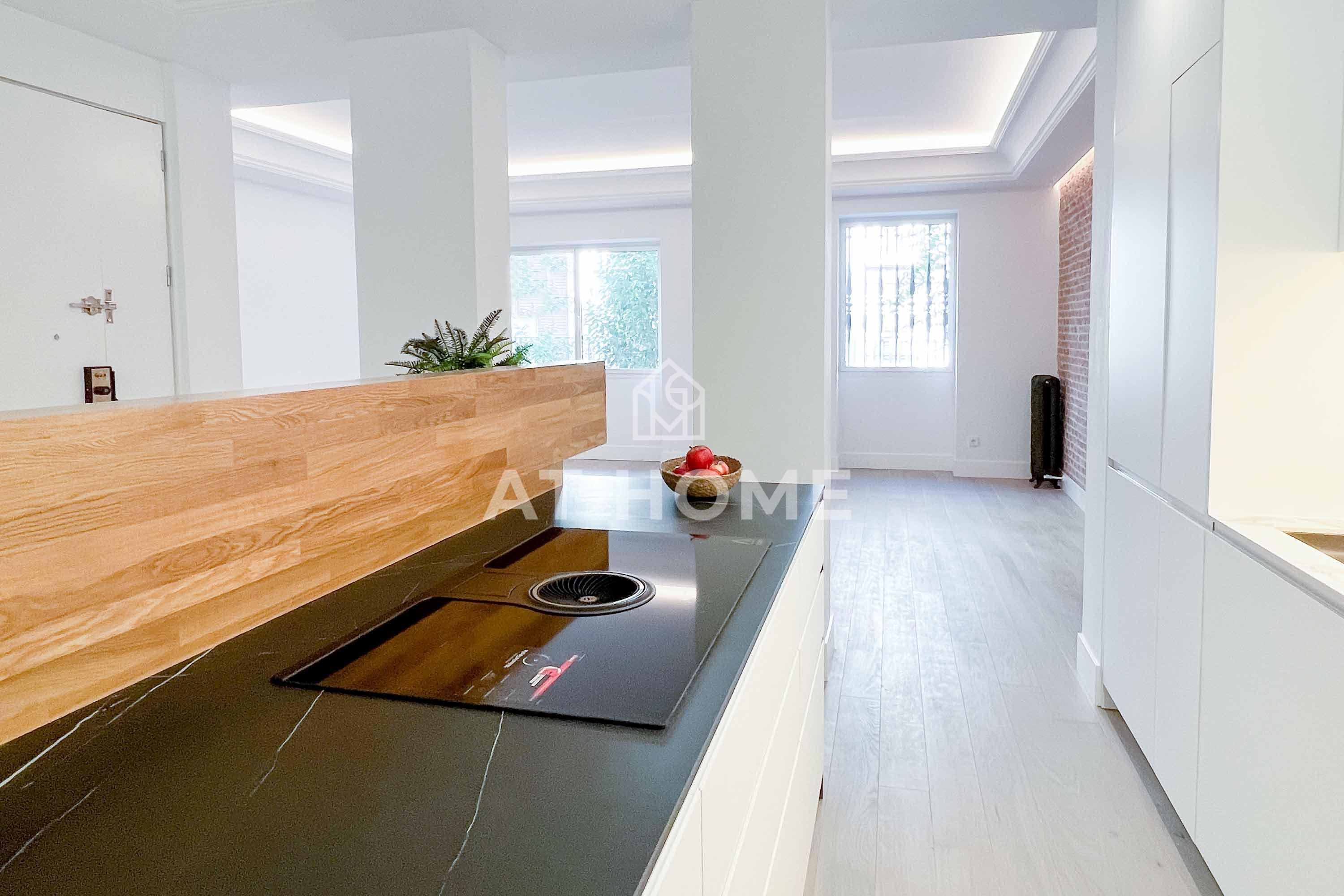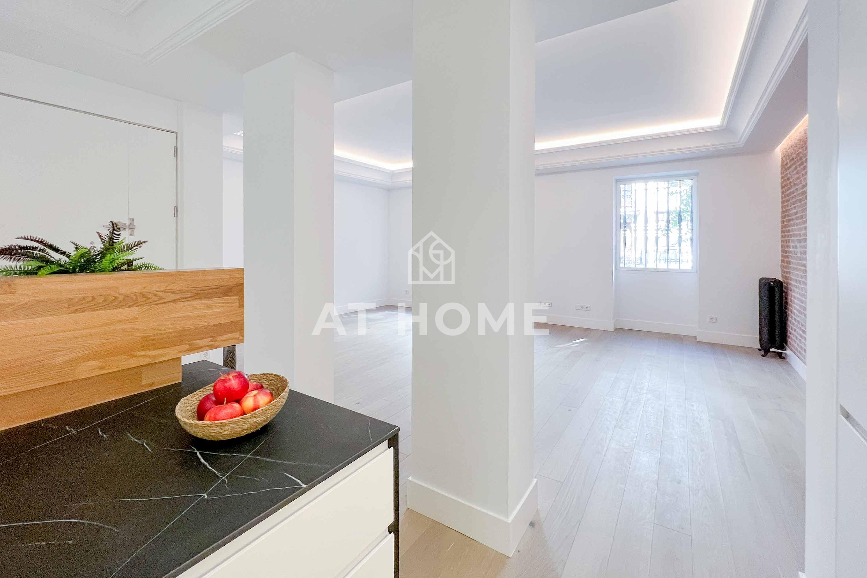 Beautiful renovated apartment with luxury finishes and complete equipment in the heart of the Salamanca neighborhood. Exposed brick in the living room. Abundant natural light, open kitchen. The entire apartment has high ceilings with LED lighting in the moldings. It has: