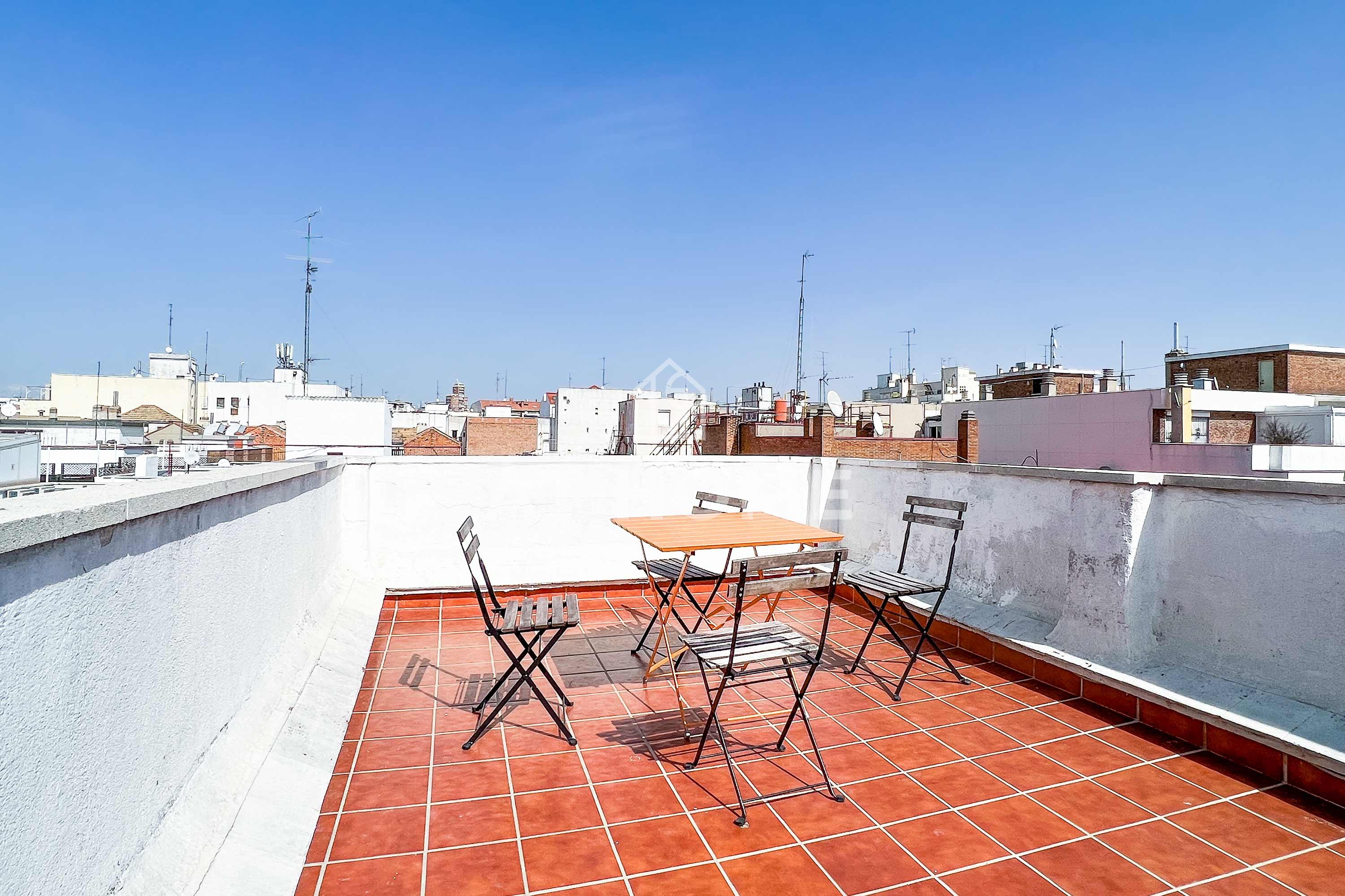 Miele washer and dryer. Ducted air conditioning. Gas heating with original radiators, parquet floor. The building has a communal terrace with 360º views.