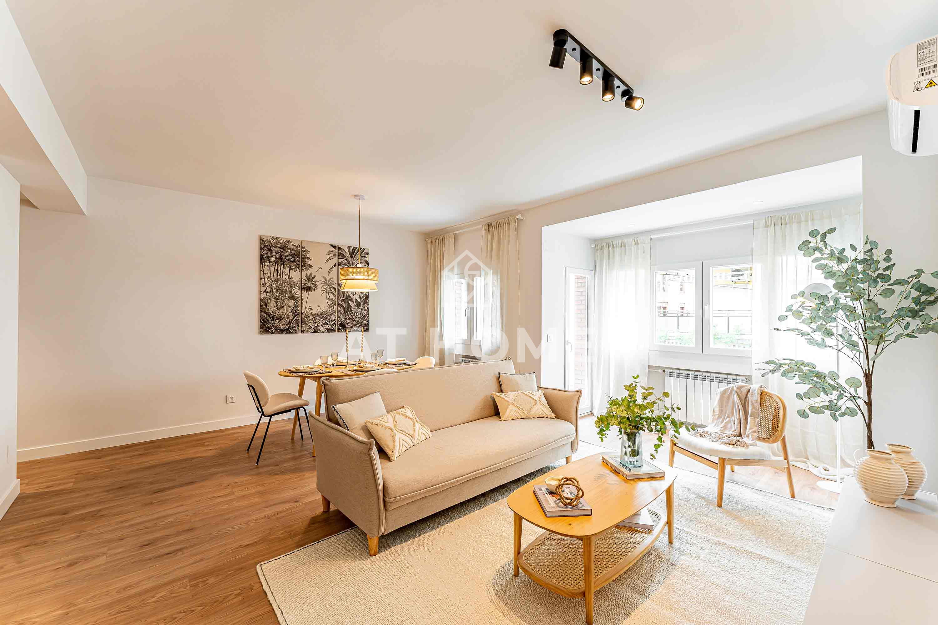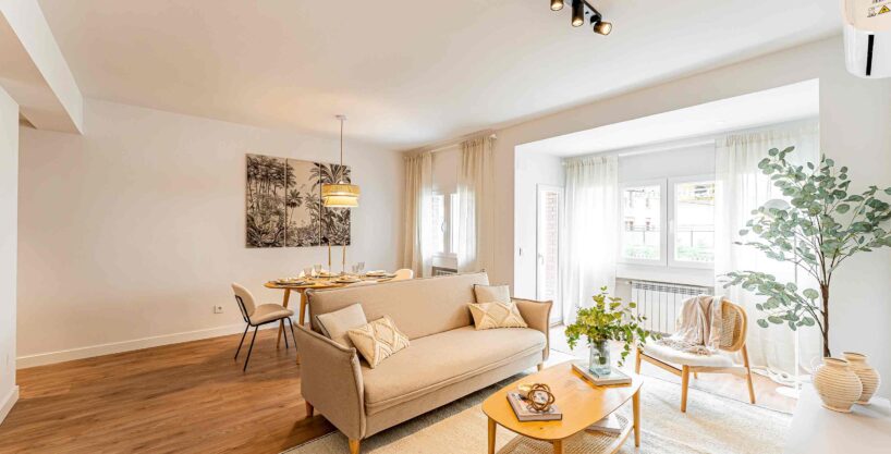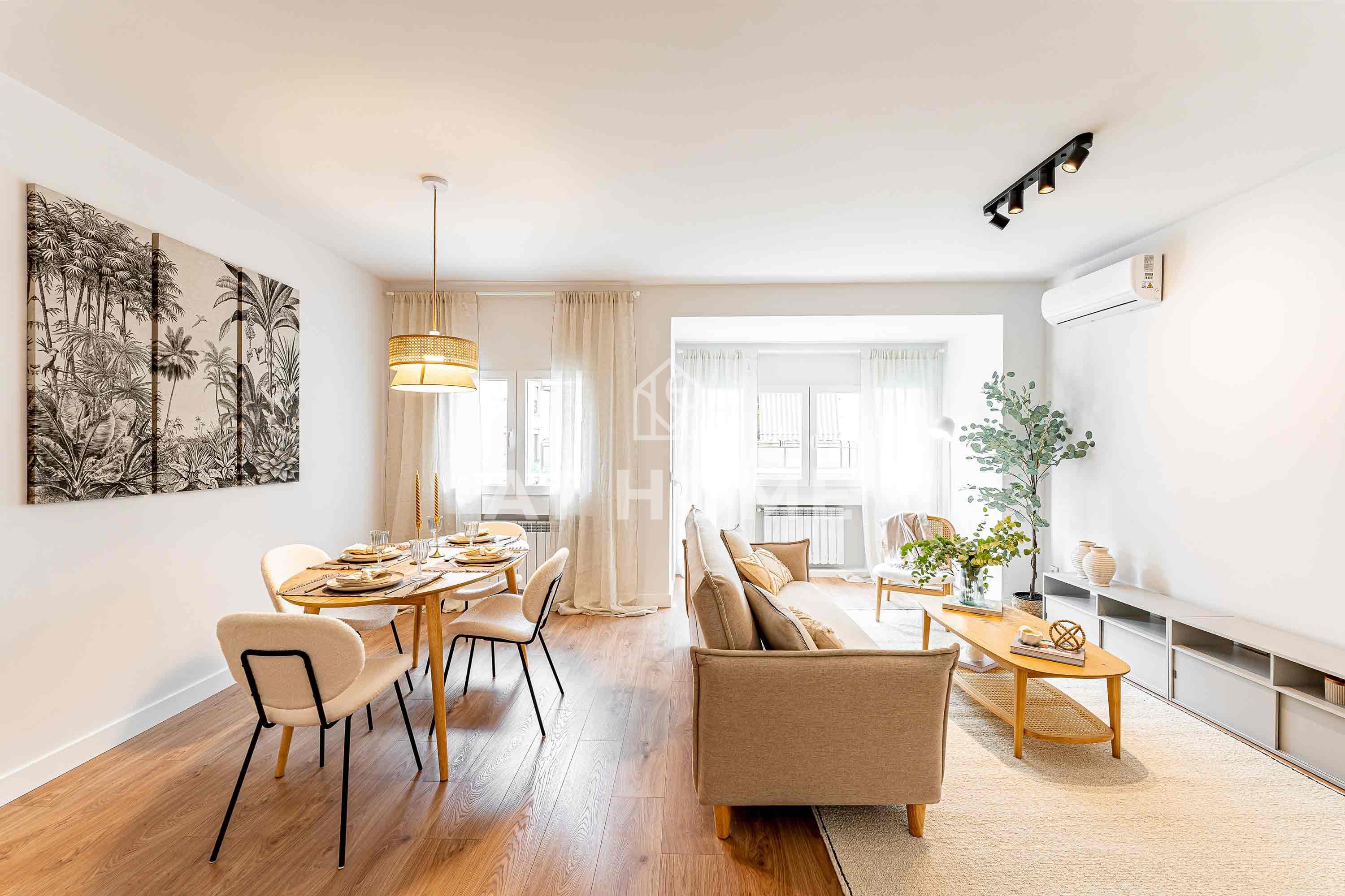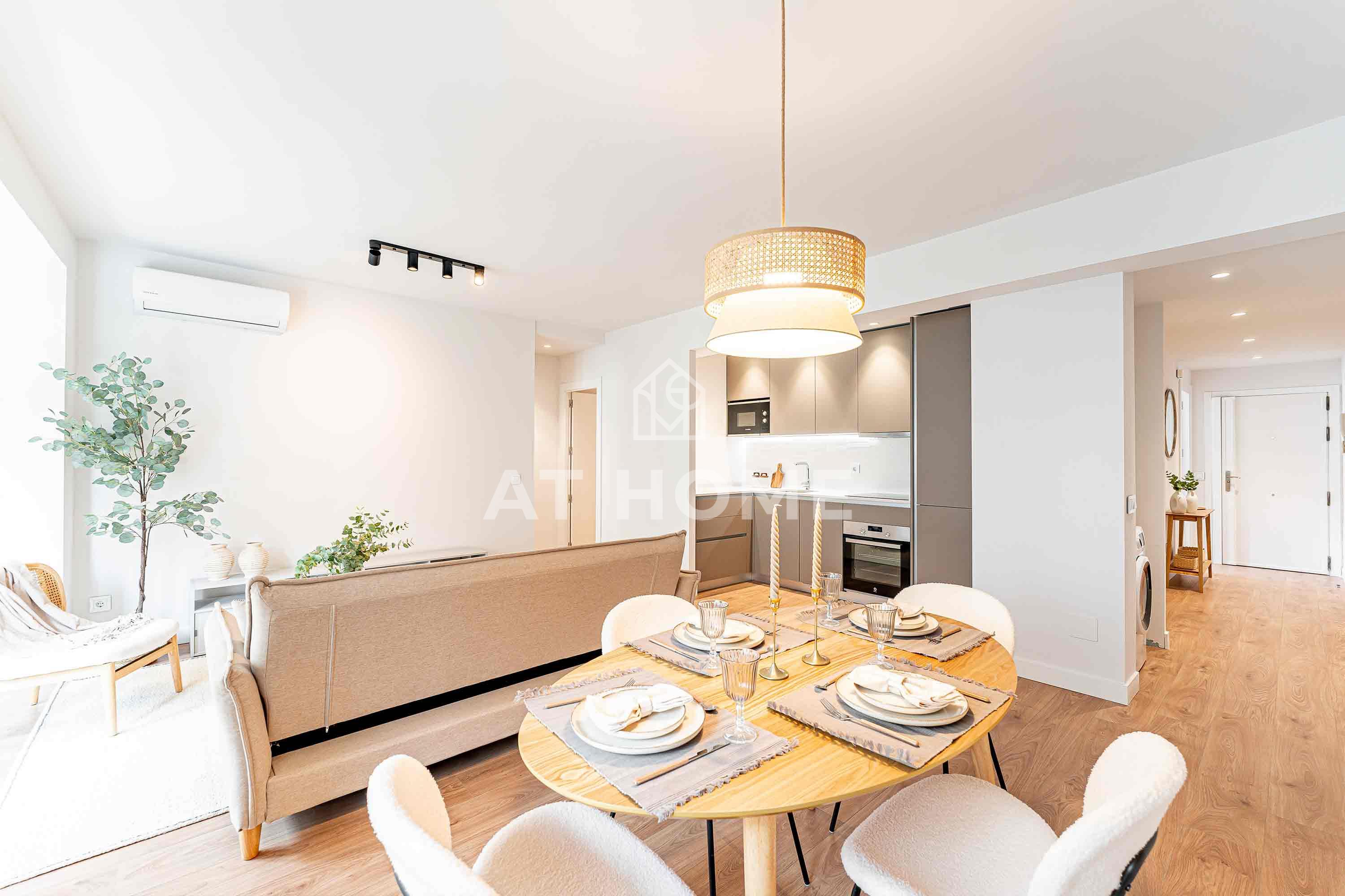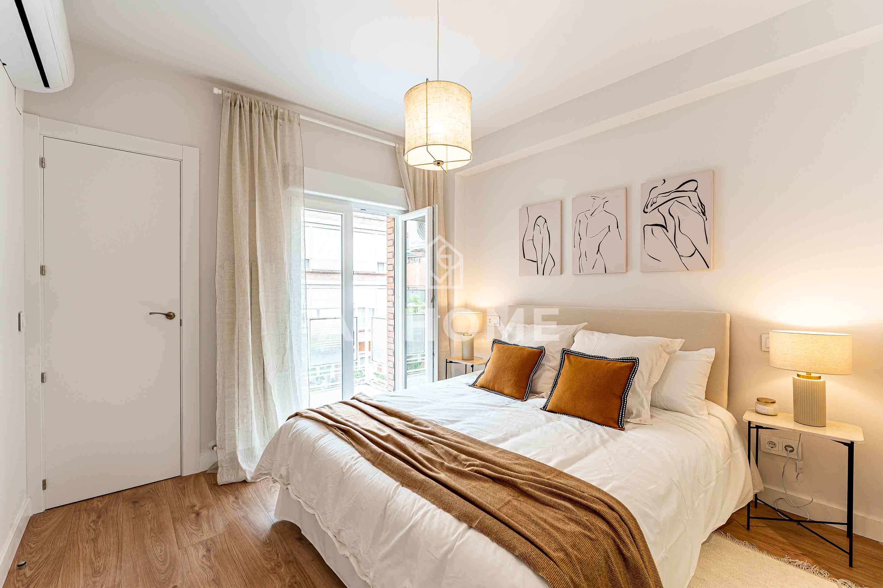 Unique opportunity in Chamberí, Madrid! Exterior flat of 101m2 in Almagro Totally refurbished with design and quality. Distributed in 3 bedrooms, 2 bathrooms, spacious living-dining room with terrace and integrated kitchen. High quality finishes, wooden floors, high ceilings, PVC windows, individual heating and air conditioning in all rooms. Kitchen equipped with top brand appliances. Located in one of the most prestigious areas of Madrid, close to Ponzano street and surrounded by services. A unique opportunity in an exceptional location.