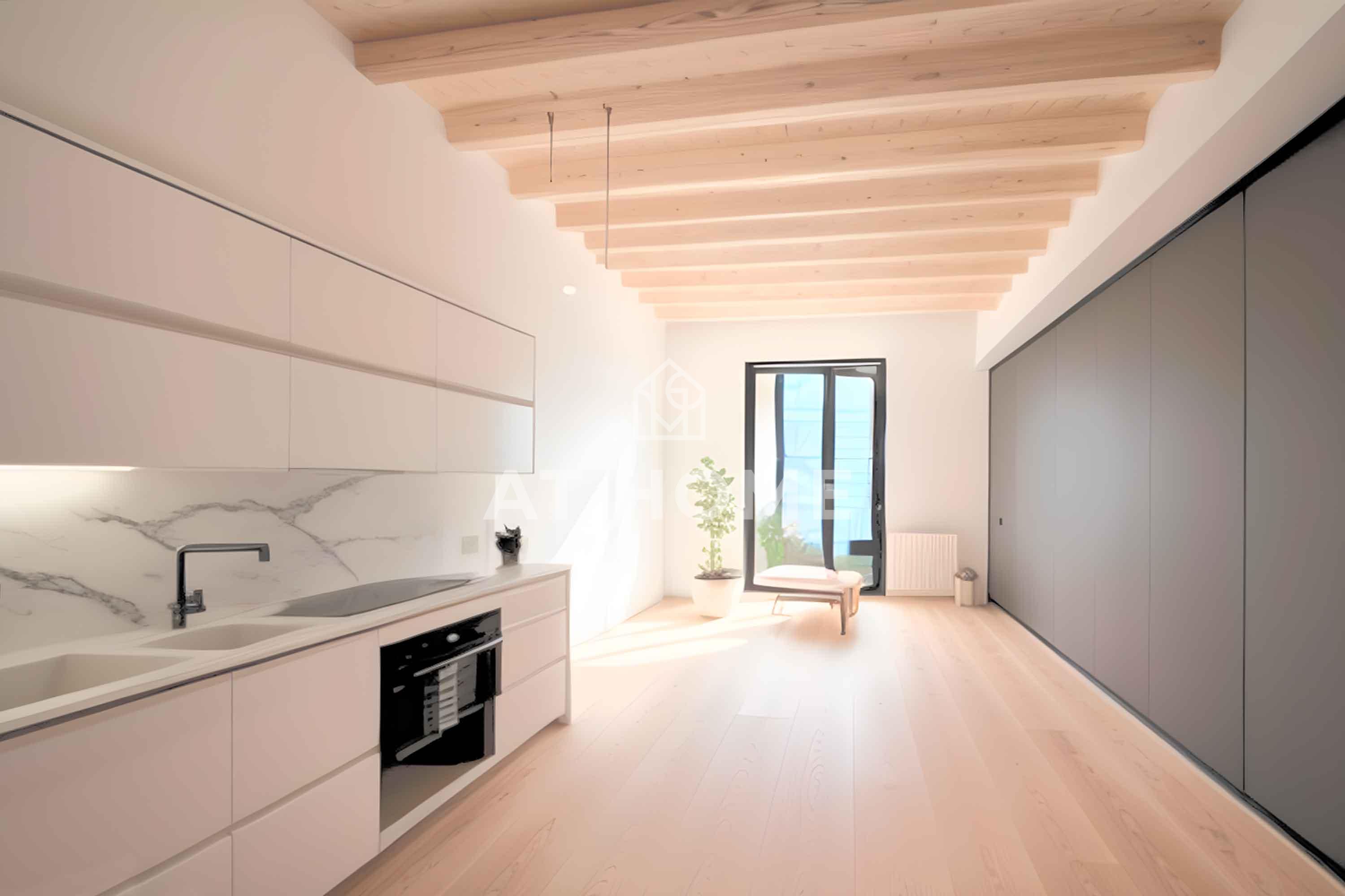 In one of the most promising enclaves of Barcelona, we present this spectacular new construction project carried out by the renowned architect Victor Alarcón in a 1900 building. 7 exclusive apartments completely renovated located on the main floor of two buildings. It is undoubtedly a project with soul where care has been taken to the smallest detail, restoring decorative elements of the building built in 1900, such as parquet floors, frames, doors etc.. The apartments have an optimal distribution and a modern design, with large spaces full of comfort. The distribution takes advantage of the natural light and ventilation of the rooms. The division of the spaces has been made with materials that allow the passage of light through beautiful interior gardens, some of them with fully landscaped terraces with private pool and with different areas to enjoy. Electricity, plumbing, water and connections are state-of-the-art. The kitchen is fully equipped with premium materials and appliances from leading brands.