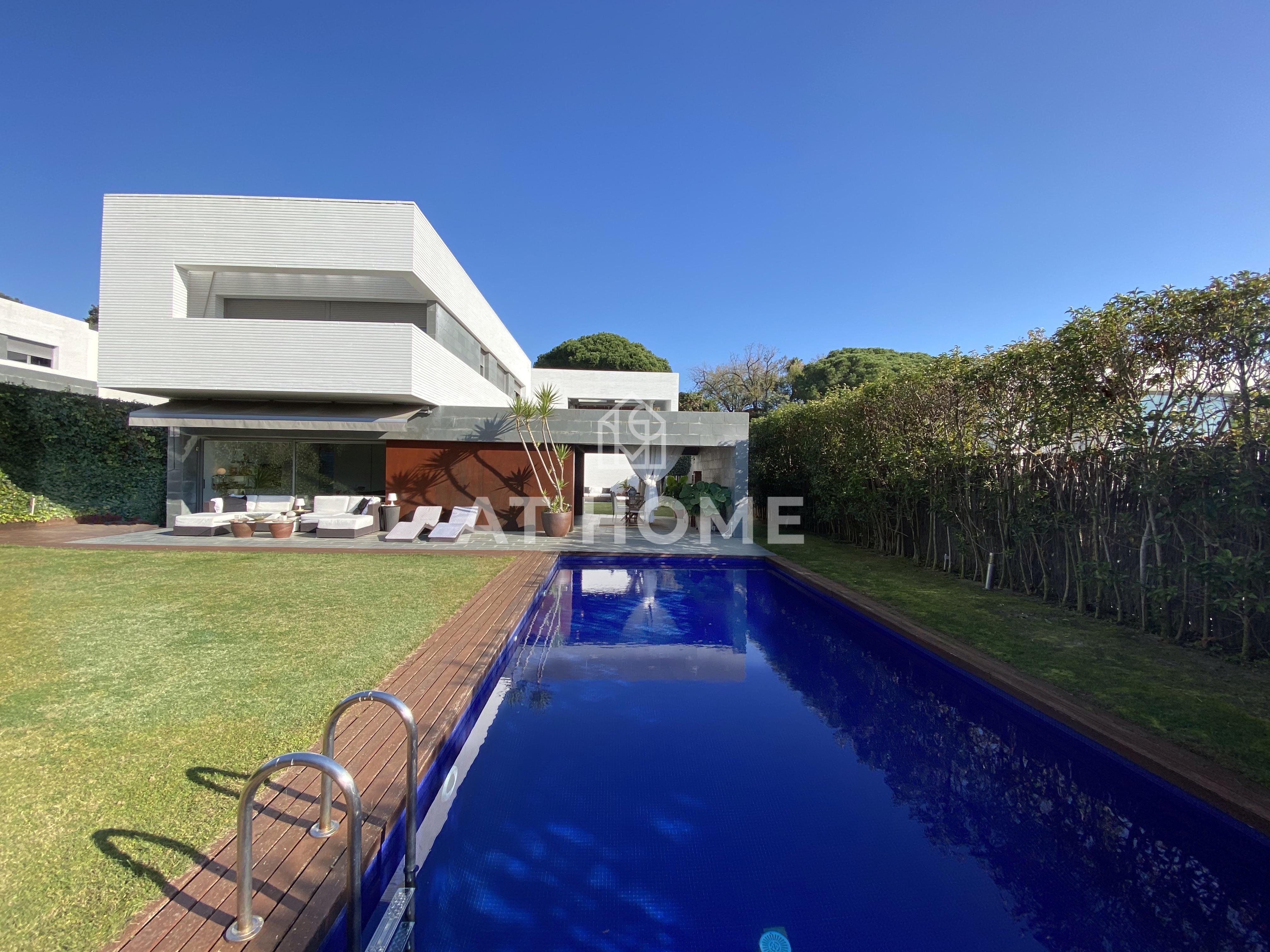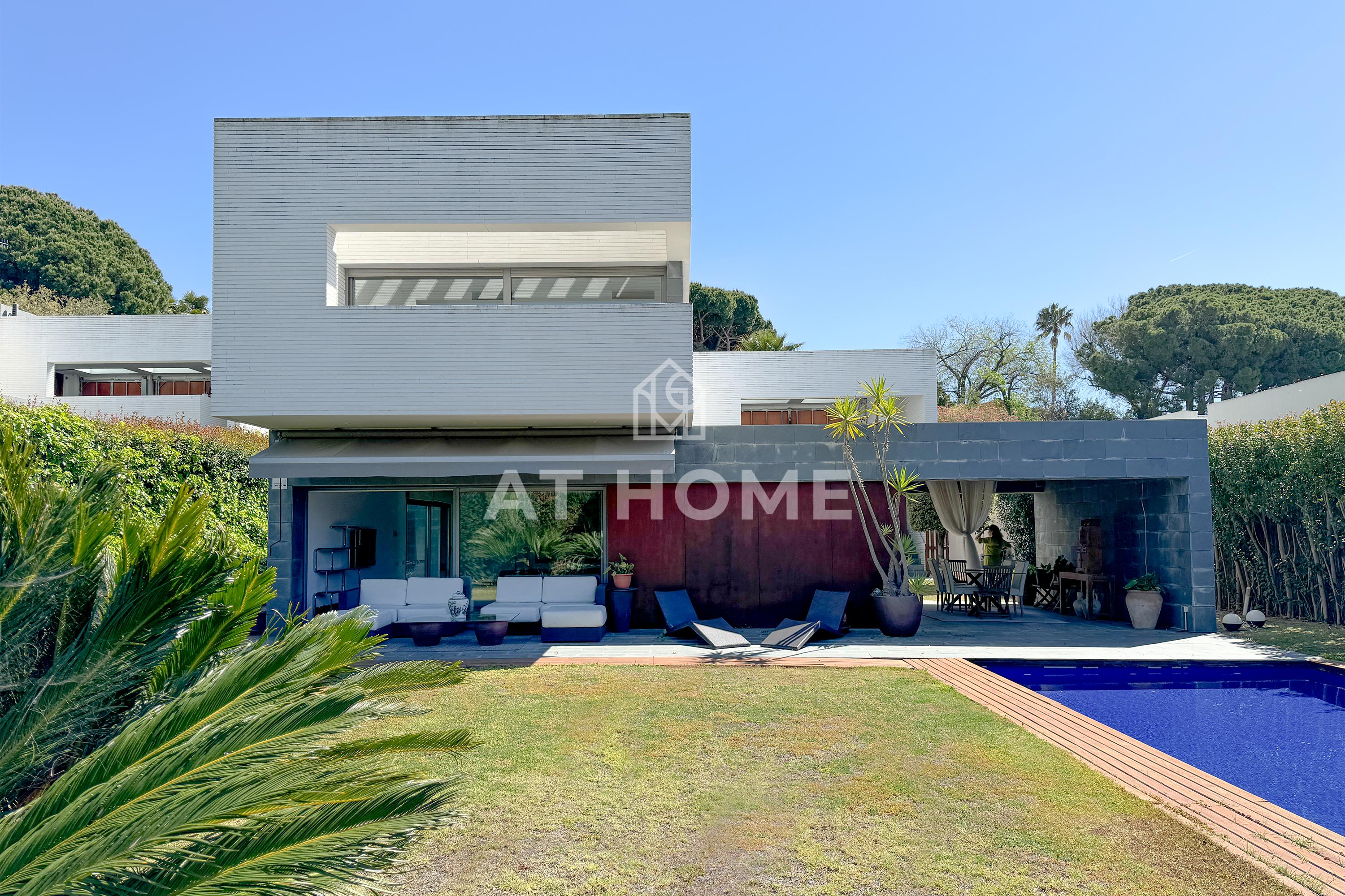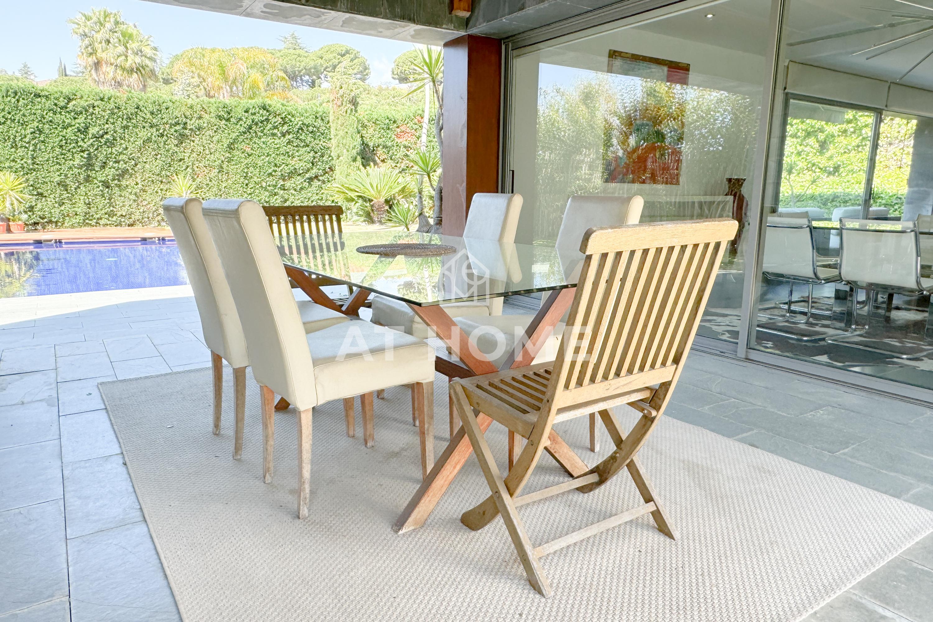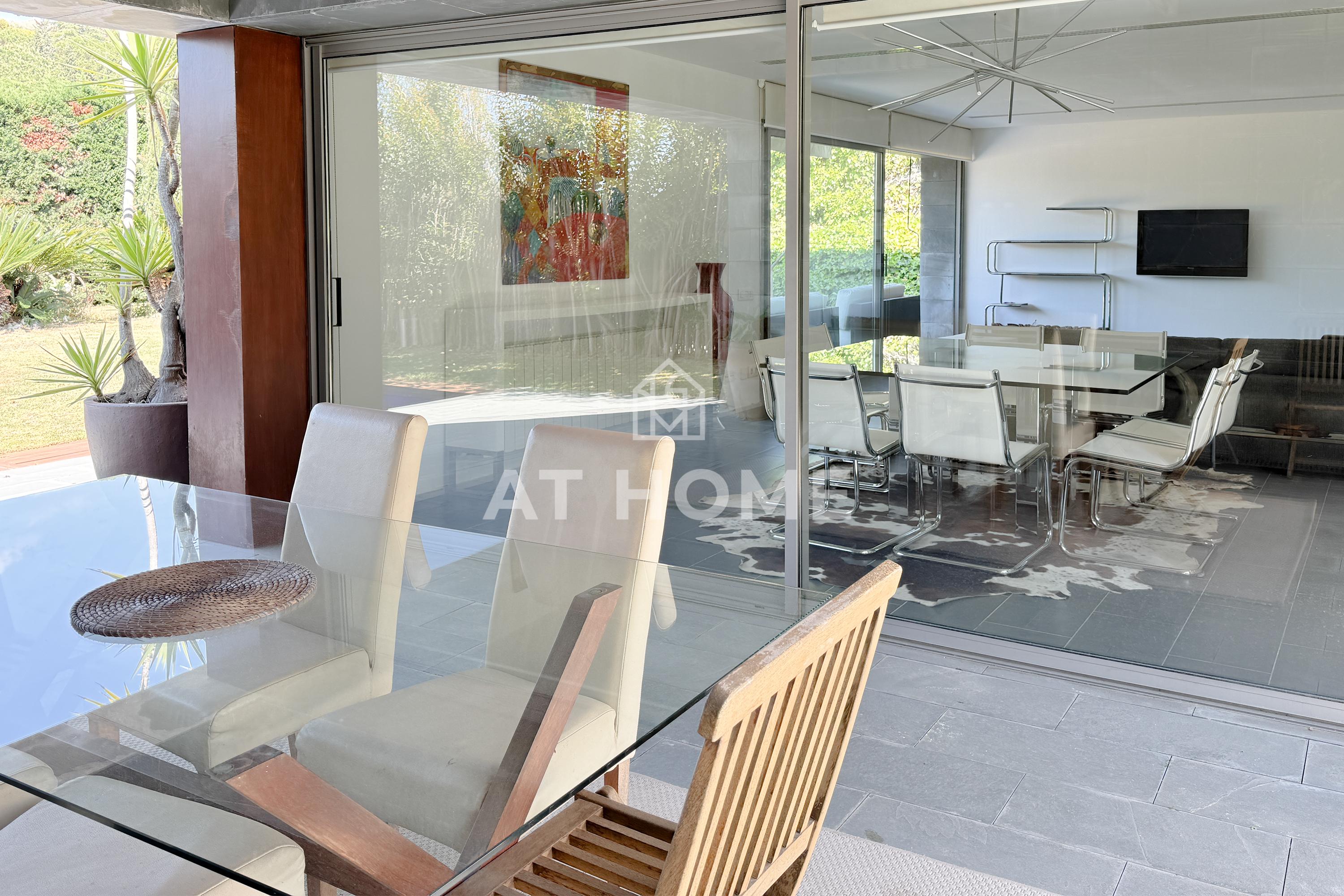 On the first floor, the house has an entrance hall, a fully equipped kitchen, a living-dining room with access to two porches, an illuminated swimming pool, a garden with lawn and several bedroom suites, a multipurpose room, a service suite, a laundry room and a guest toilet. The property also has a multipurpose room of 70 m2 with a large study area and a second living room. Do not miss the opportunity to live in a luxury house in one of the most privileged areas of the Maresme.