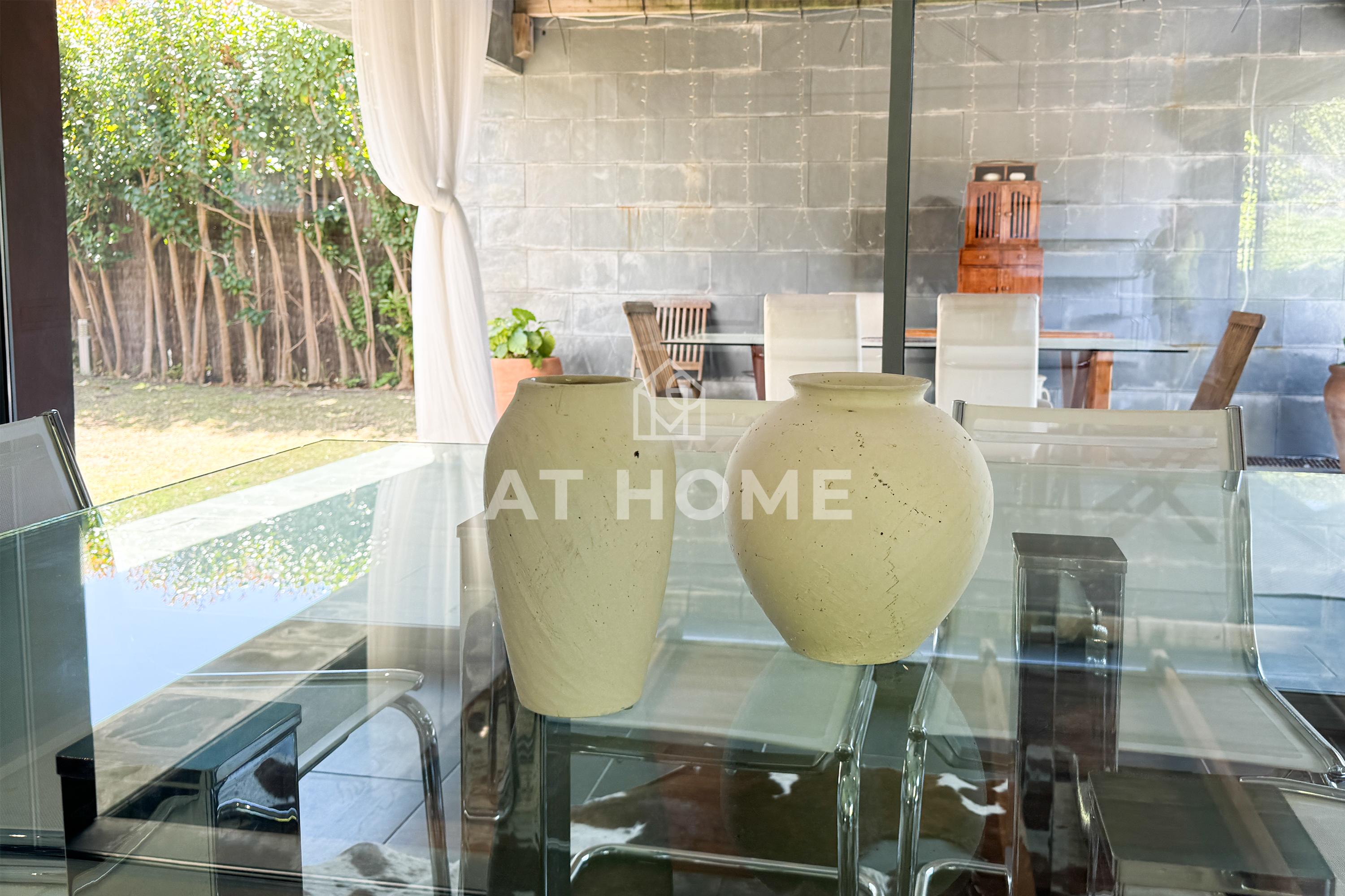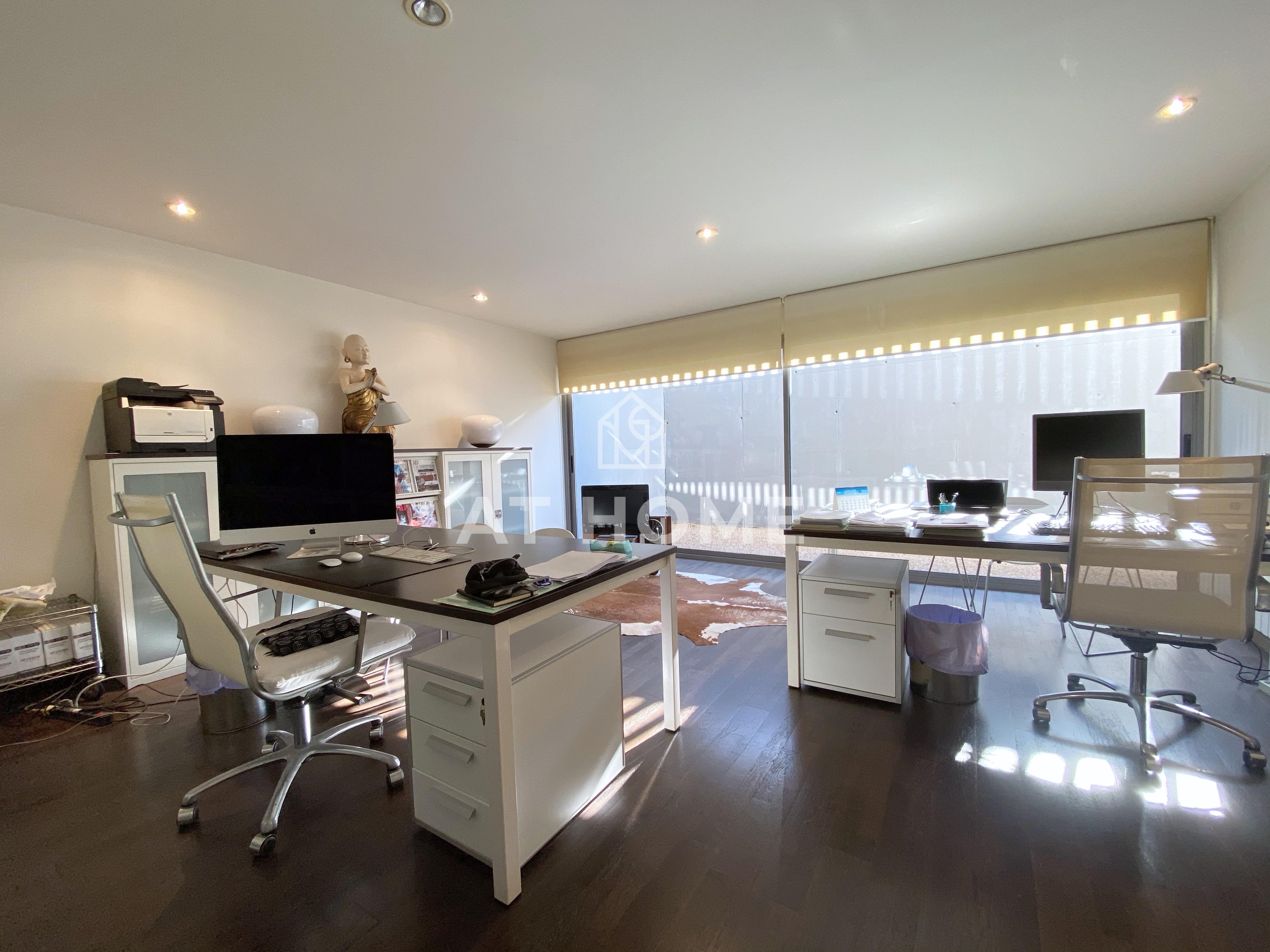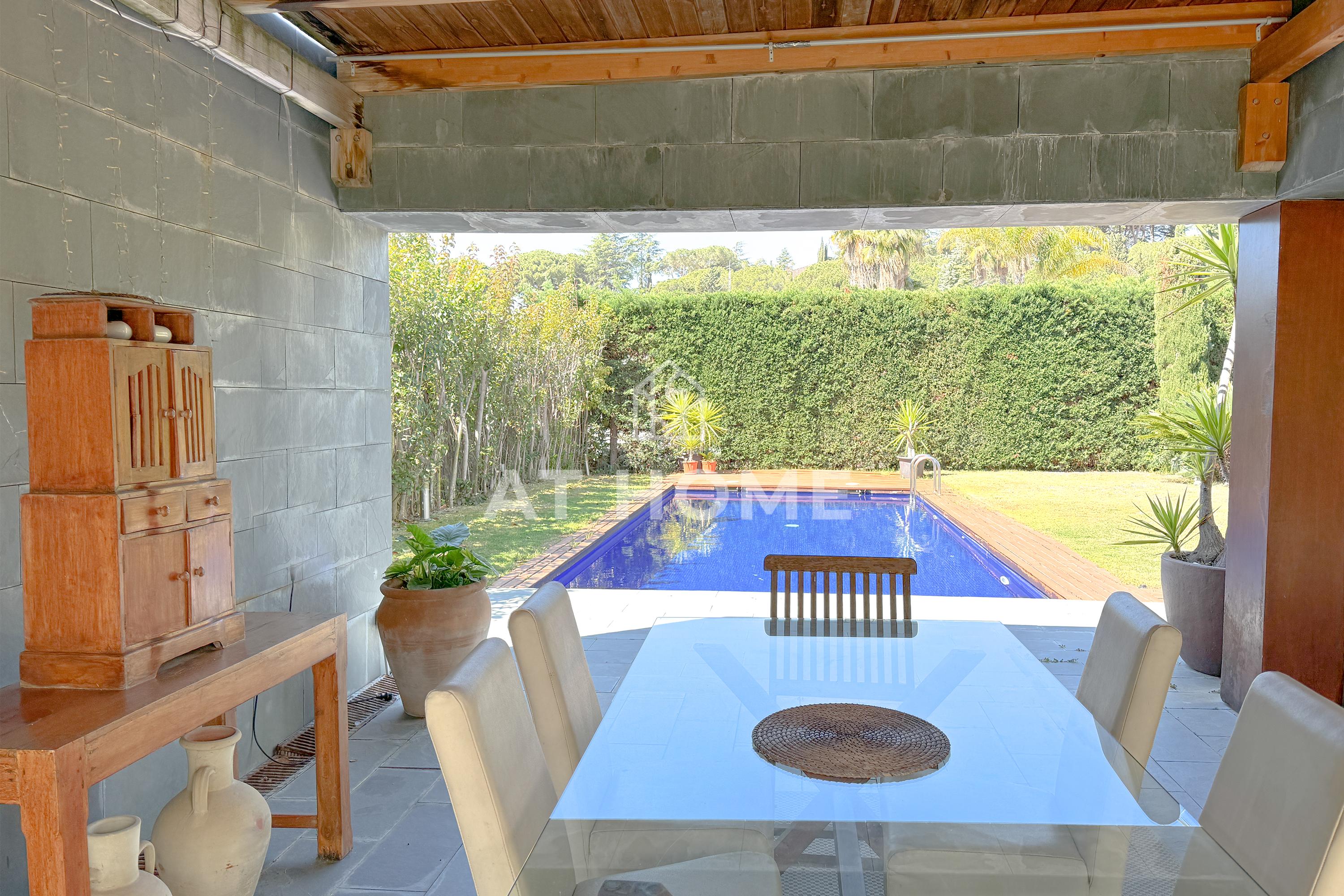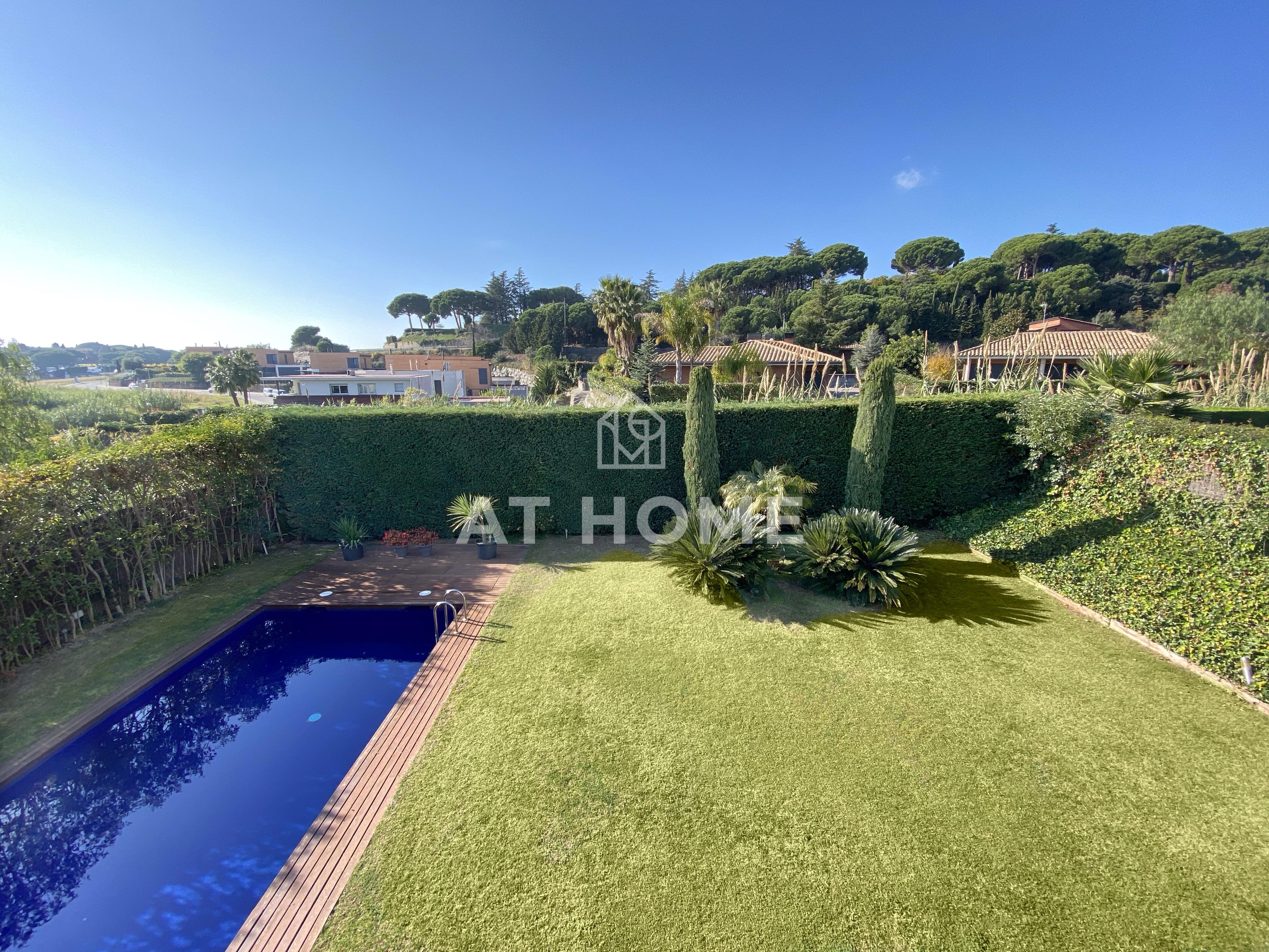 On the first floor, the house has an entrance hall, a fully equipped kitchen, a living-dining room with access to two porches, an illuminated swimming pool, a garden with lawn and several bedroom suites, a multipurpose room, a service suite, a laundry room and a guest toilet. The property also has a multipurpose room of 70 m2 with a large study area and a second living room. Do not miss the opportunity to live in a luxury house in one of the most privileged areas of the Maresme.