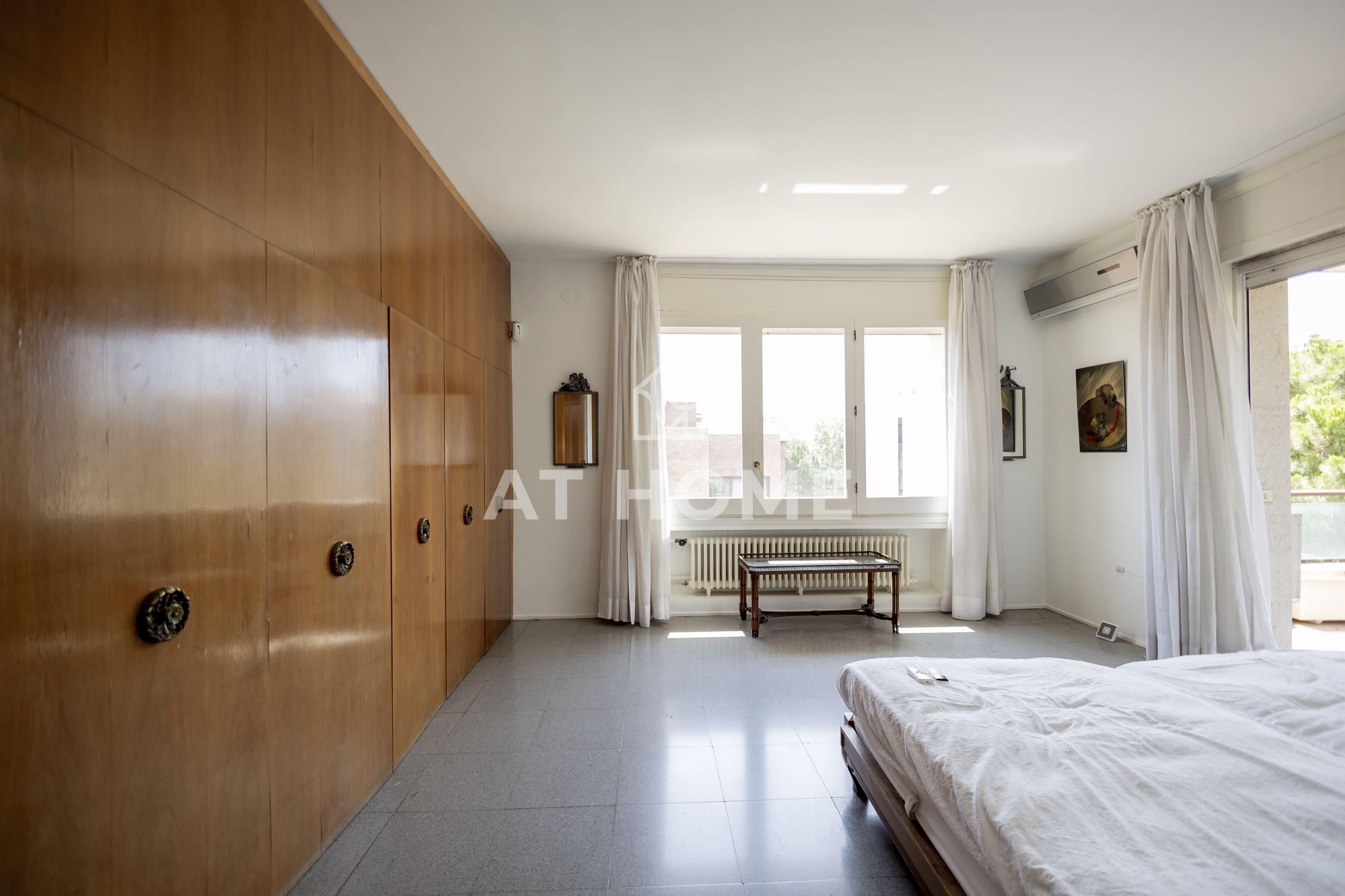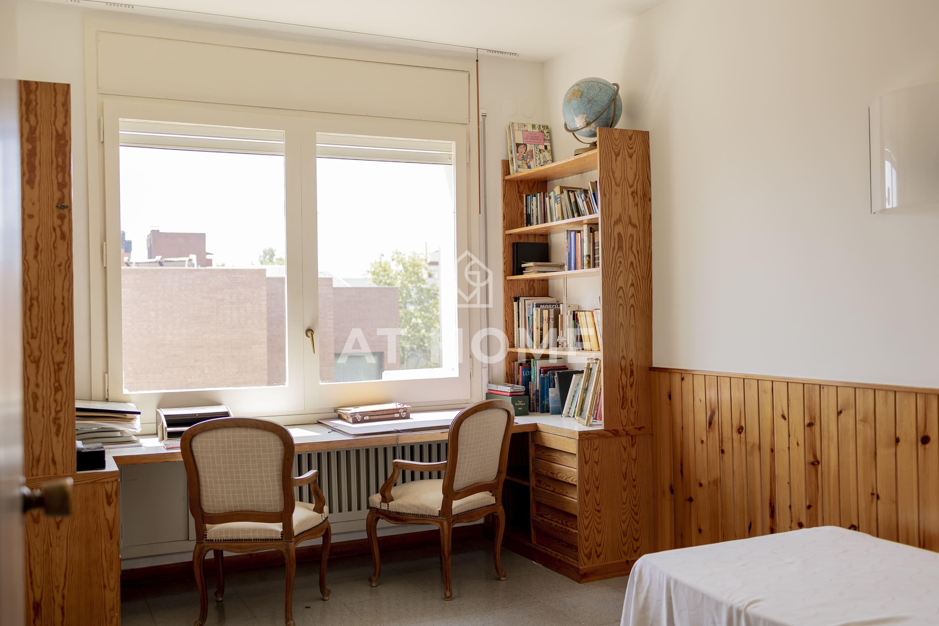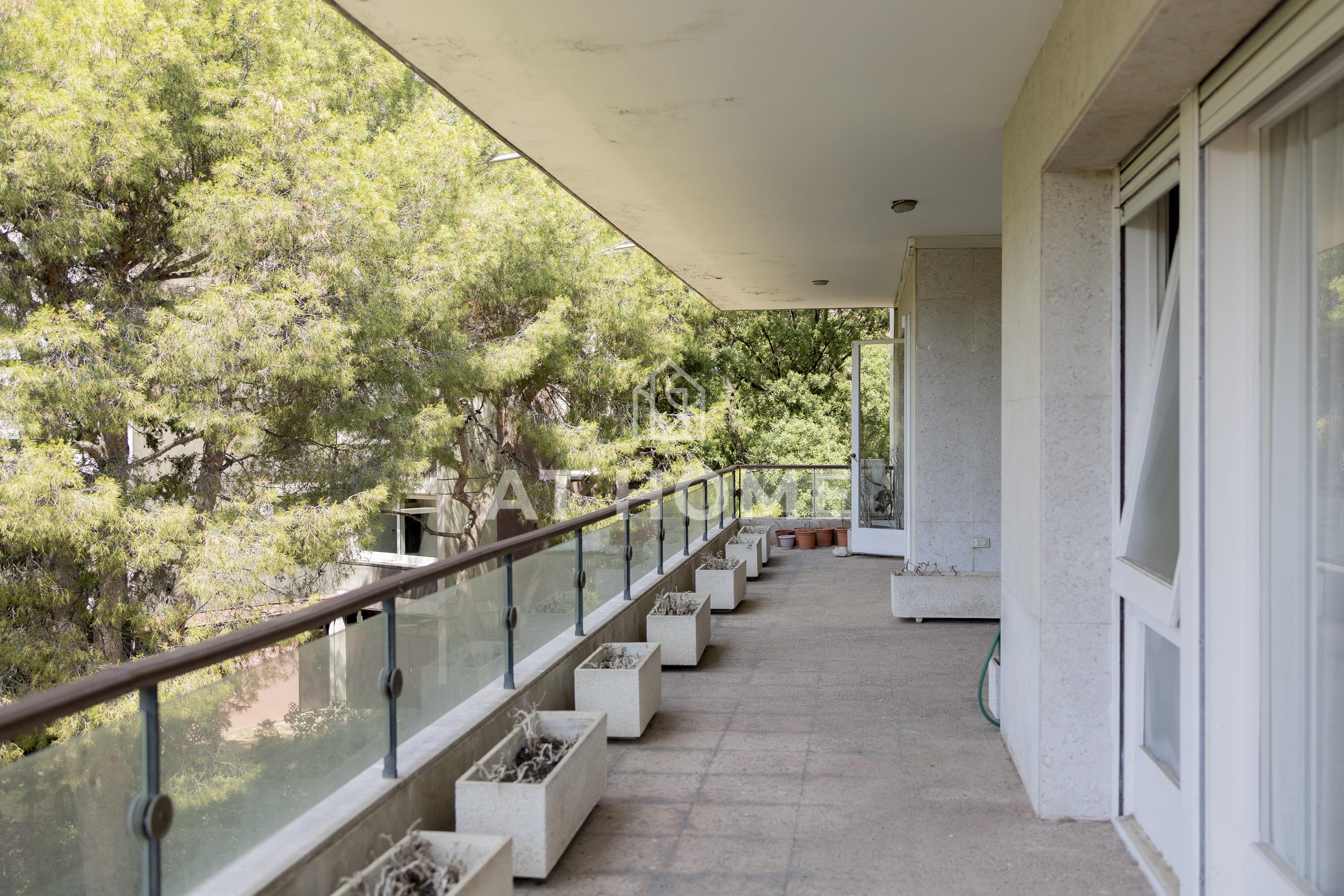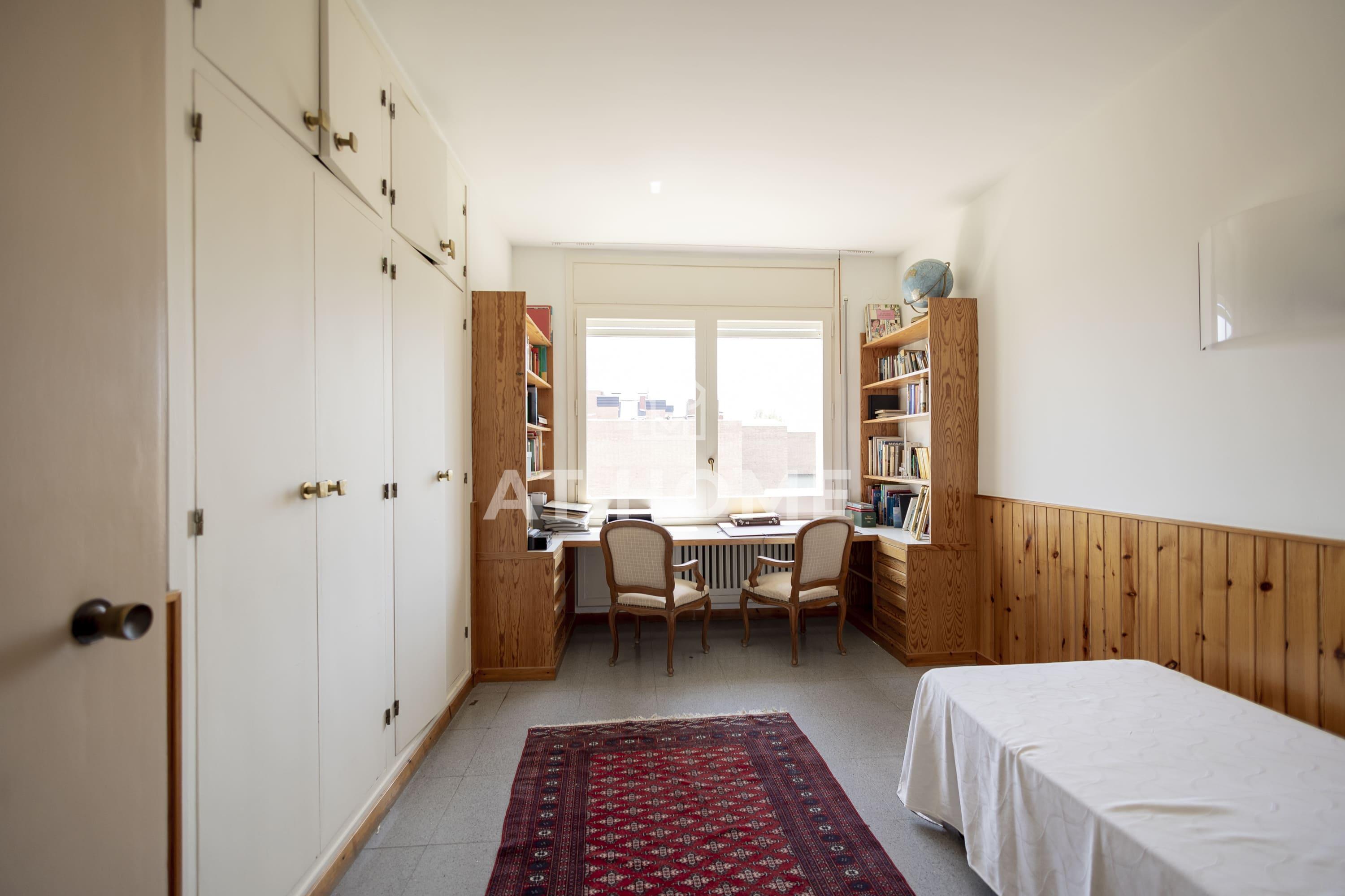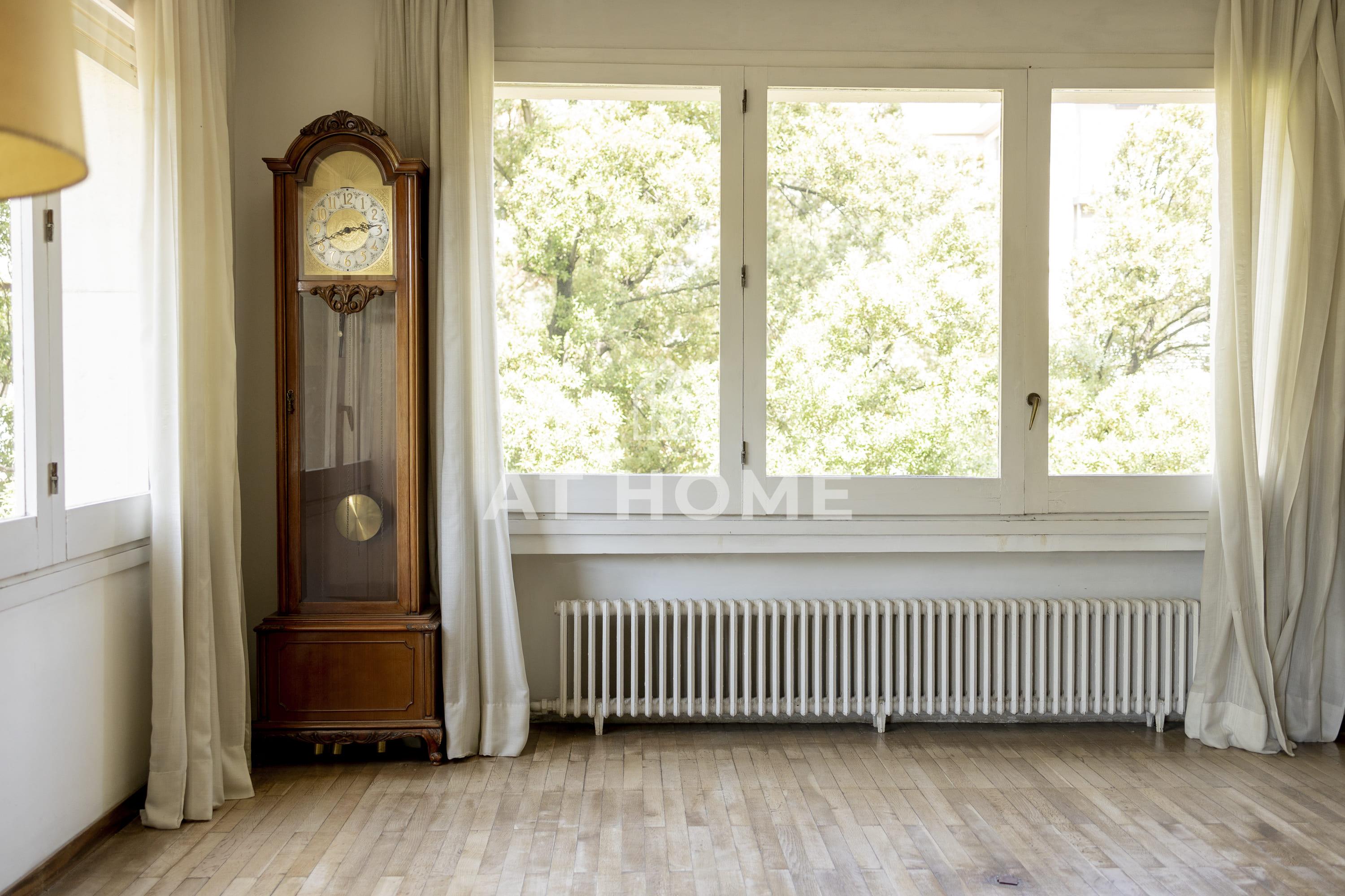 In the exclusive neighbourhood of Pedralbes in Barcelona, this elegant flat is located in a well-preserved building with a refurbished entrance. The property, which can be refurbished, enjoys an excellent orientation to three winds, which means that it receives sun all day long, from morning to sunset. It is ideal to adapt it to the tastes and needs of the owner. The property, built in 1966, has a communal garden area, an elegant porter’s lodge, a communal roof terrace, porter service and two lifts (one of them service lifts). In addition, the property has three parking spaces for cars and one for a motorbike. On entering, we find a practical entrance hall with dressing room and an office that could be converted into a fifth bedroom. The spacious living/dining room with fireplace and large windows offers plenty of natural light and access to a terrace overlooking the garden. The kitchen is spacious, with pantry and office area, and there is a service bedroom with adjoining bathroom. The sleeping area has three double bedrooms, including the master bedroom with en suite bathroom and terrace. The property has air conditioning and individual heating.