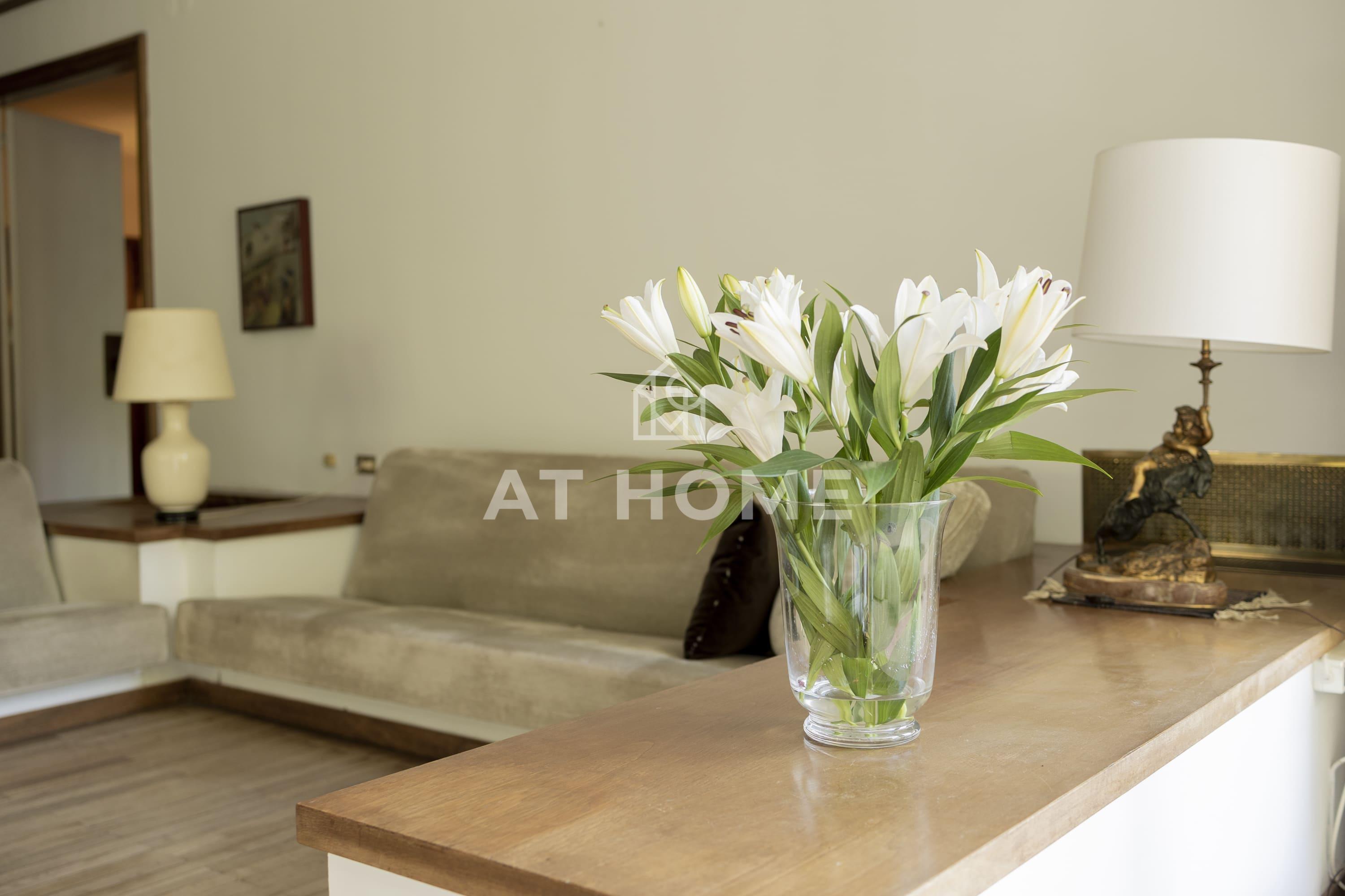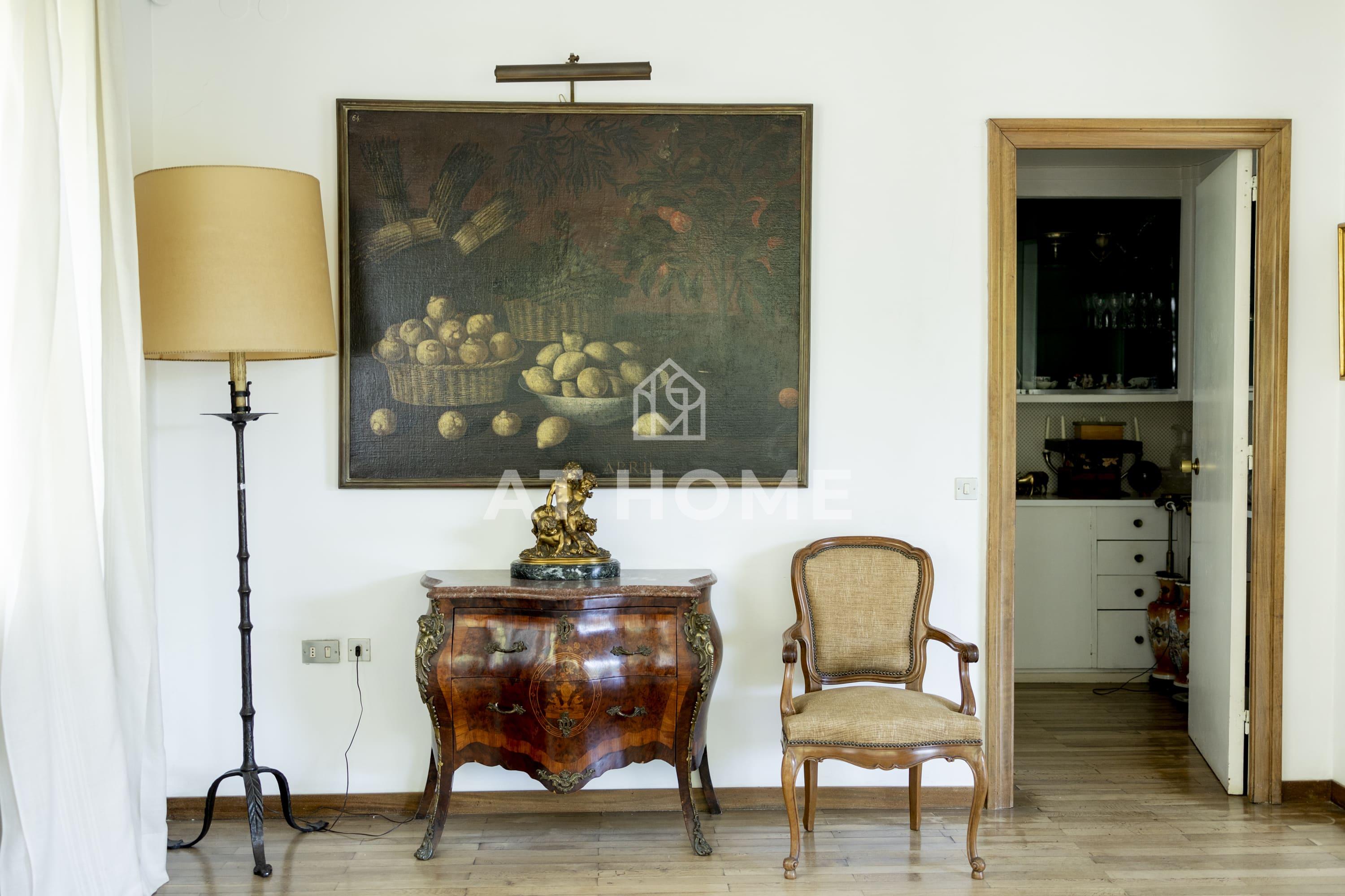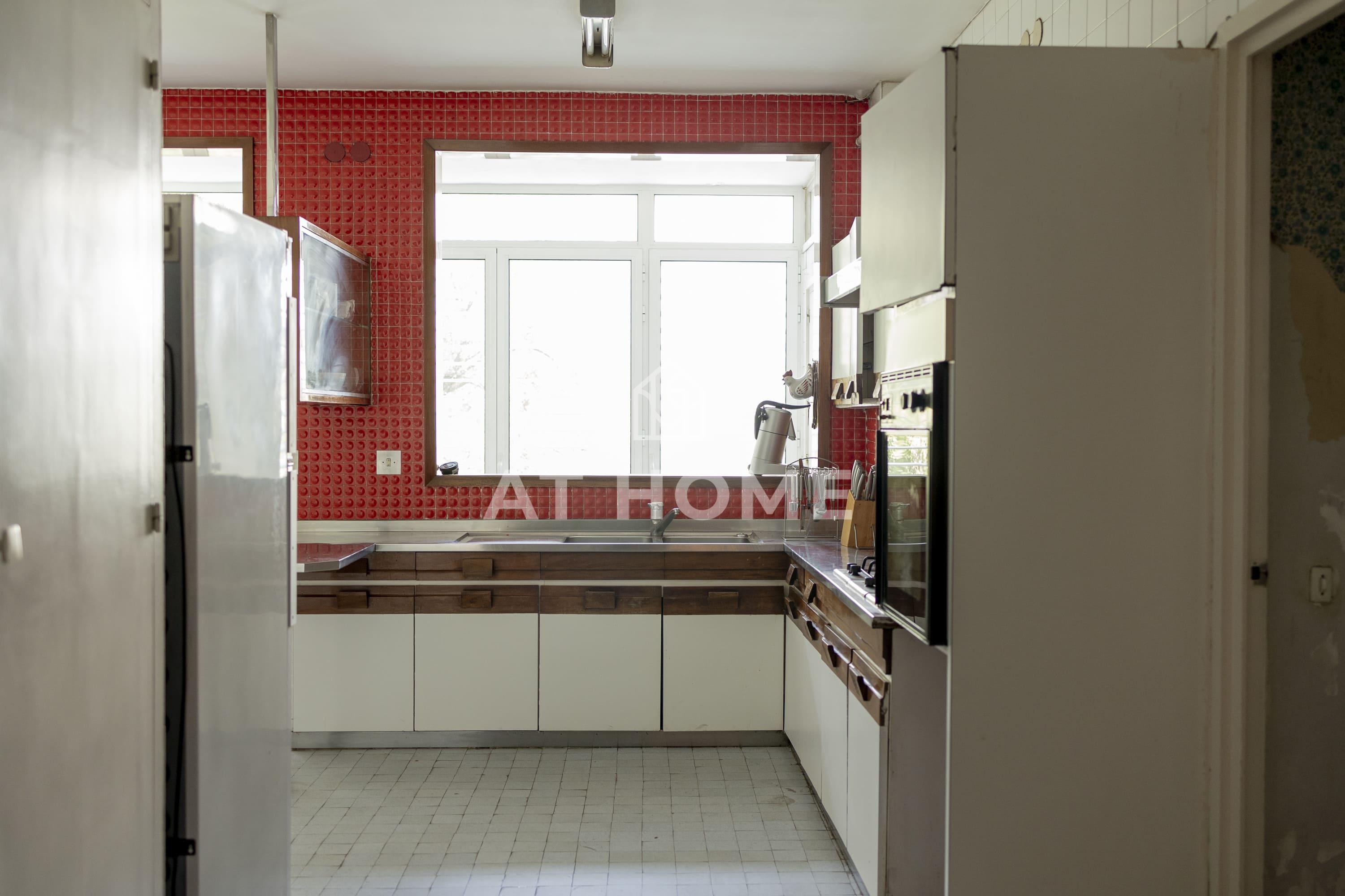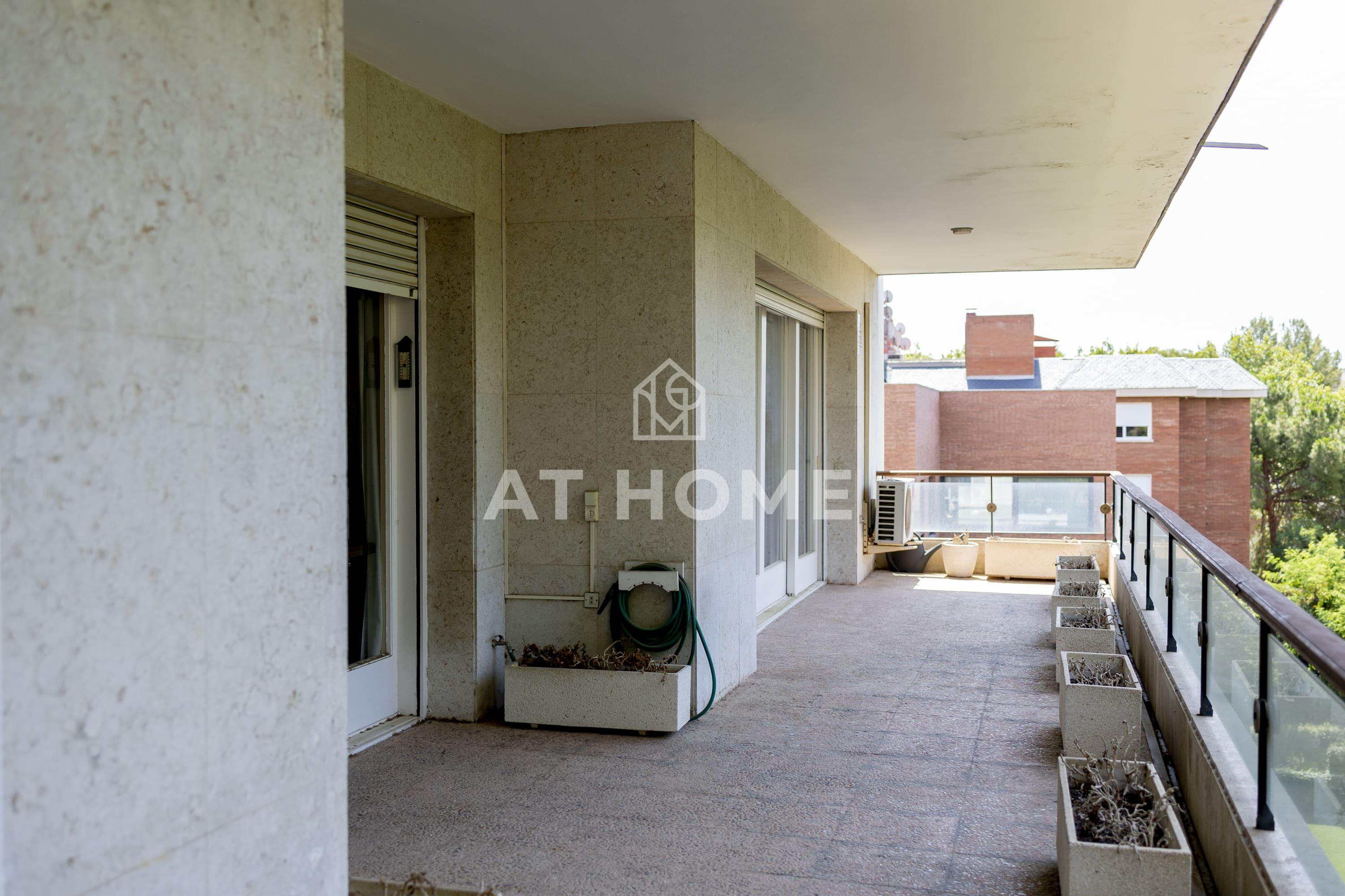 In the exclusive neighbourhood of Pedralbes in Barcelona, this elegant flat is located in a well-preserved building with a refurbished entrance. The property, which can be refurbished, enjoys an excellent orientation to three winds, which means that it receives sun all day long, from morning to sunset. It is ideal to adapt it to the tastes and needs of the owner. The property, built in 1966, has a communal garden area, an elegant porter’s lodge, a communal roof terrace, porter service and two lifts (one of them service lifts). In addition, the property has three parking spaces for cars and one for a motorbike. On entering, we find a practical entrance hall with dressing room and an office that could be converted into a fifth bedroom. The spacious living/dining room with fireplace and large windows offers plenty of natural light and access to a terrace overlooking the garden. The kitchen is spacious, with pantry and office area, and there is a service bedroom with adjoining bathroom. The sleeping area has three double bedrooms, including the master bedroom with en suite bathroom and terrace. The property has air conditioning and individual heating.