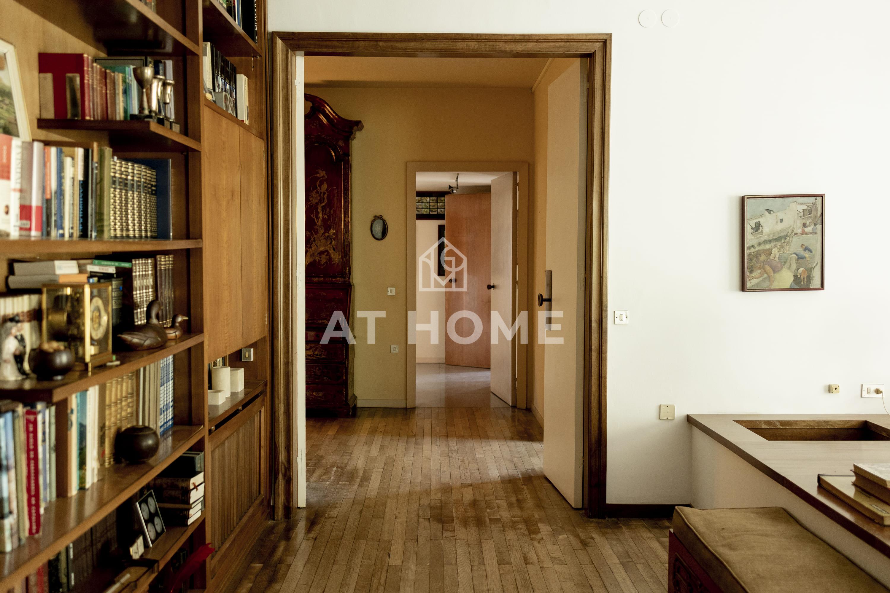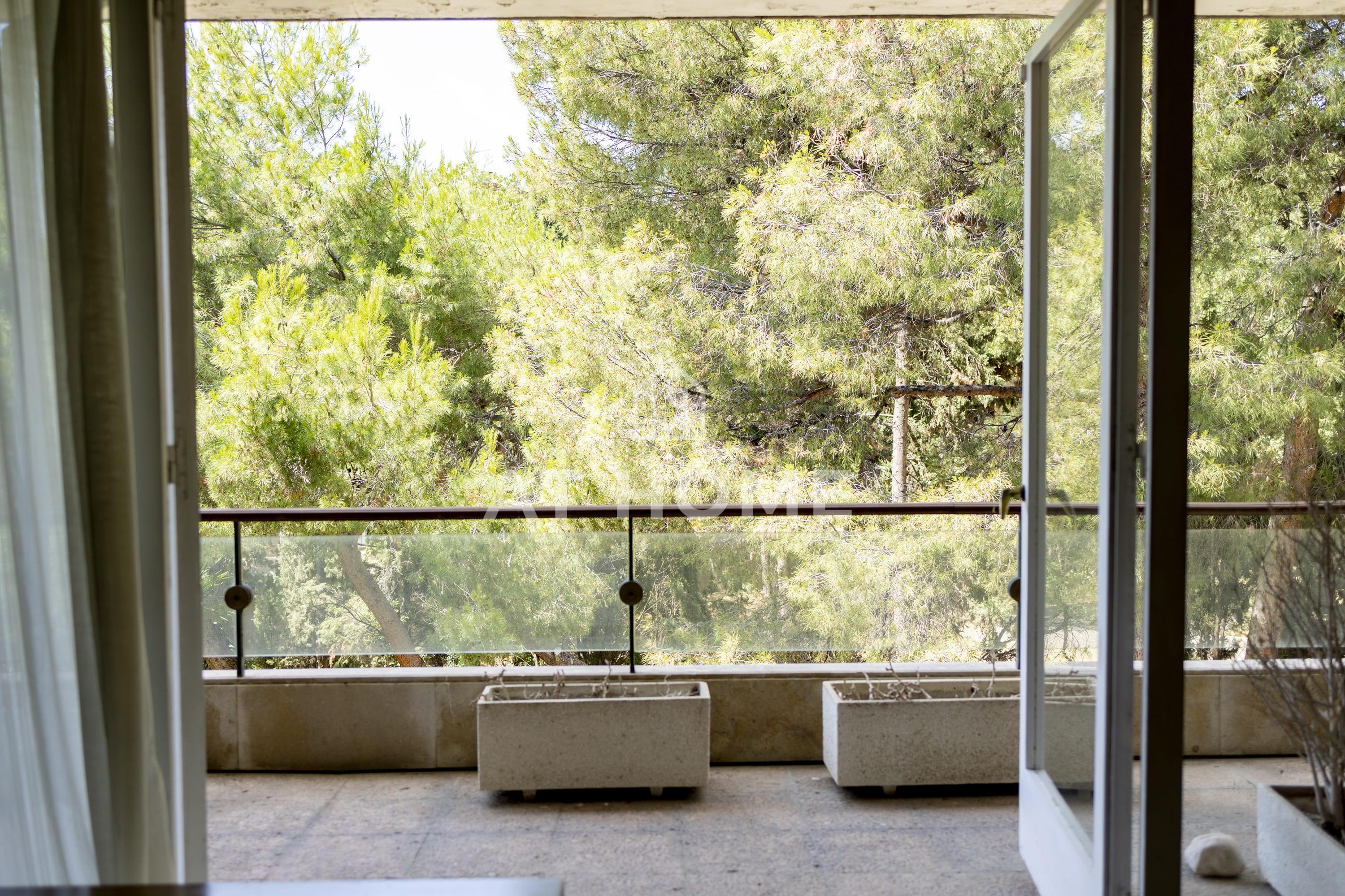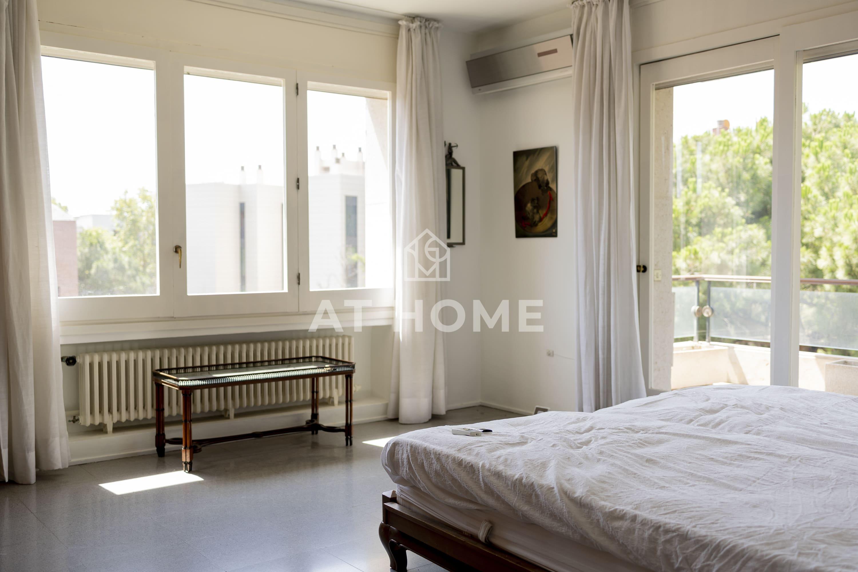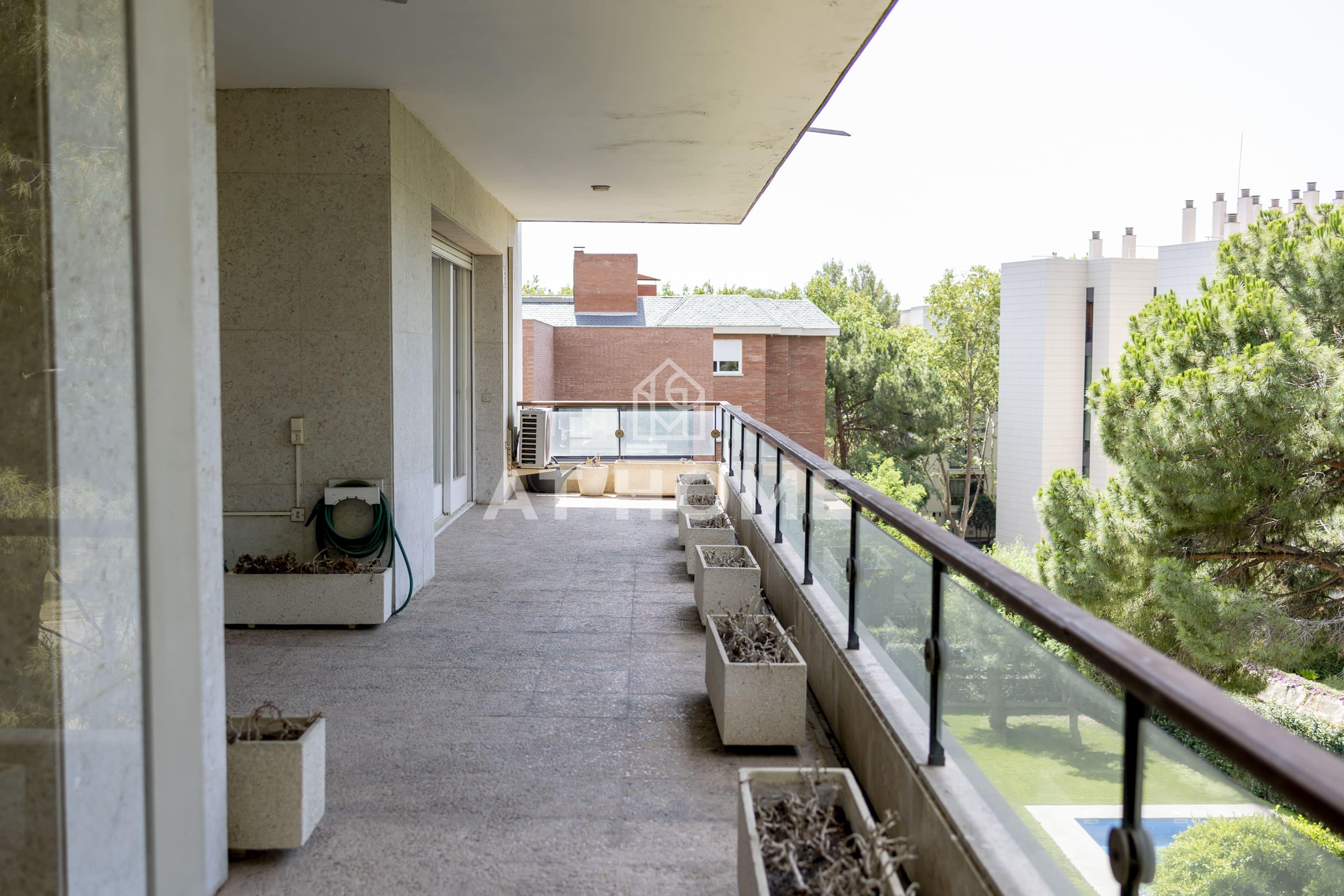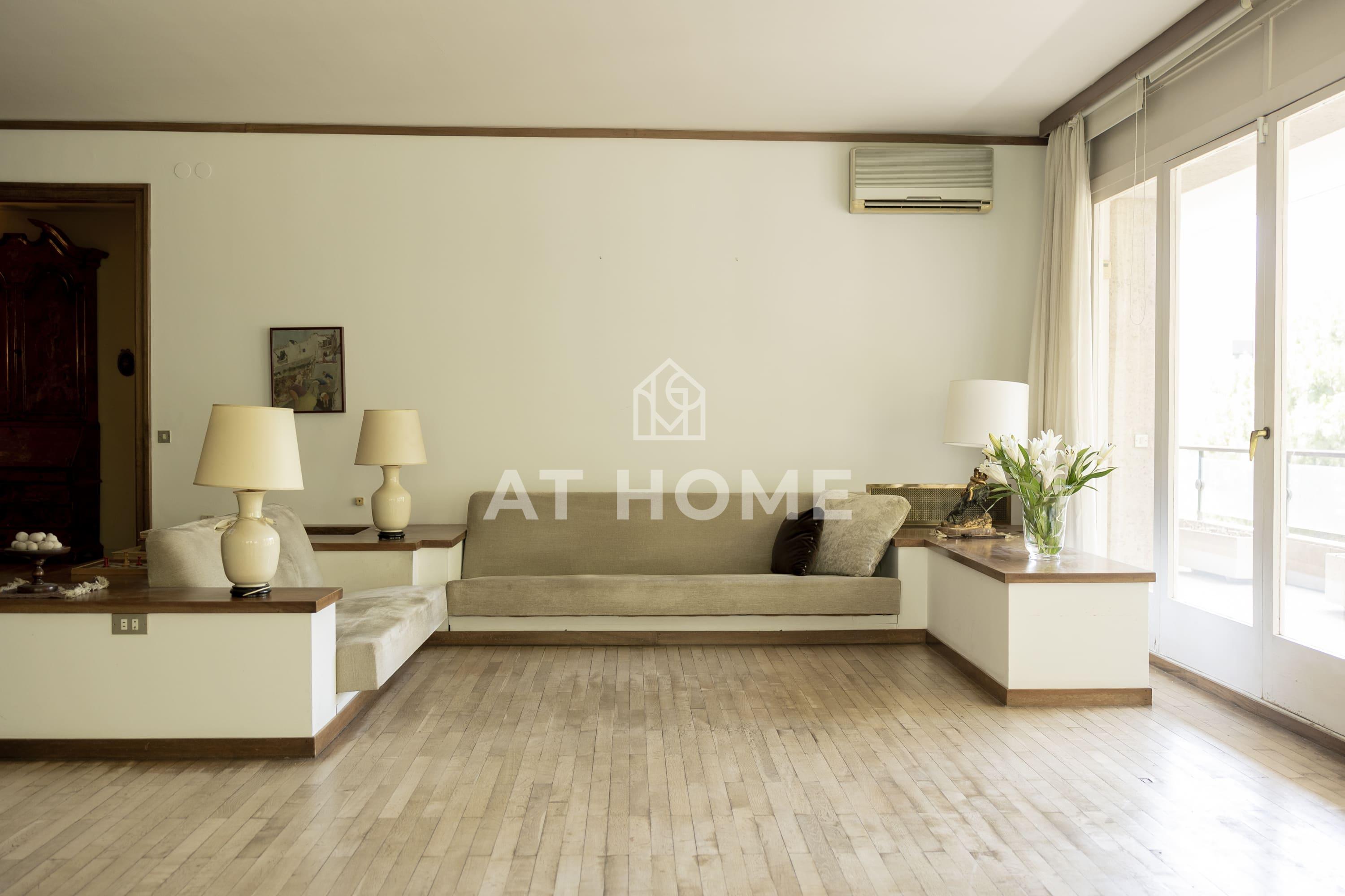In the exclusive neighbourhood of Pedralbes in Barcelona, this elegant flat is located in a well-preserved building with a refurbished entrance. The property, which can be refurbished, enjoys an excellent orientation to three winds, which means that it receives sun all day long, from morning to sunset. It is ideal to adapt it to the tastes and needs of the owner. The property, built in 1966, has a communal garden area, an elegant porter’s lodge, a communal roof terrace, porter service and two lifts (one of them service lifts). In addition, the property has three parking spaces for cars and one for a motorbike. On entering, we find a practical entrance hall with dressing room and an office that could be converted into a fifth bedroom. The spacious living/dining room with fireplace and large windows offers plenty of natural light and access to a terrace overlooking the garden. The kitchen is spacious, with pantry and office area, and there is a service bedroom with adjoining bathroom. The sleeping area has three double bedrooms, including the master bedroom with en suite bathroom and terrace. The property has air conditioning and individual heating.