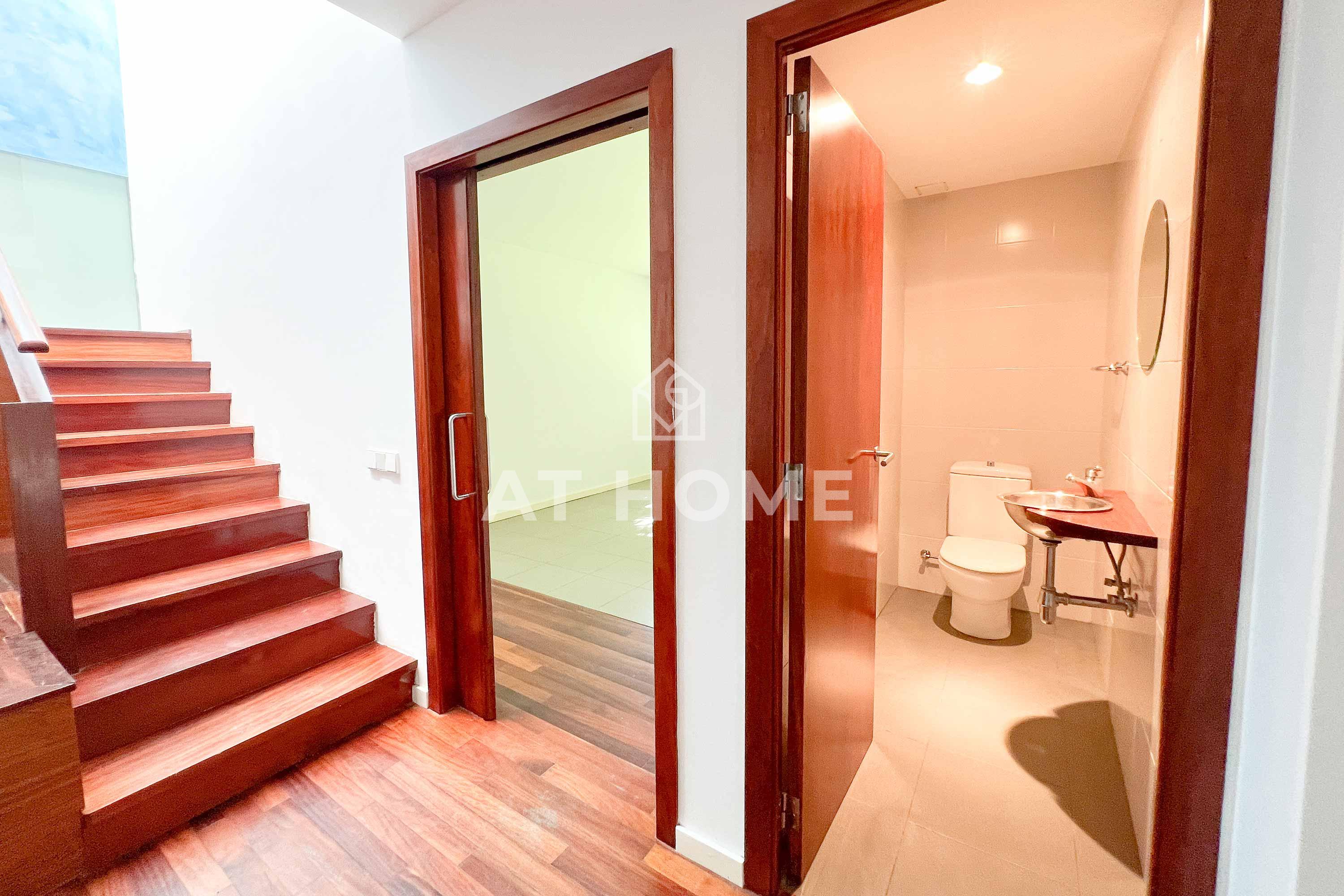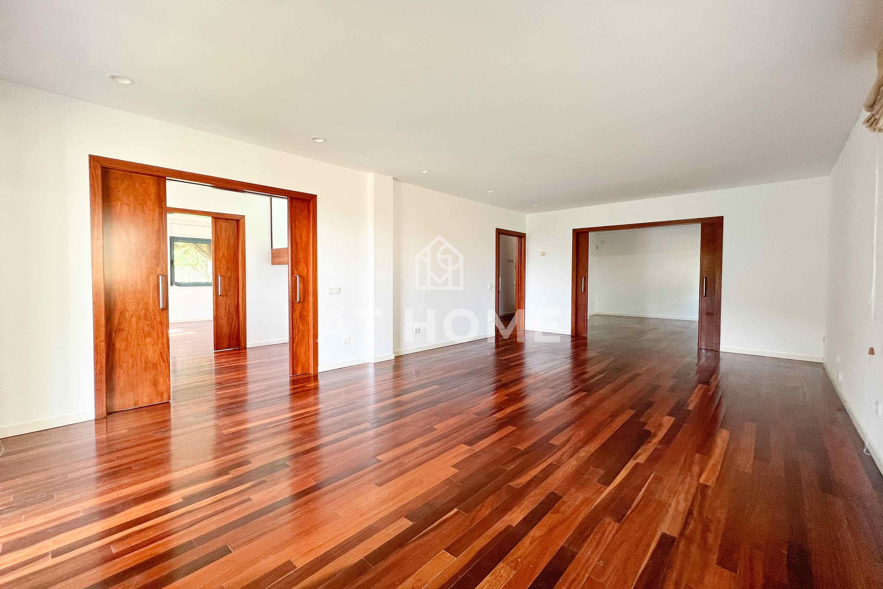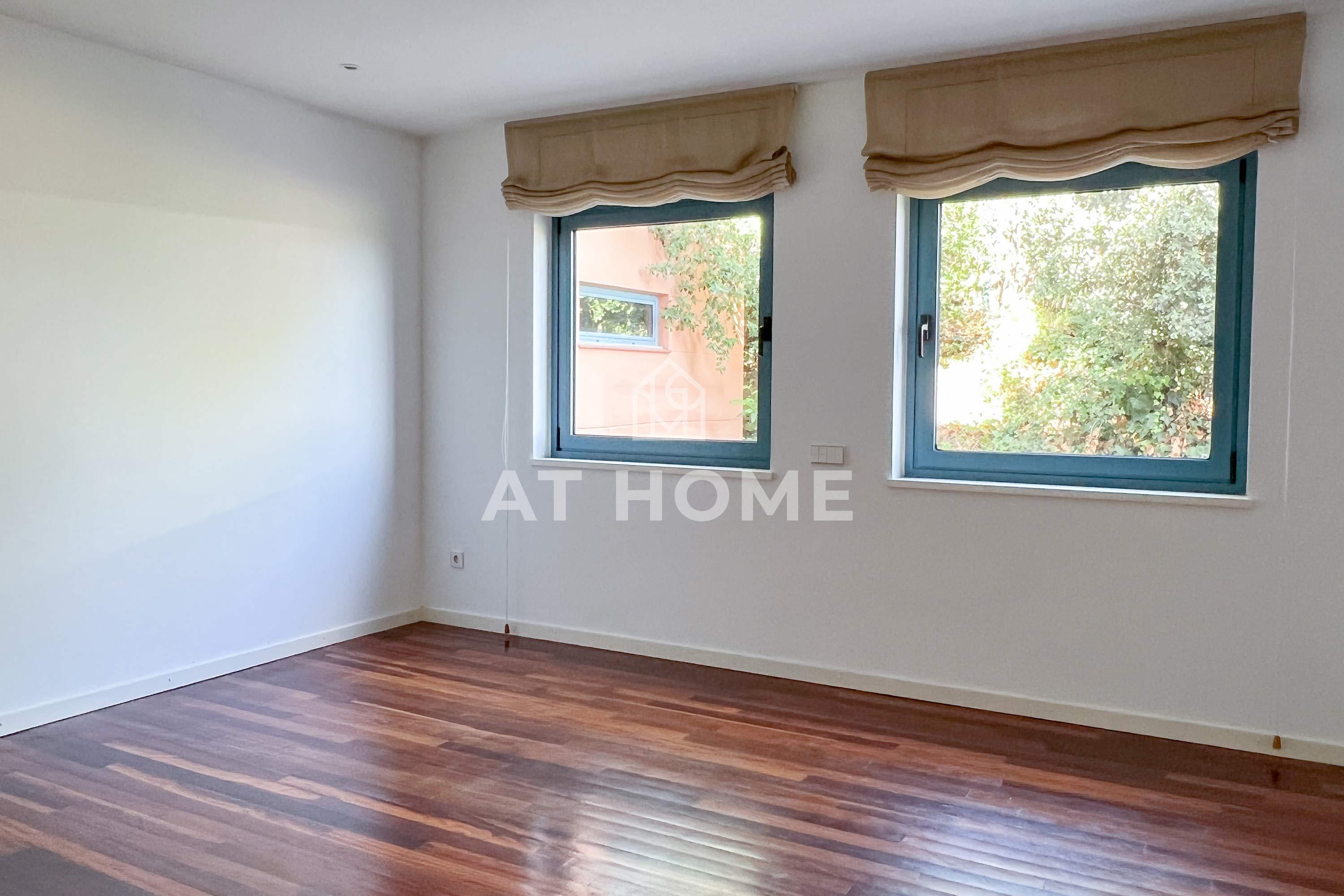 In the basement, you will find a large open room of 195m2 with many possibilities as a multi-space room, gym, cinema room. It also has an independent garage for two cars.