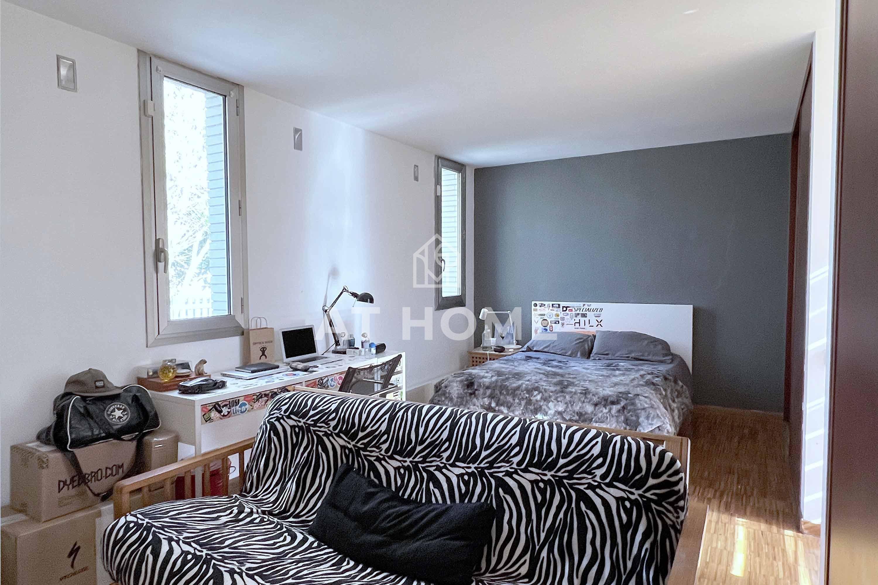 On the upper level, the large hallway leads to 2 double bedrooms with fitted closets and the master suite with dressing room and private terrace. In the center a large bathroom with different environments. The office and gymnasium are located in a glassed-in annex area that could have different uses.