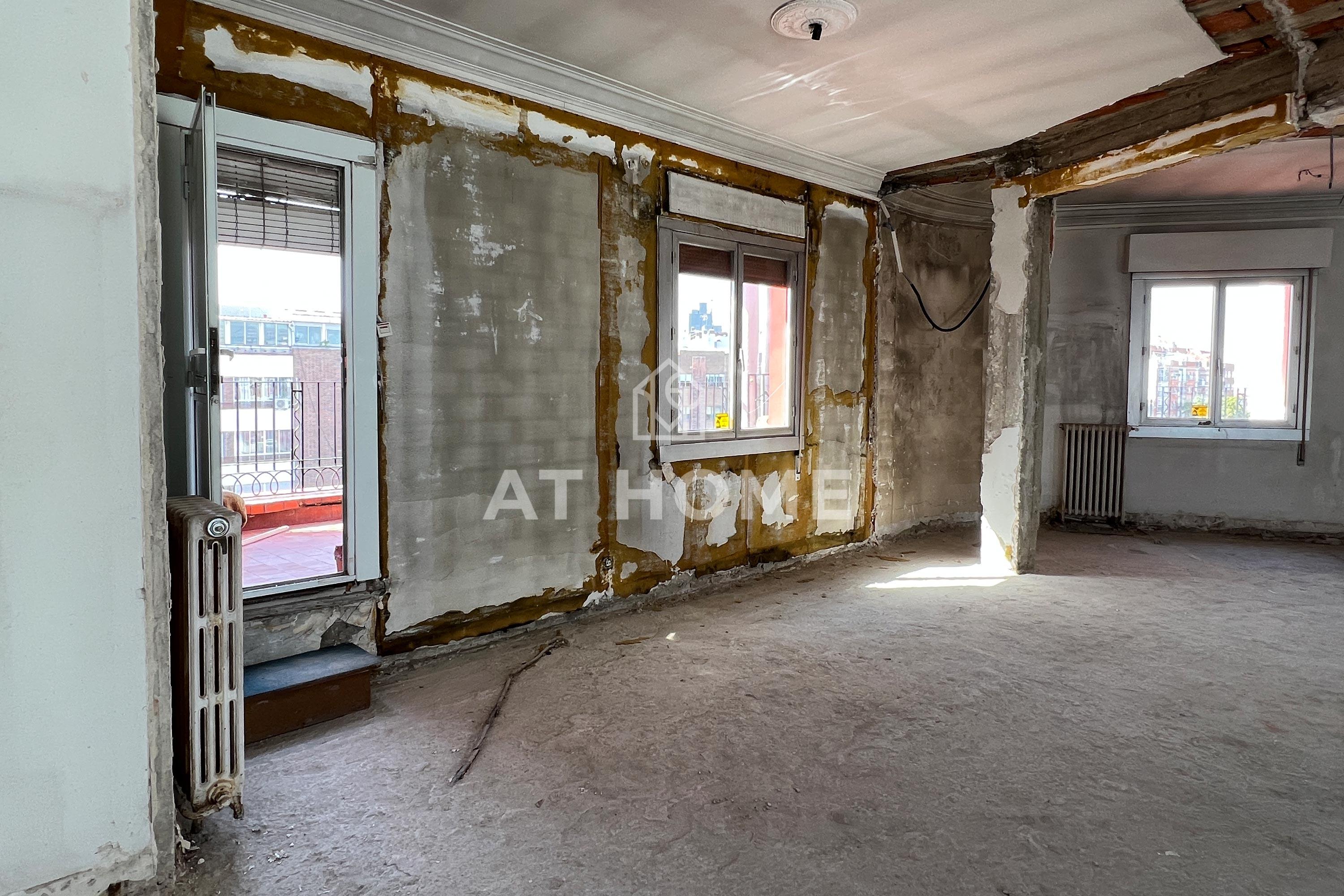 Spacious bright diaphanous penthouse with two terraces of 30 and 35 m in the Salamanca neighborhood demolished. Multiple refurbishment options. One block from Eva Duarte de Perón Park.