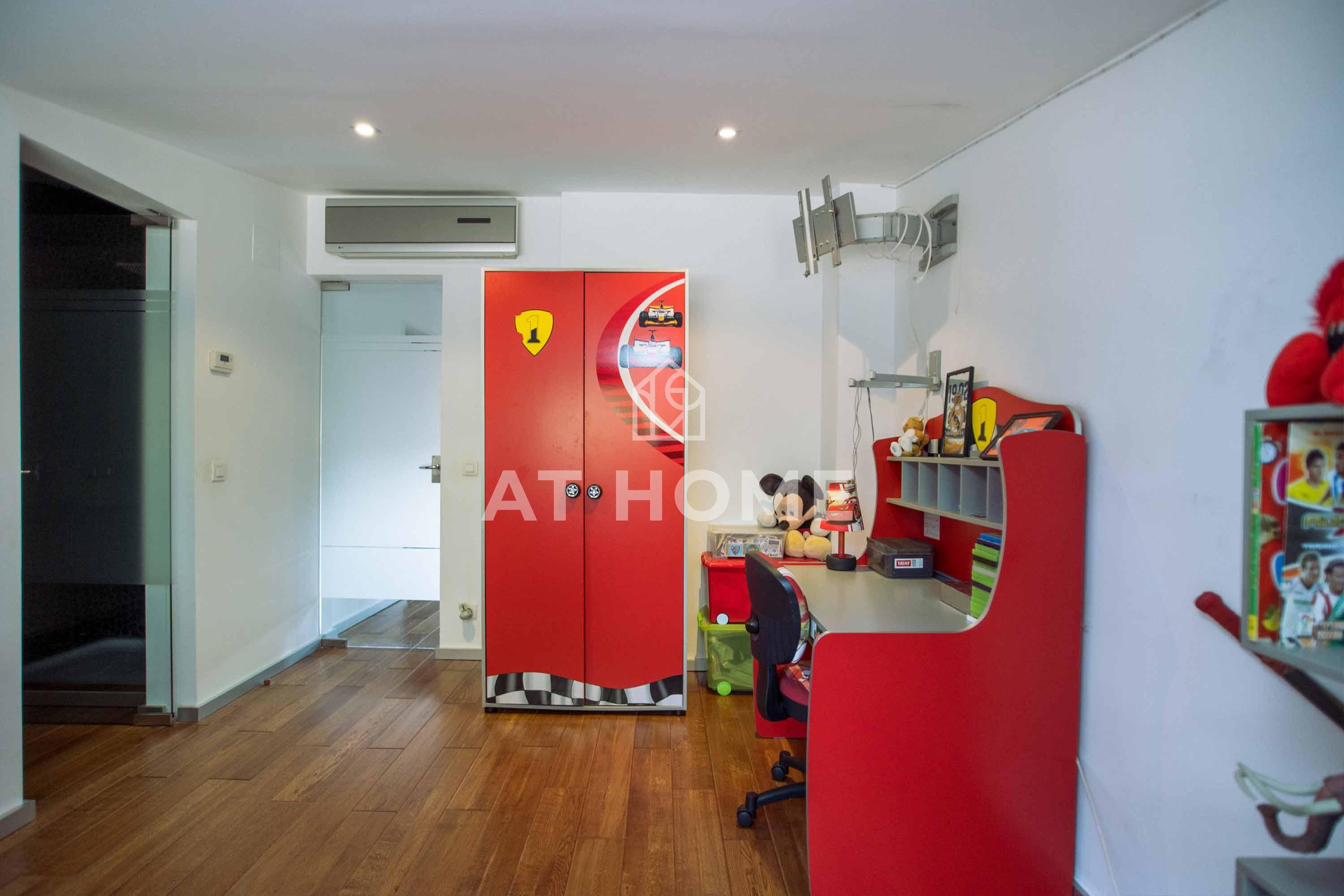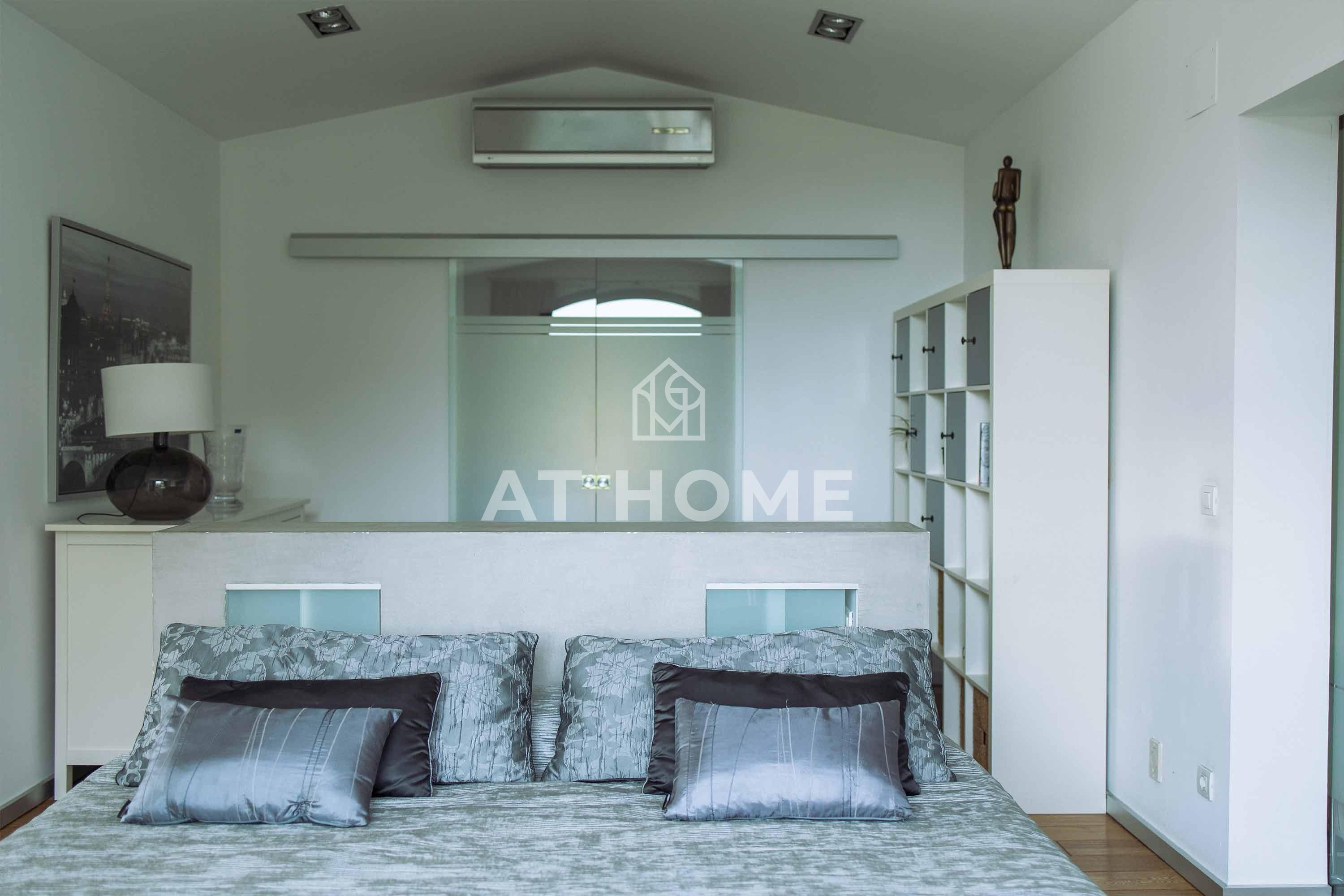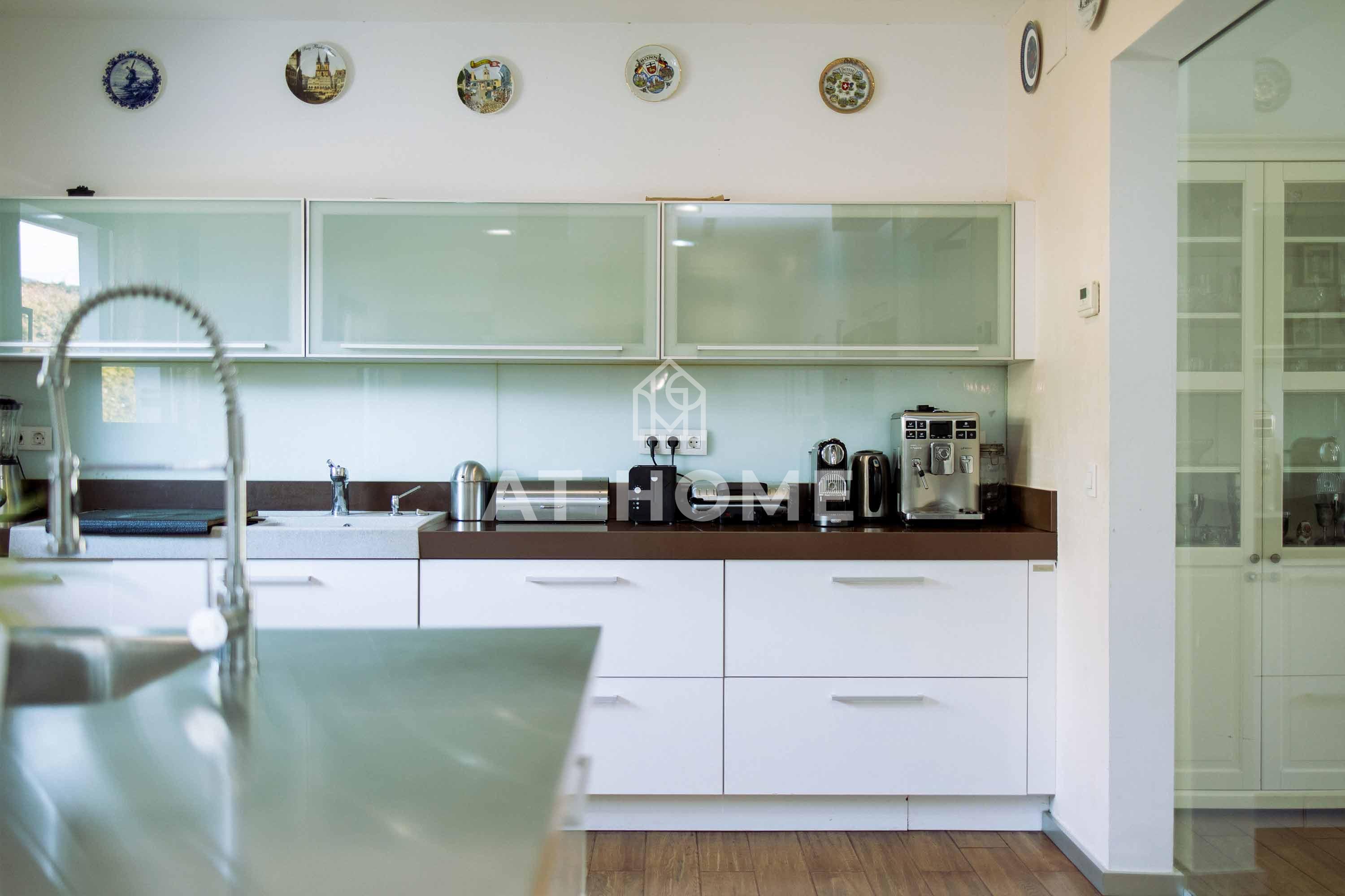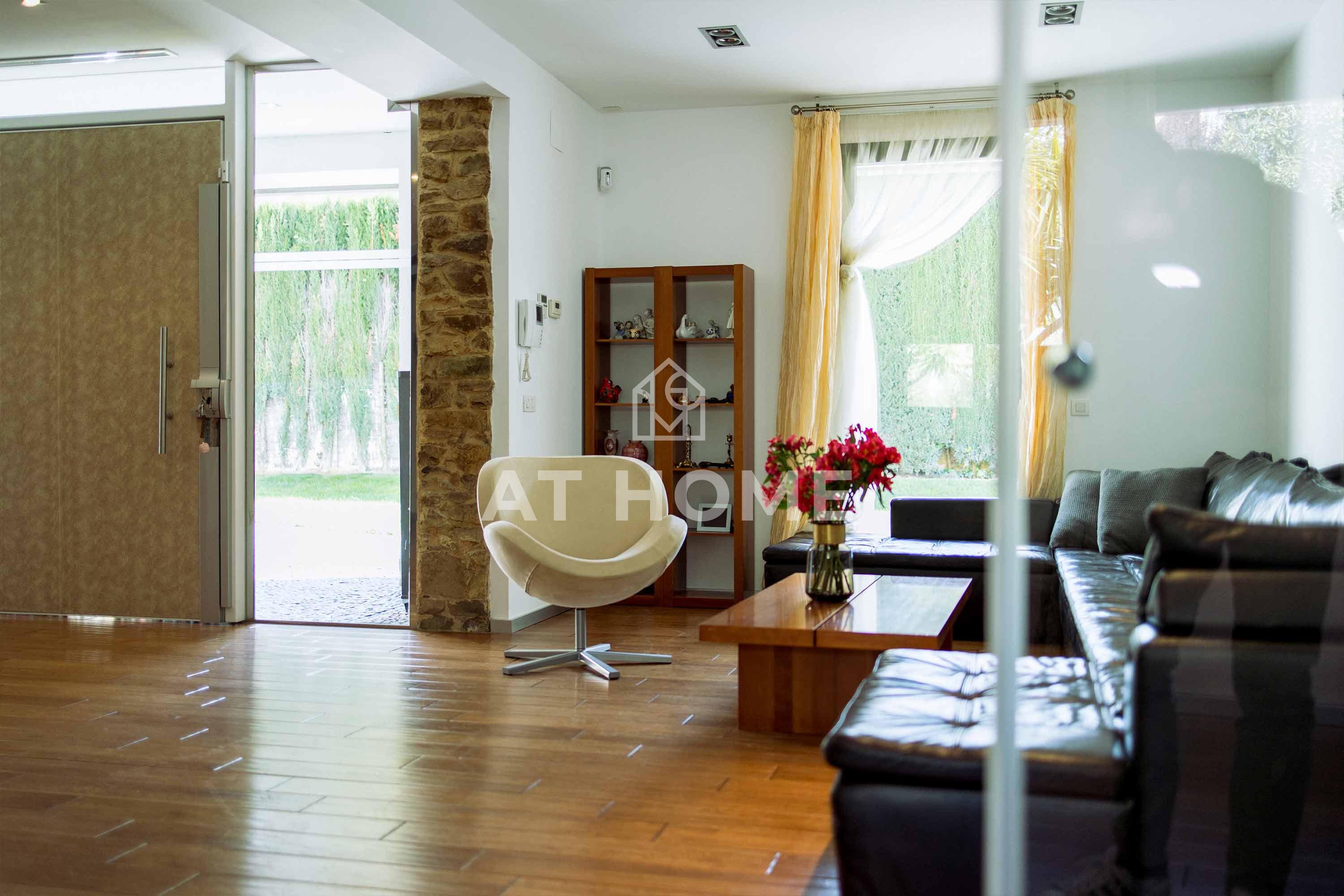 It is situated on a plot of 1800 m2 flat, surrounded by garden, with a large porch used as parking for four cars.