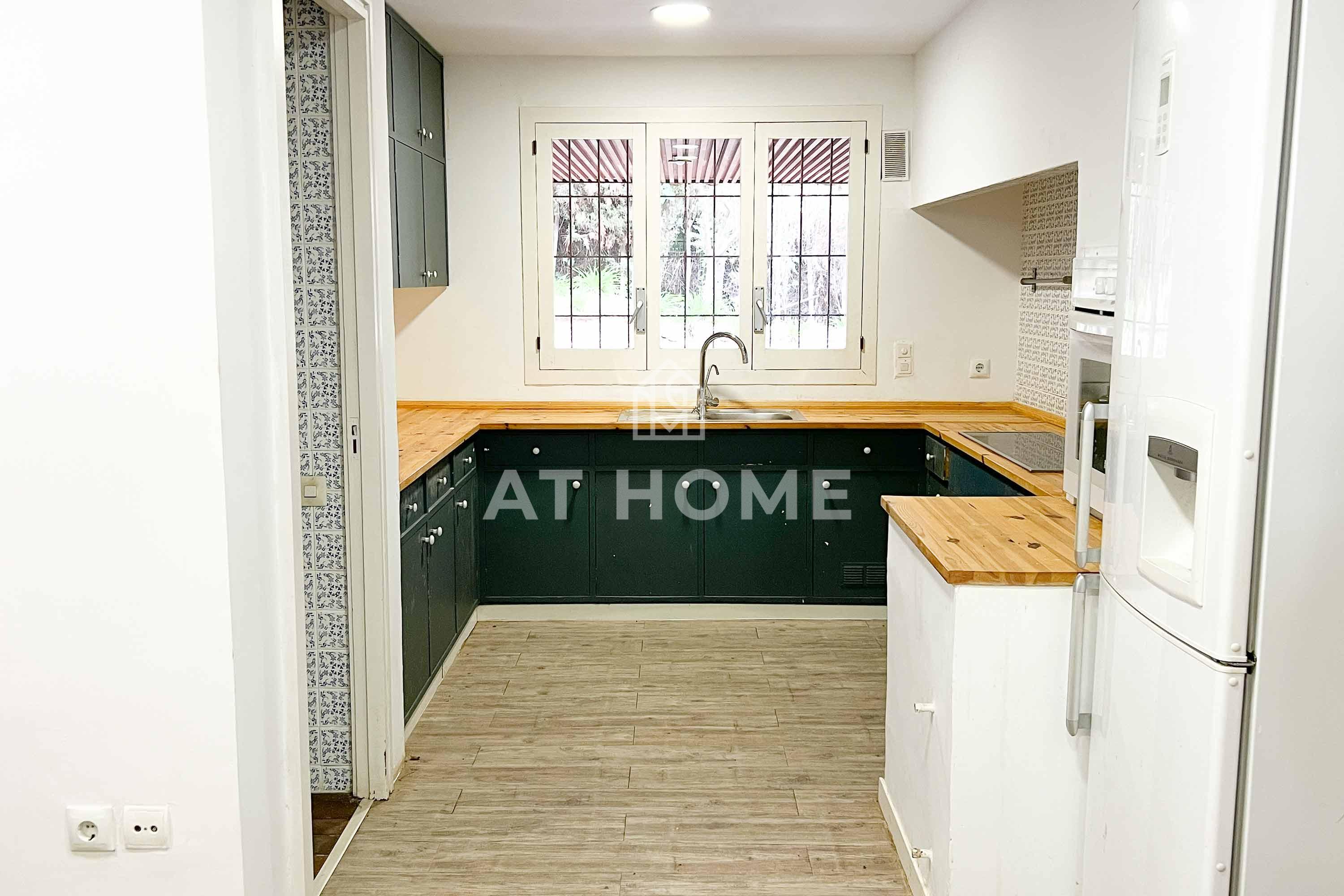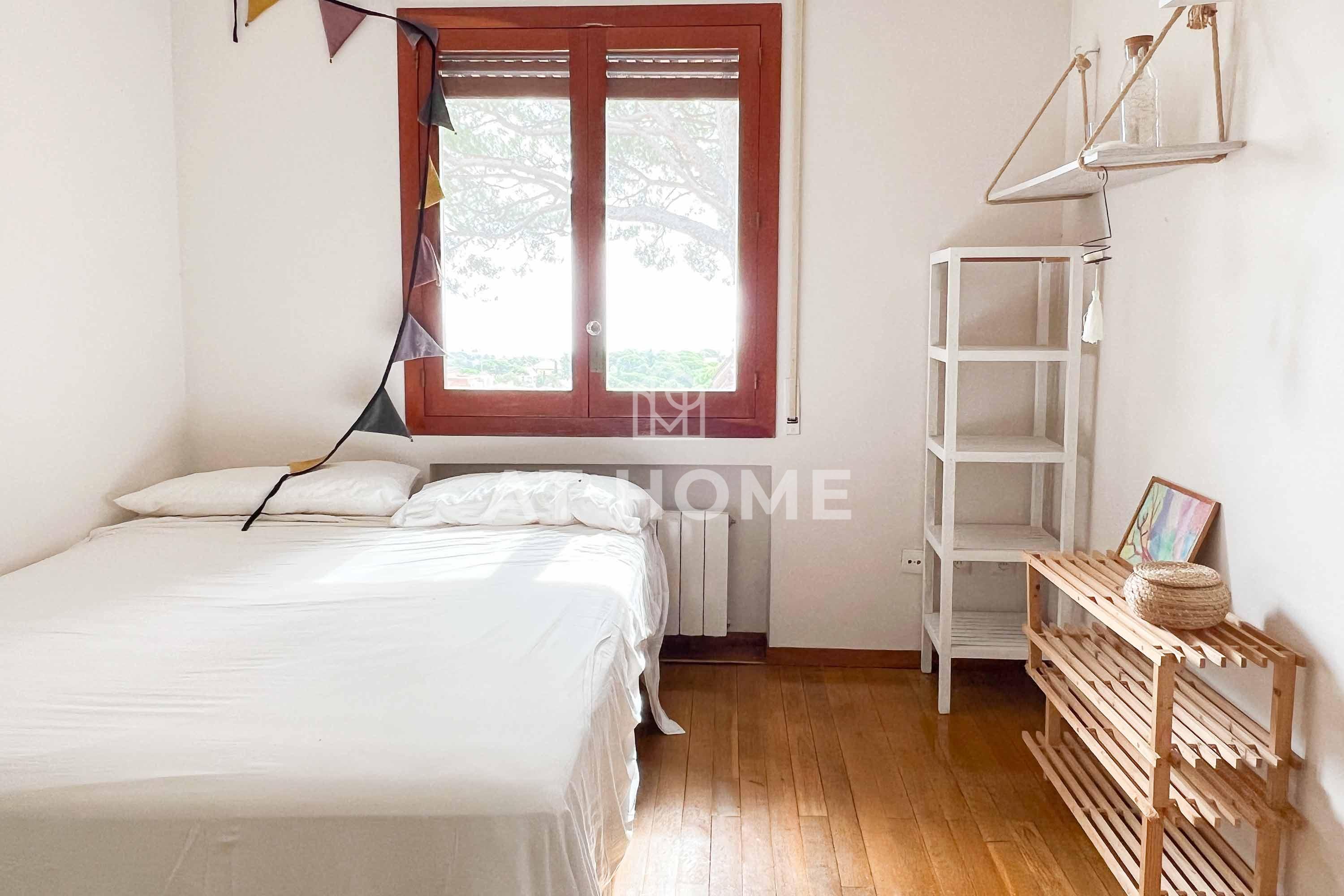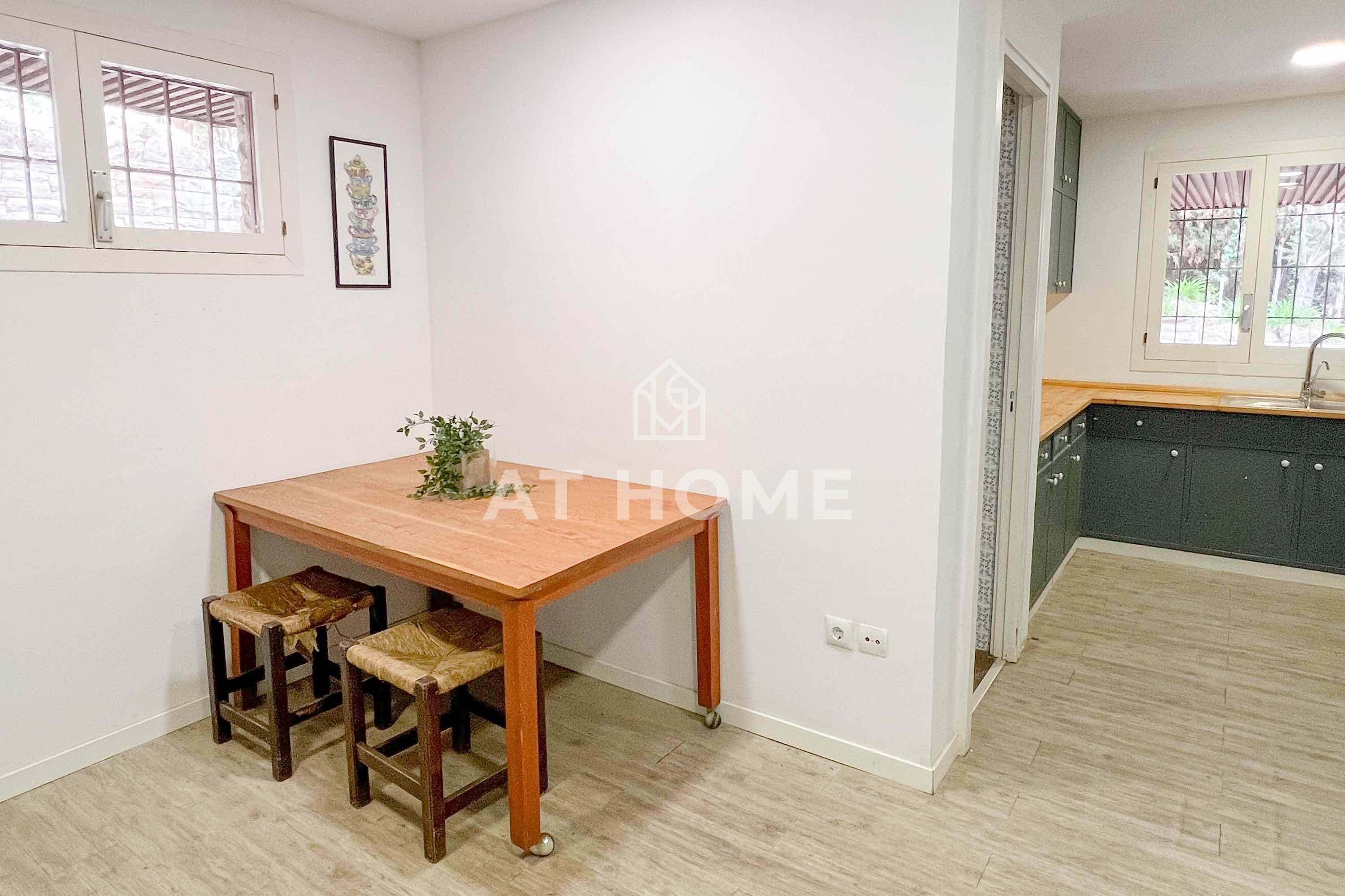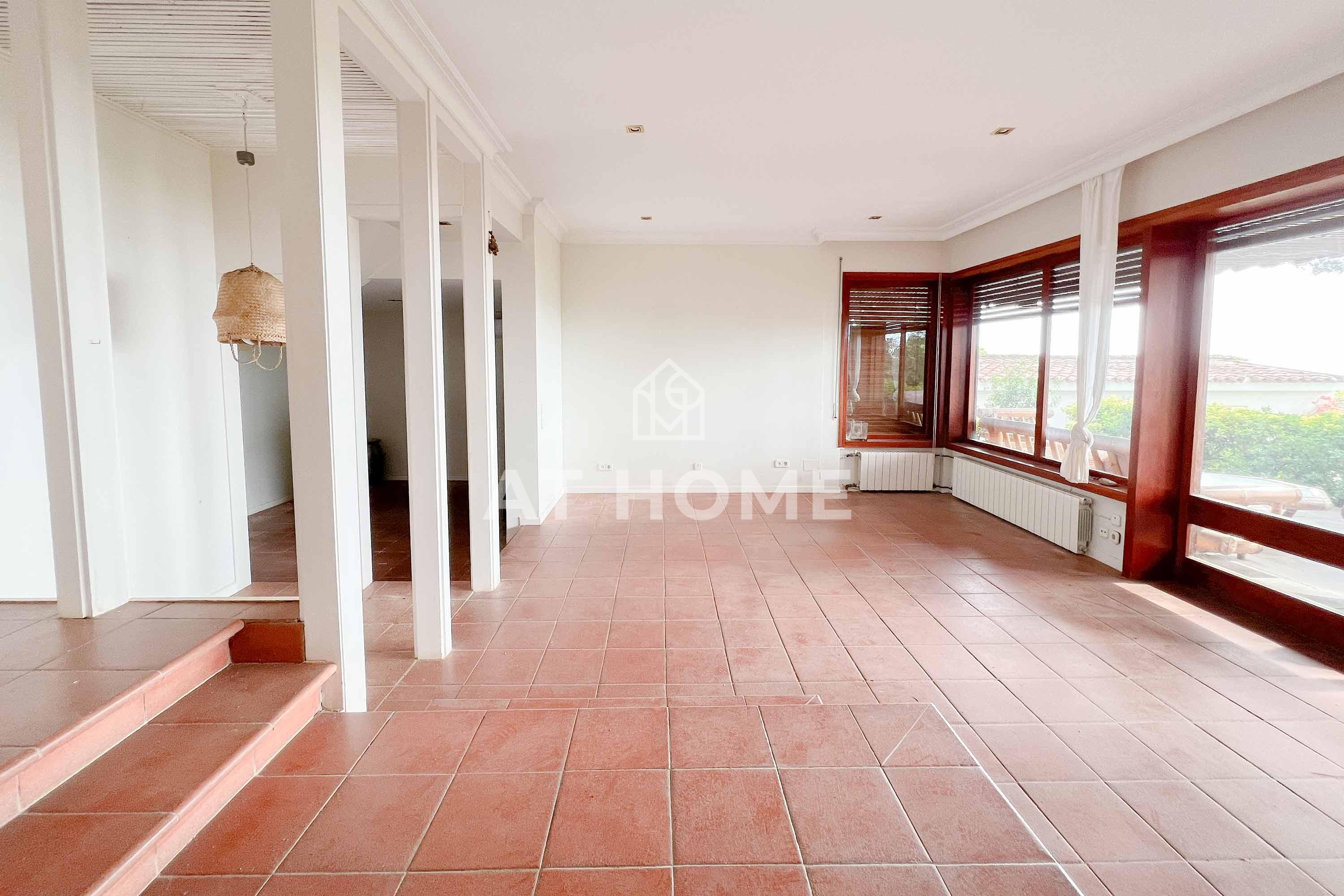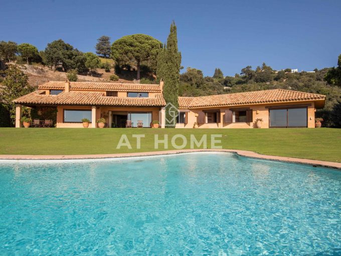 This unique house is located steps from the village of Sant Andreu de Llavaneres, with spectacular sea views surrounded by a garden and a large swimming pool. It has a small attached house plus a porch with access to the parking lot, where we find the changing rooms and a multipurpose room.