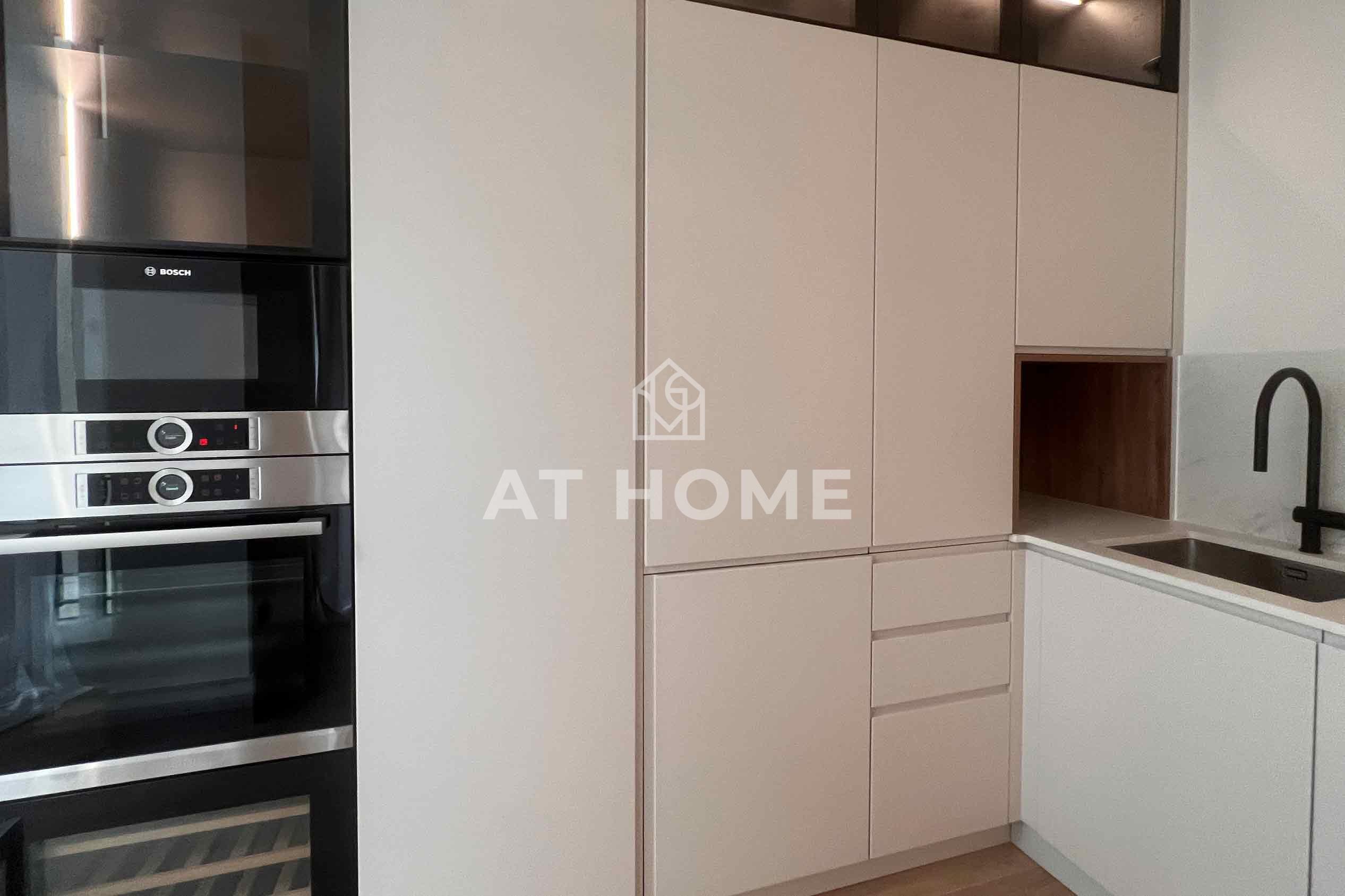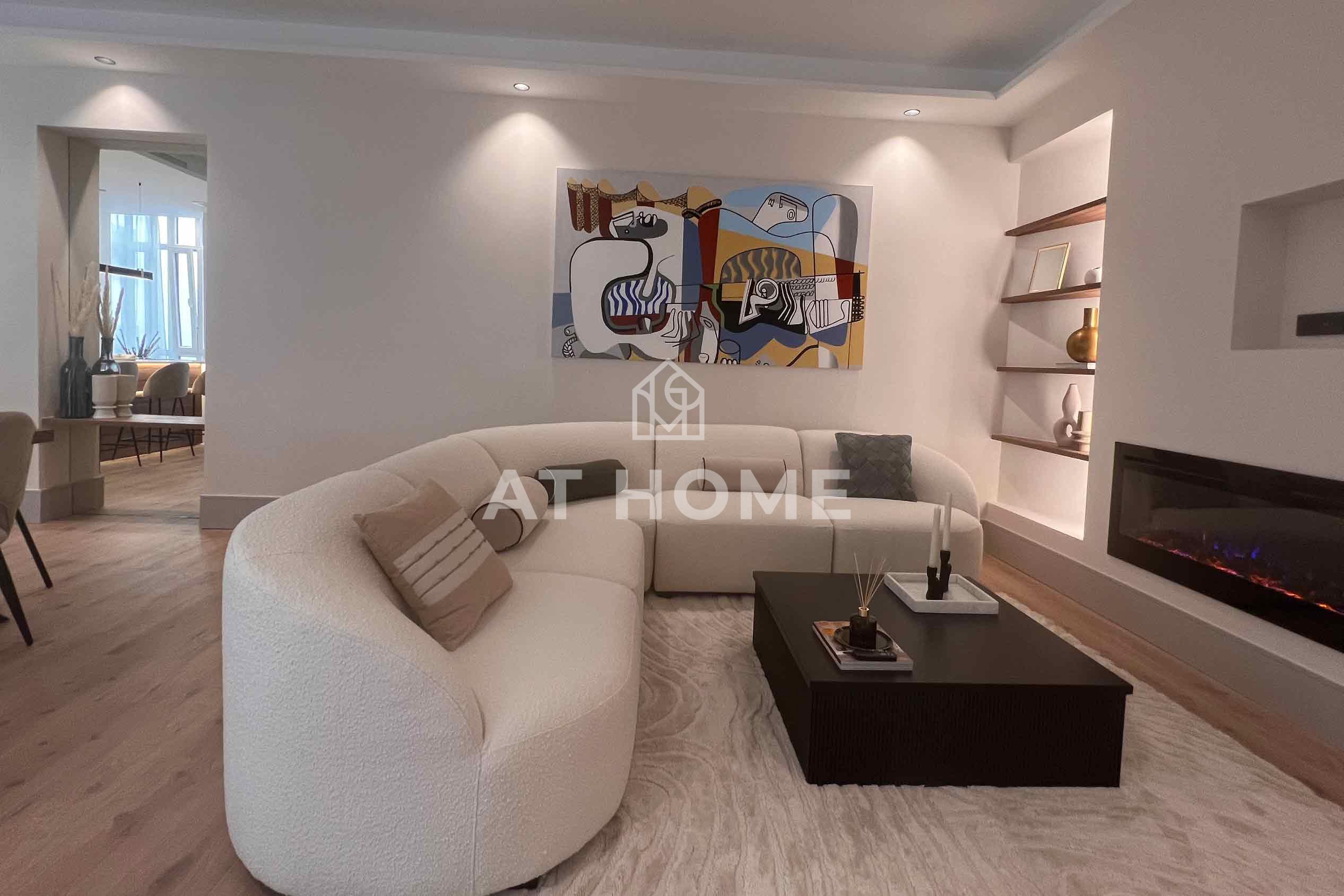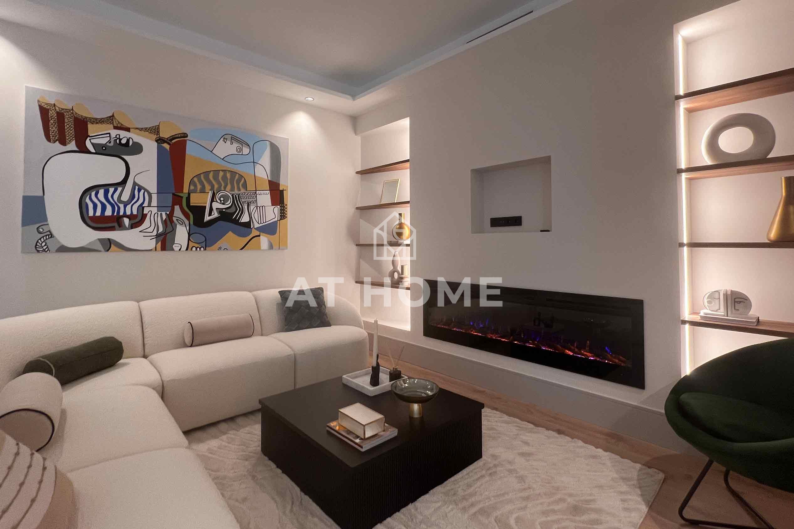 The flat has a spacious living-dining room that becomes the centre of the social life of the house, ideal for family gatherings or meetings with friends. In addition, the open-plan kitchen, fully equipped with electrical appliances, makes the space brighter and more attractive.