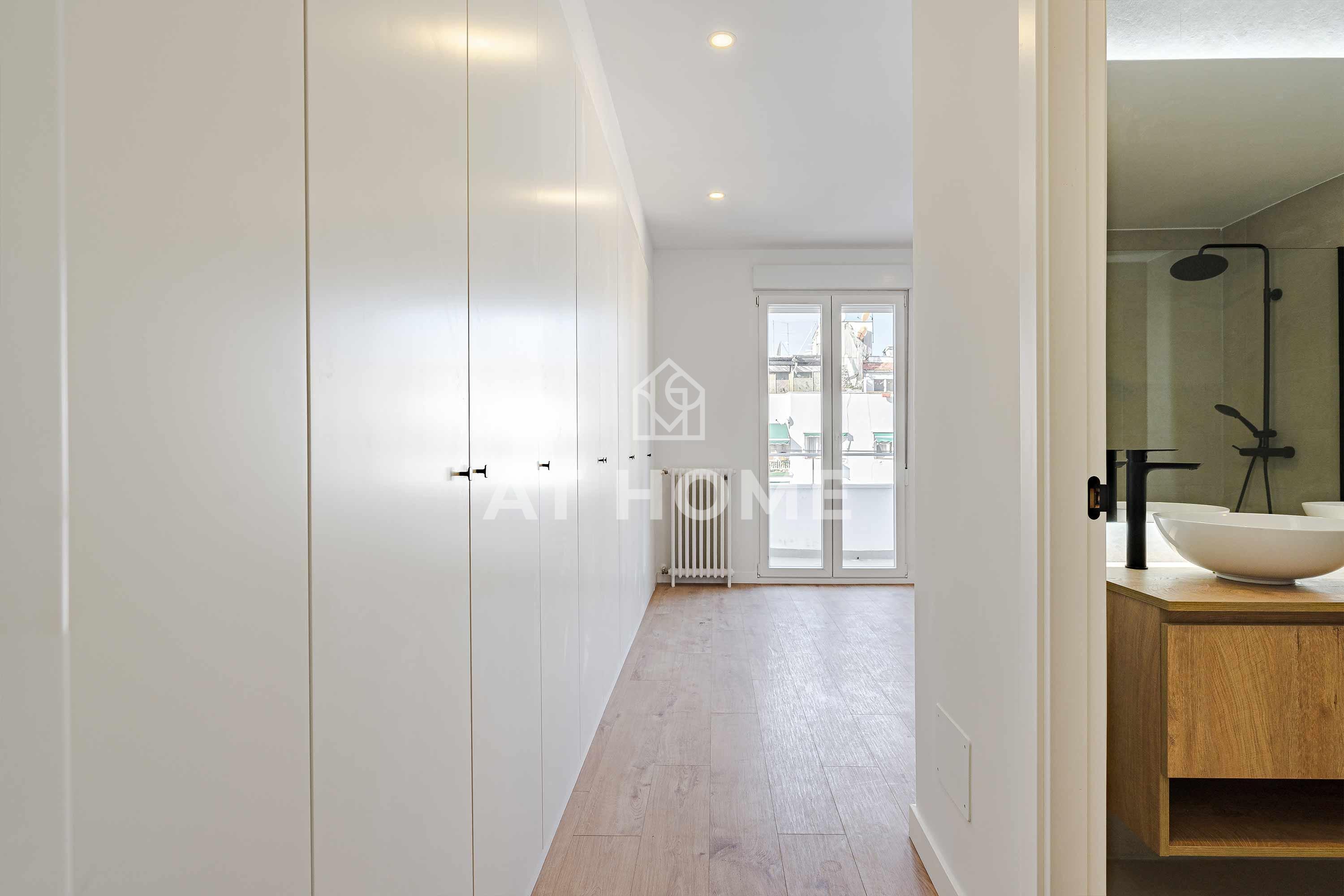 The building is representative and stately, in keeping with the elegant area of Chamberí. In addition, the flat is brand new, with complete bathrooms, fully fitted kitchen with furniture, electrical appliances and built-in wardrobes.