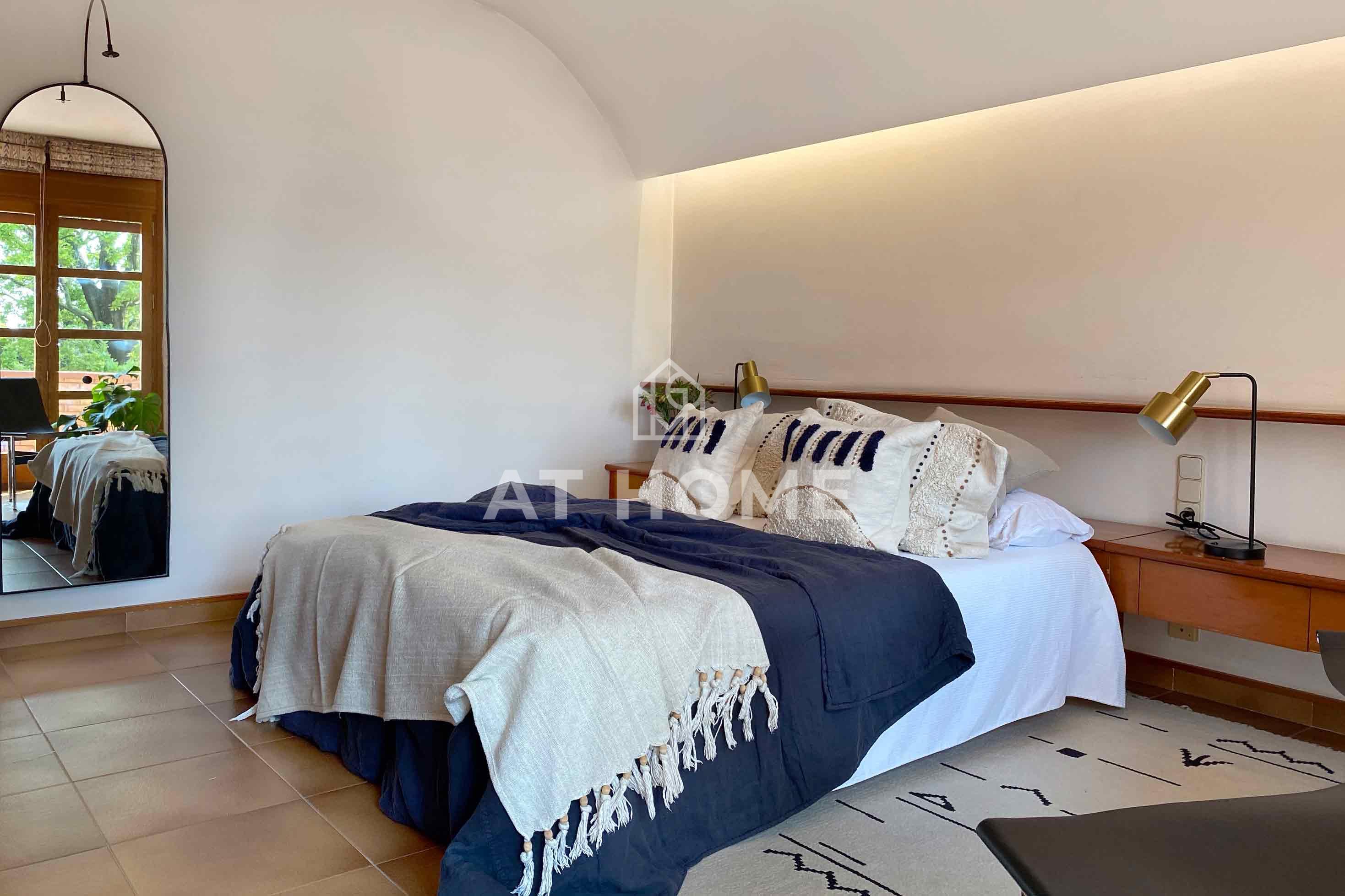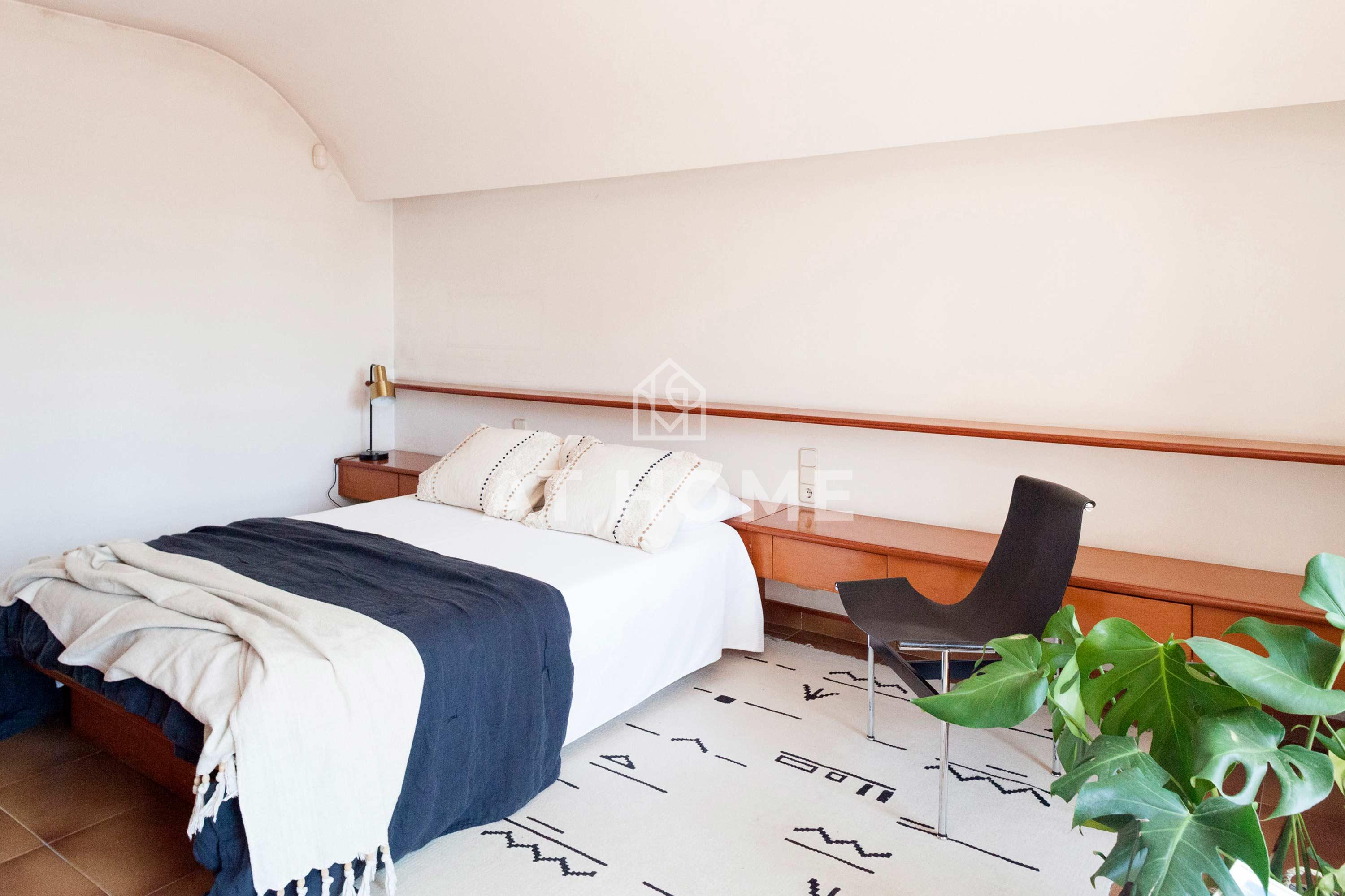 On the second floor, we find 4 bedrooms, the main one is spacious and with characteristic details of the architecture of the house, a curved ceiling and a line of indirect lighting. Next to it a large bathroom and a dressing room. There are two double bedrooms with fitted closets and another bathroom.