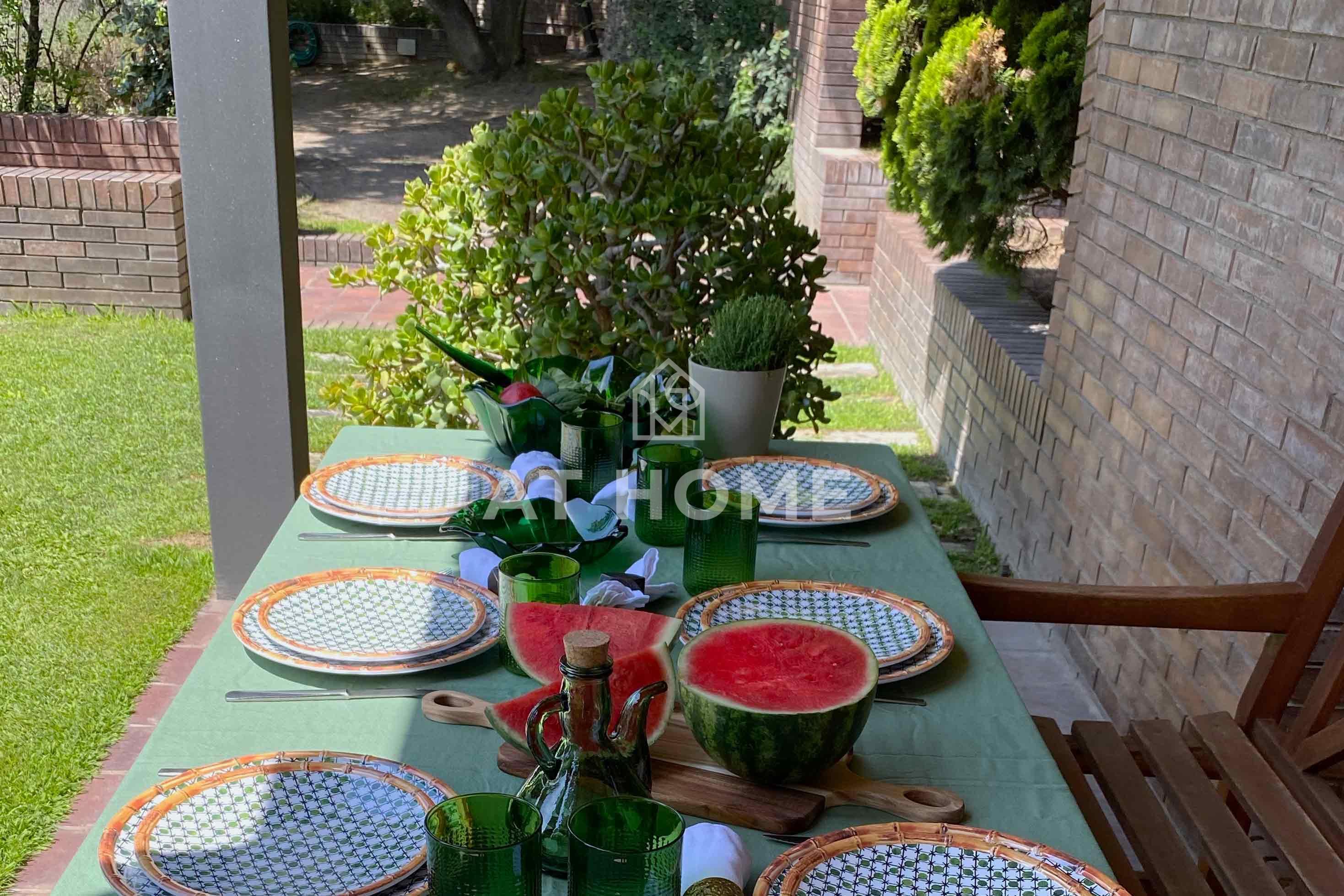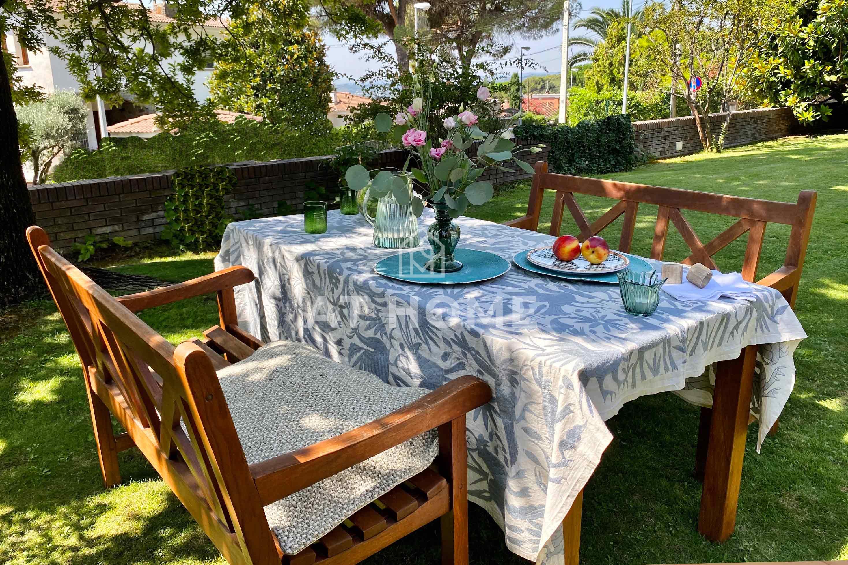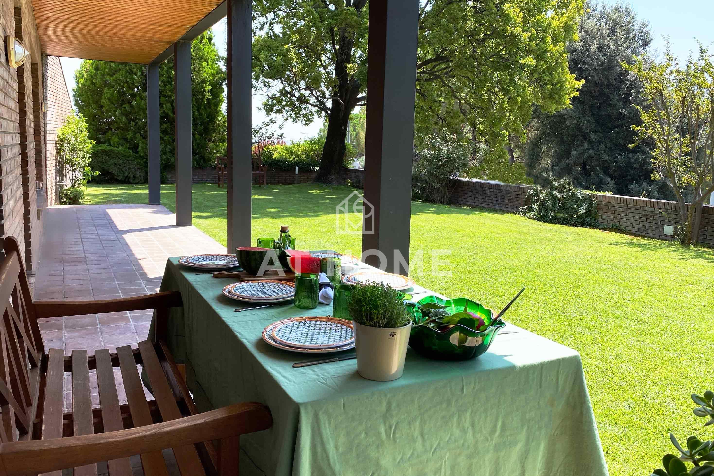 The house has its own water for garden irrigation, aerotermia, two large garages located, one under the house, and the other in a side area of the plot in an area that is currently a beautiful and large natural wooded garden. This part of the garden is connected to the main area of the house through a kind of path with brick and marble details that give continuity to the general architectural style.