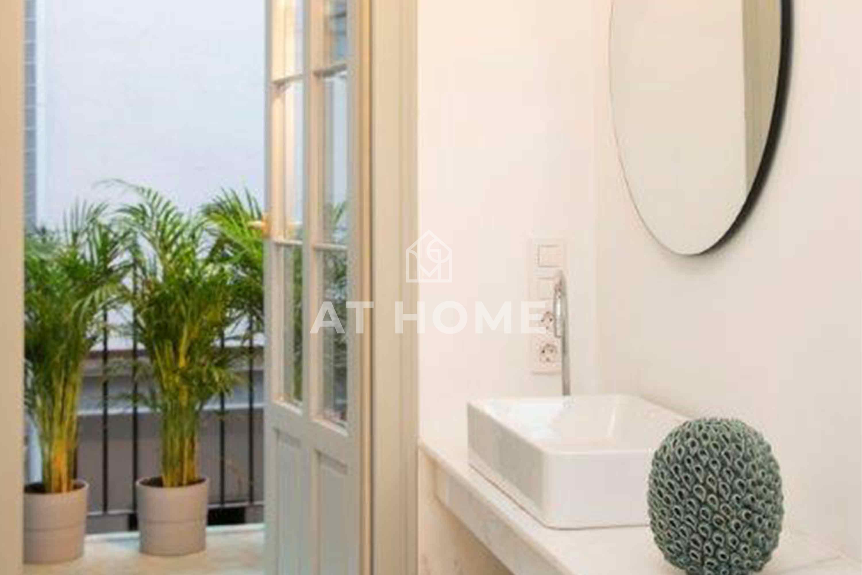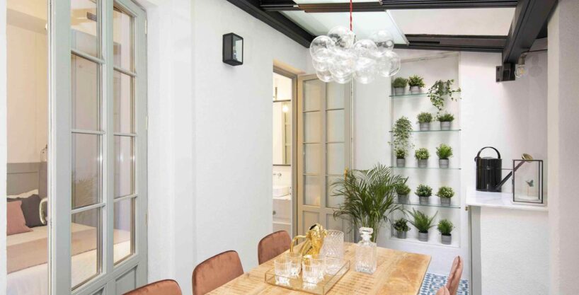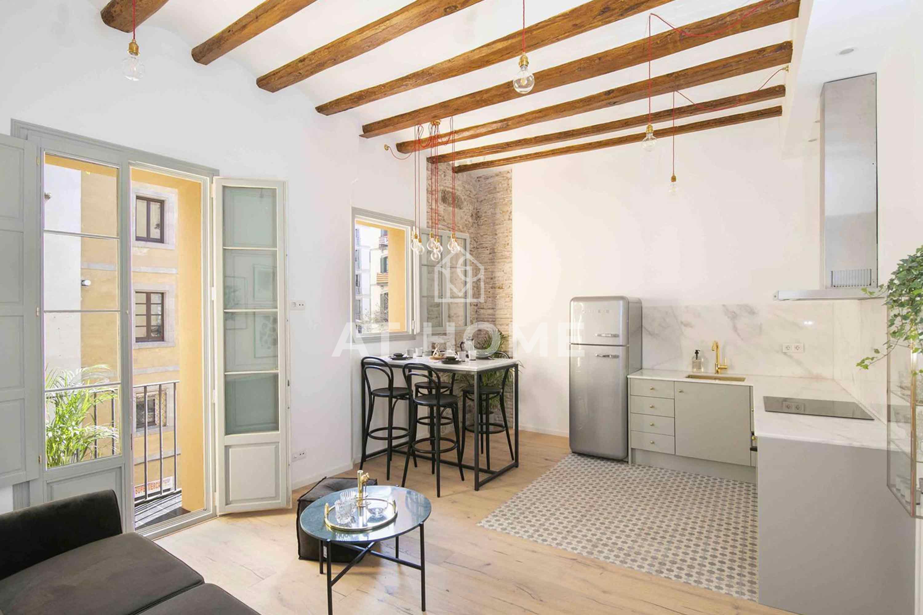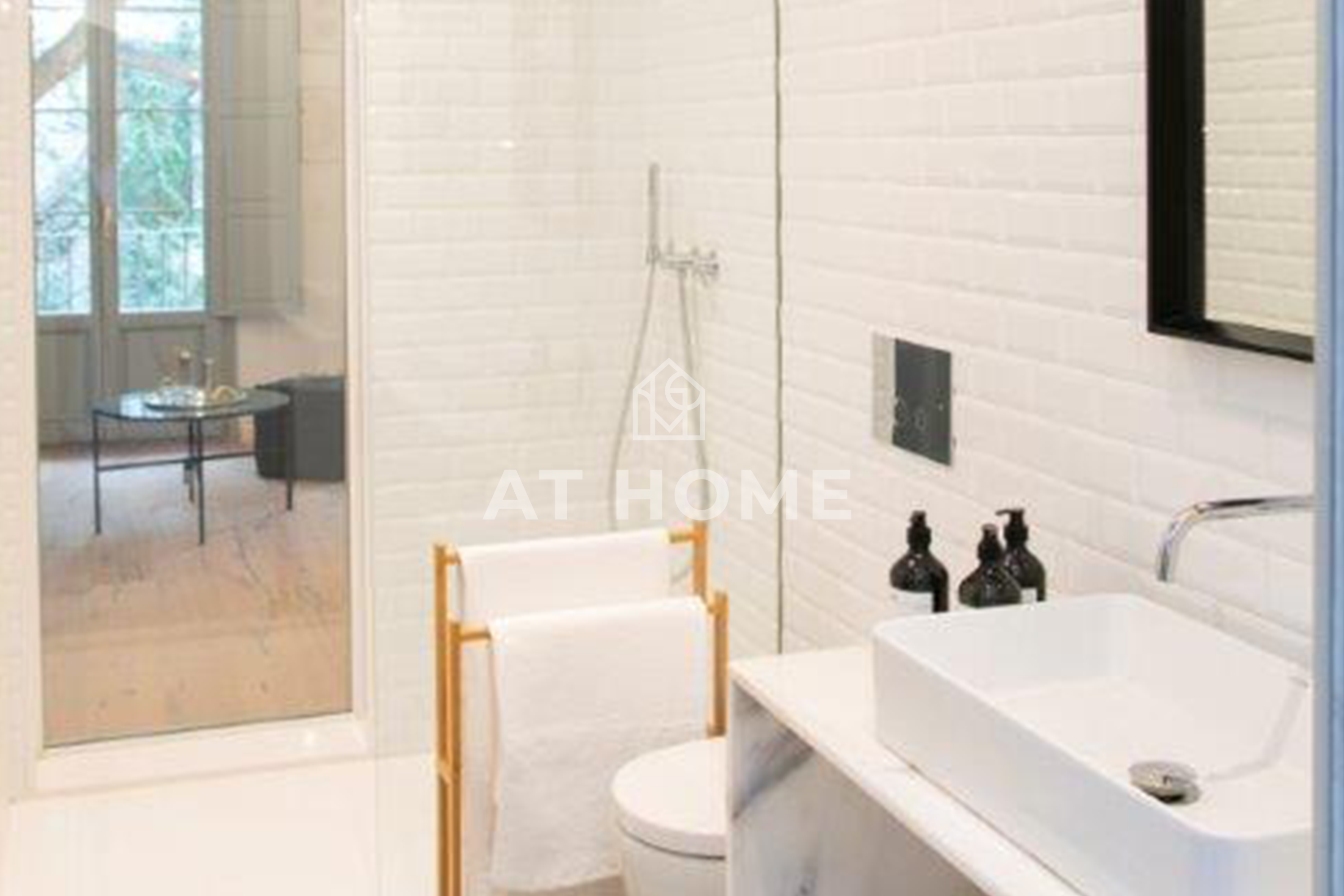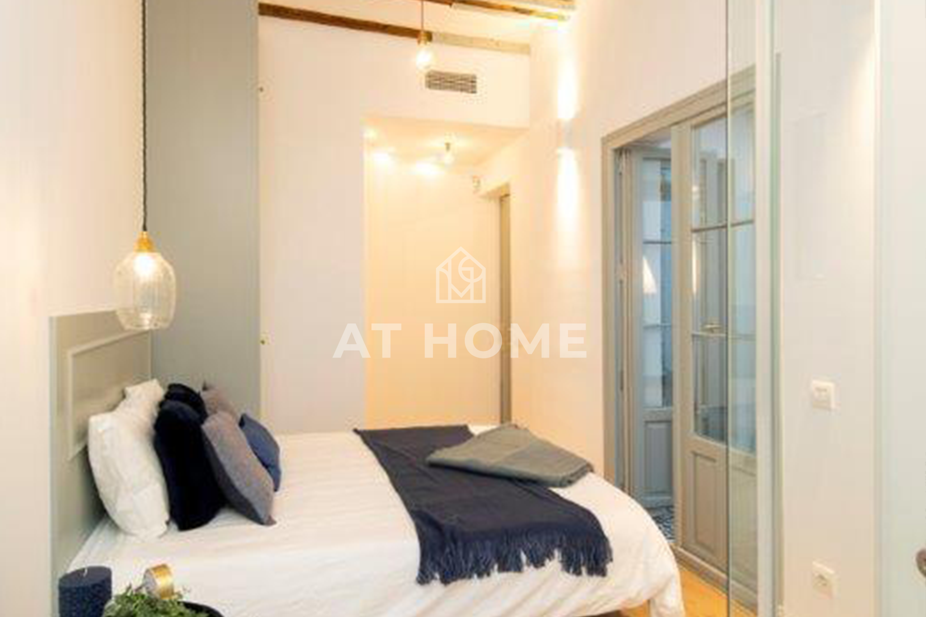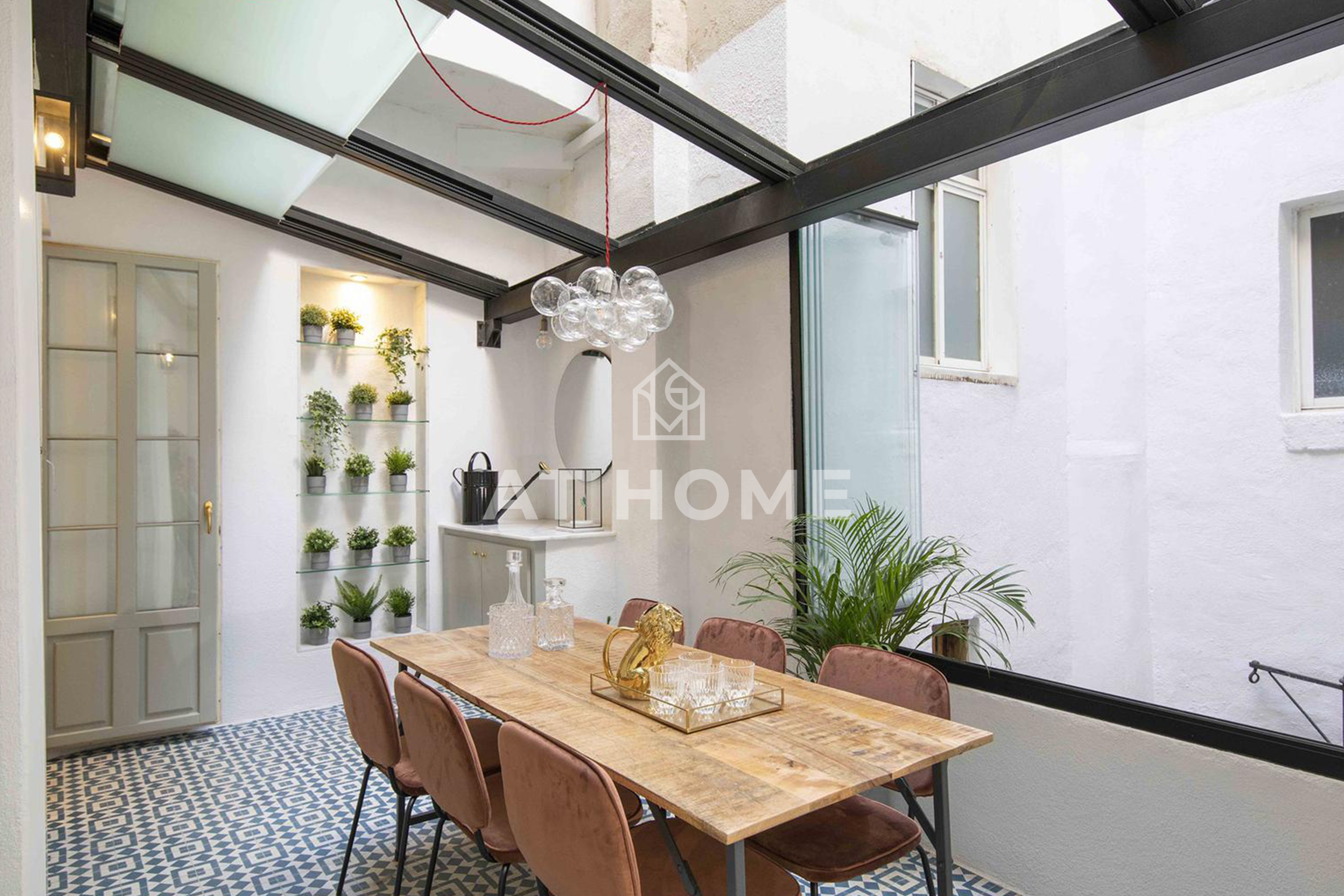 Beautiful flat, refurbished in the heart of the Borne, furnished and ready to move in, with a spectacular patio with automatic mobile roof, to enjoy in winter or summer as a terrace. Located on the first floor, it is refurbished with premium finishes and the kitchen is fully equipped. The kitchen is open to the spacious living room and gives luminosity to the whole room, with two bedrooms en suite with complete bathroom. It is an ideal flat to share, and enjoy life in Barcelona, next to Parc de la Ciutadella, Santa Maria, and all its cultural and gastronomic offer.