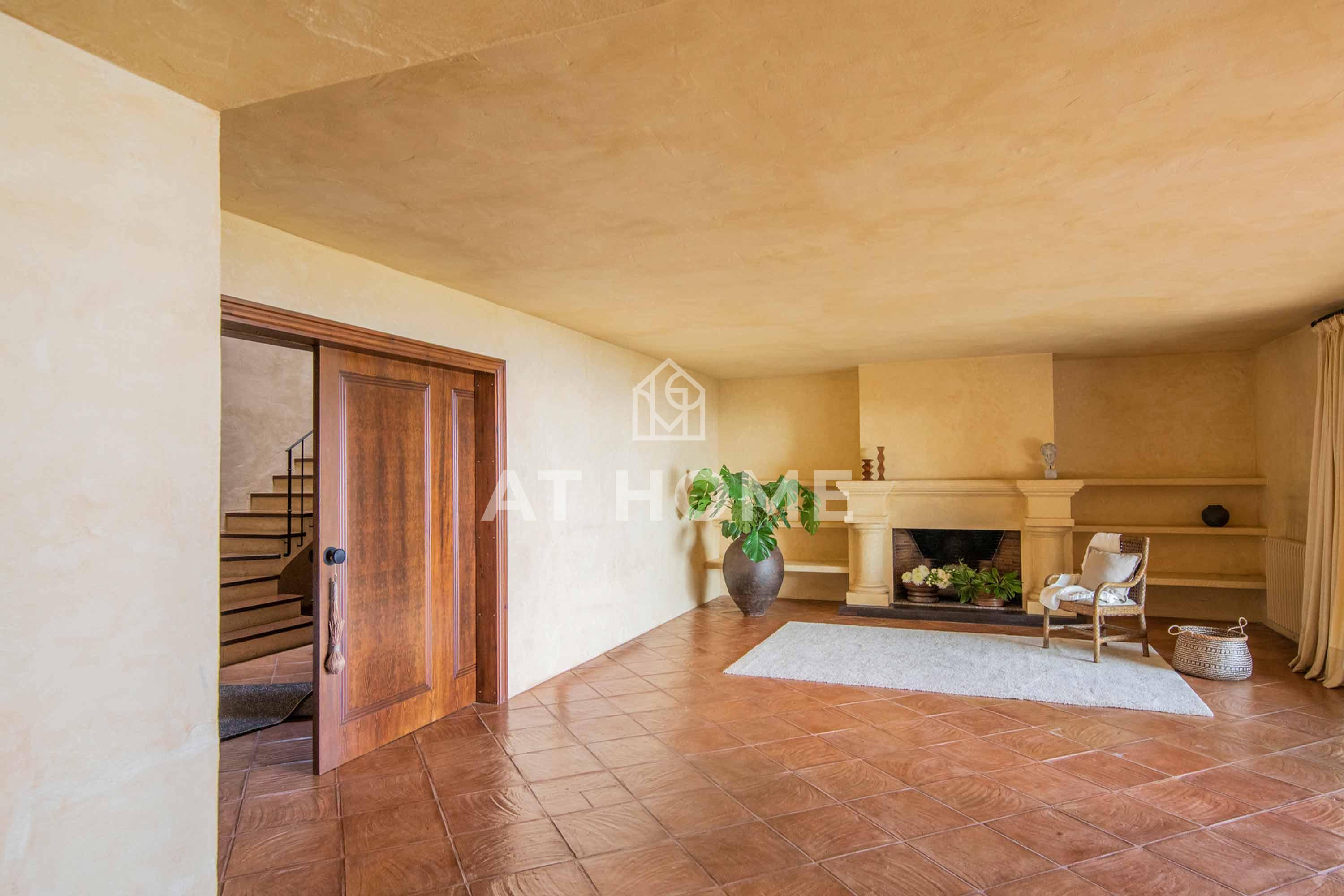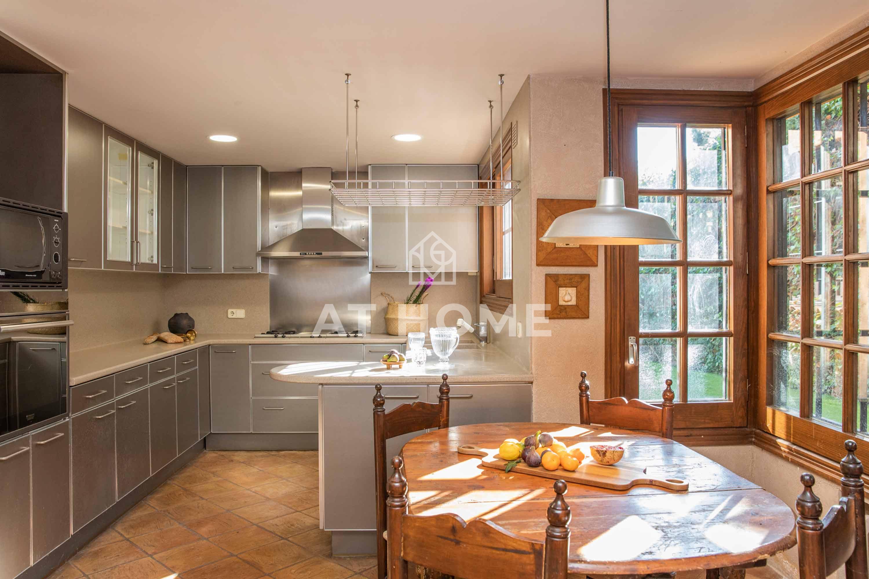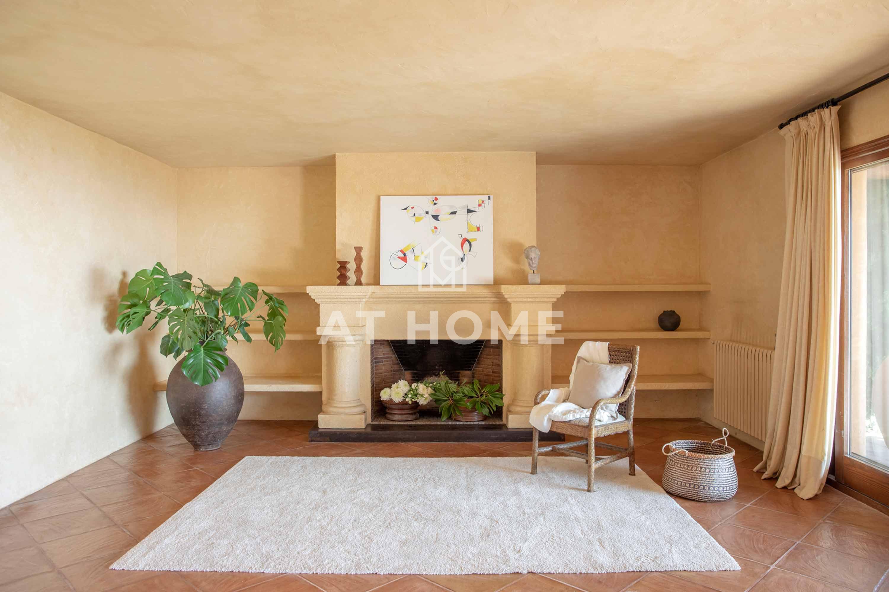 In the garden of the house an infinity pool has been installed, with unparalleled views of the Mediterranean Sea and Barcelona. Porch built with wooden beams and handmade Catalan tuff flooring. There is also another porch at the back of the house, which is currently used as a leisure and play area. Garage for two vehicles in the interior area plus two more outside. Installation of city gas heating with radiators.