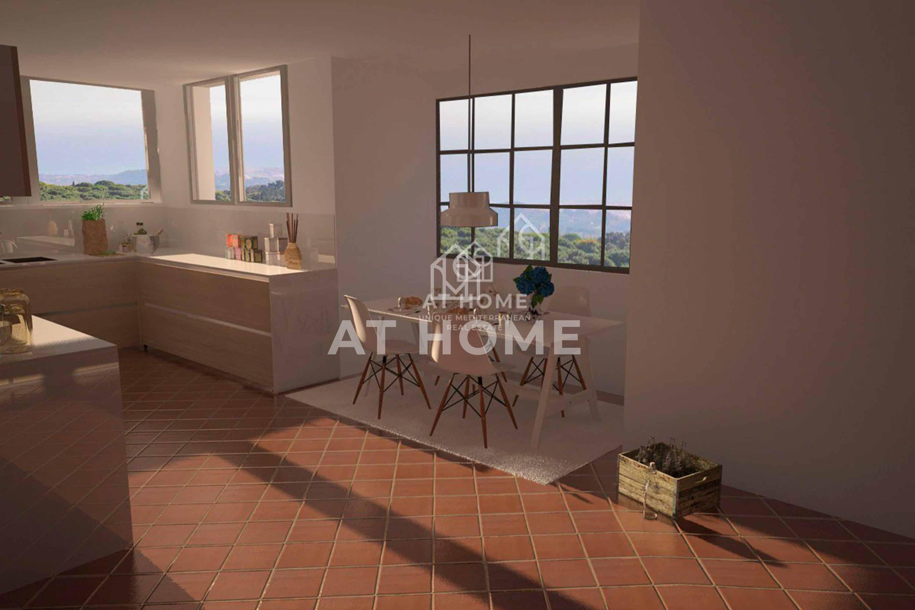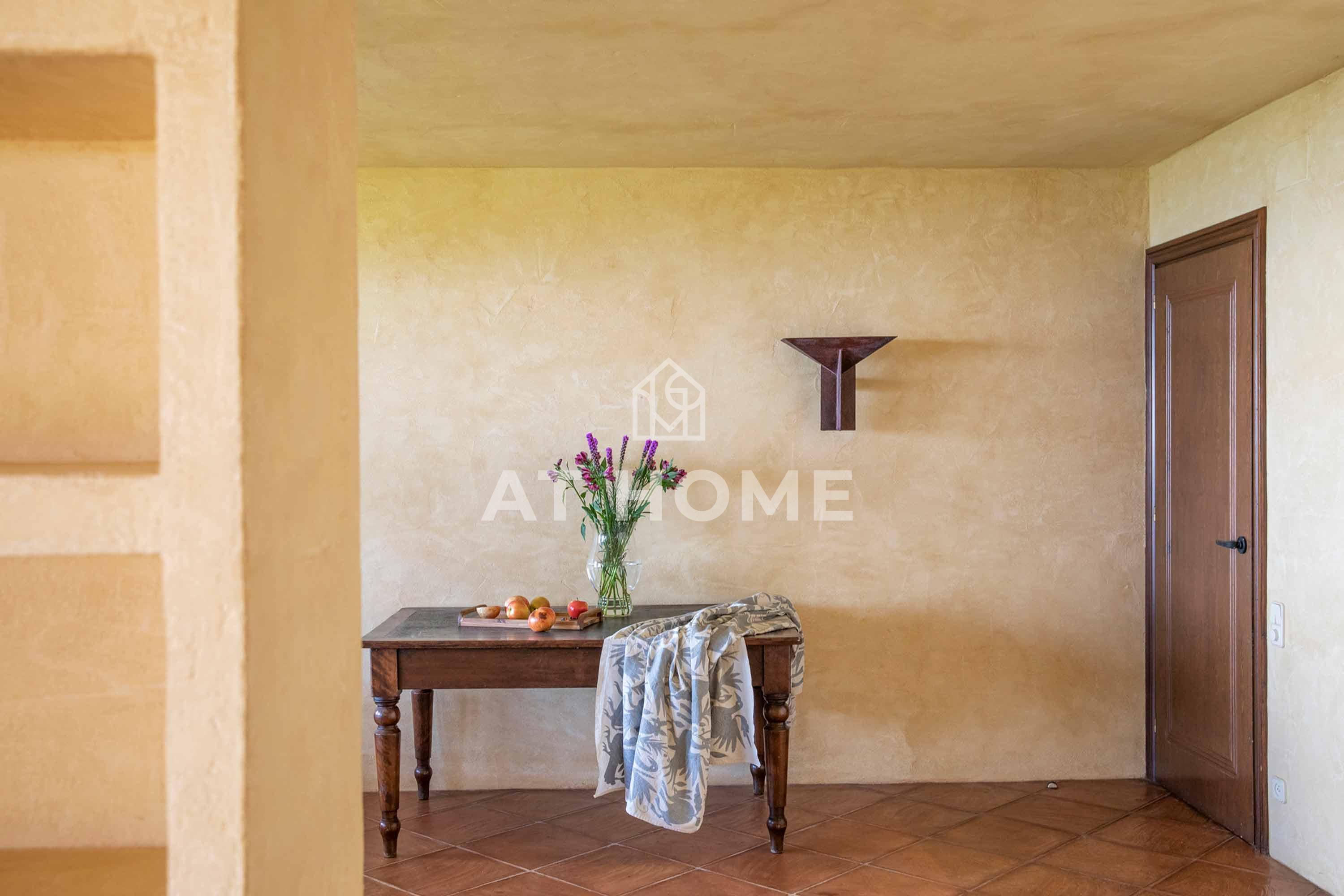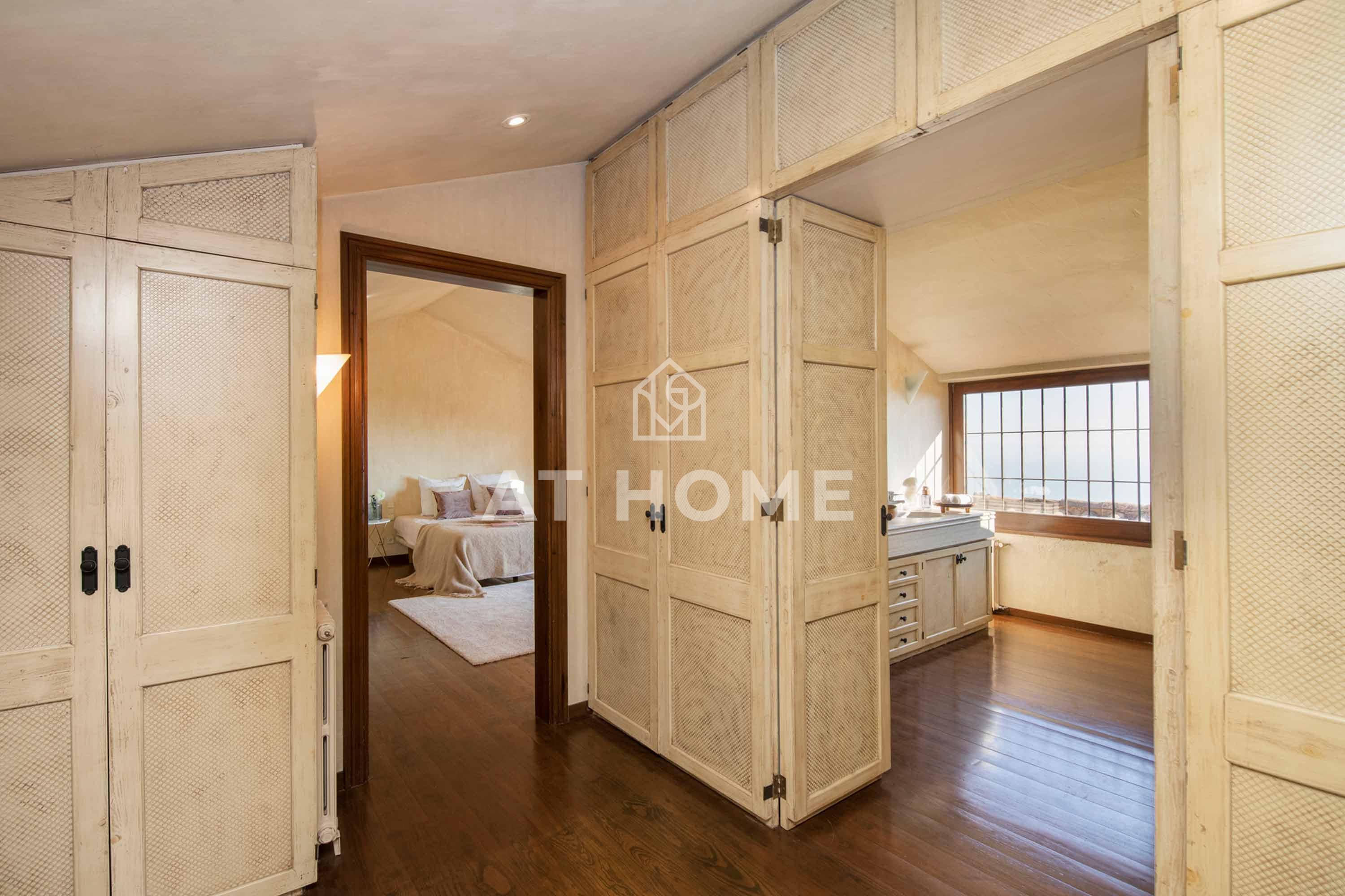 In the garden of the house an infinity pool has been installed, with unparalleled views of the Mediterranean Sea and Barcelona. Porch built with wooden beams and handmade Catalan tuff flooring. There is also another porch at the back of the house, which is currently used as a leisure and play area. Garage for two vehicles in the interior area plus two more outside. Installation of city gas heating with radiators.