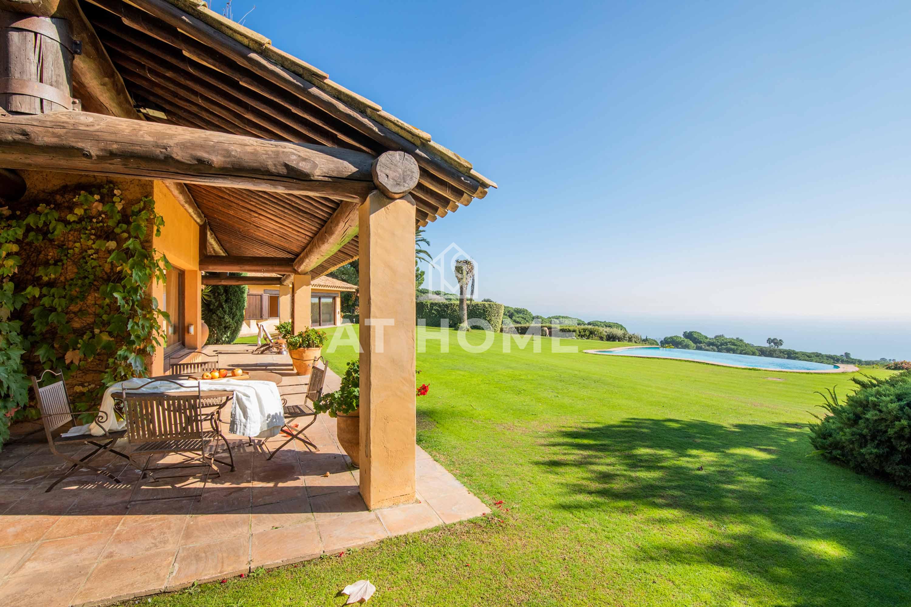 Villa in Supermaresme with sea views. In exclusivity we offer one of the jewels of the Maresme in the well-known Supermaresme urbanization with the best views of the coast of Barcelona, within an unbeatable residential luxury environment. The property of 478 m2 is built on a flat plot of 2666 m2 that offers total privacy to the house, and unparalleled sea views giving a sense of peace and privacy unique. The construction is on one floor except for the upper part where the master suite with dressing room, gym and sauna is located, providing luxury, comfort and independence with unparalleled sea views, which give a sense of absolute peace.This floor has wooden floors and air conditioning.