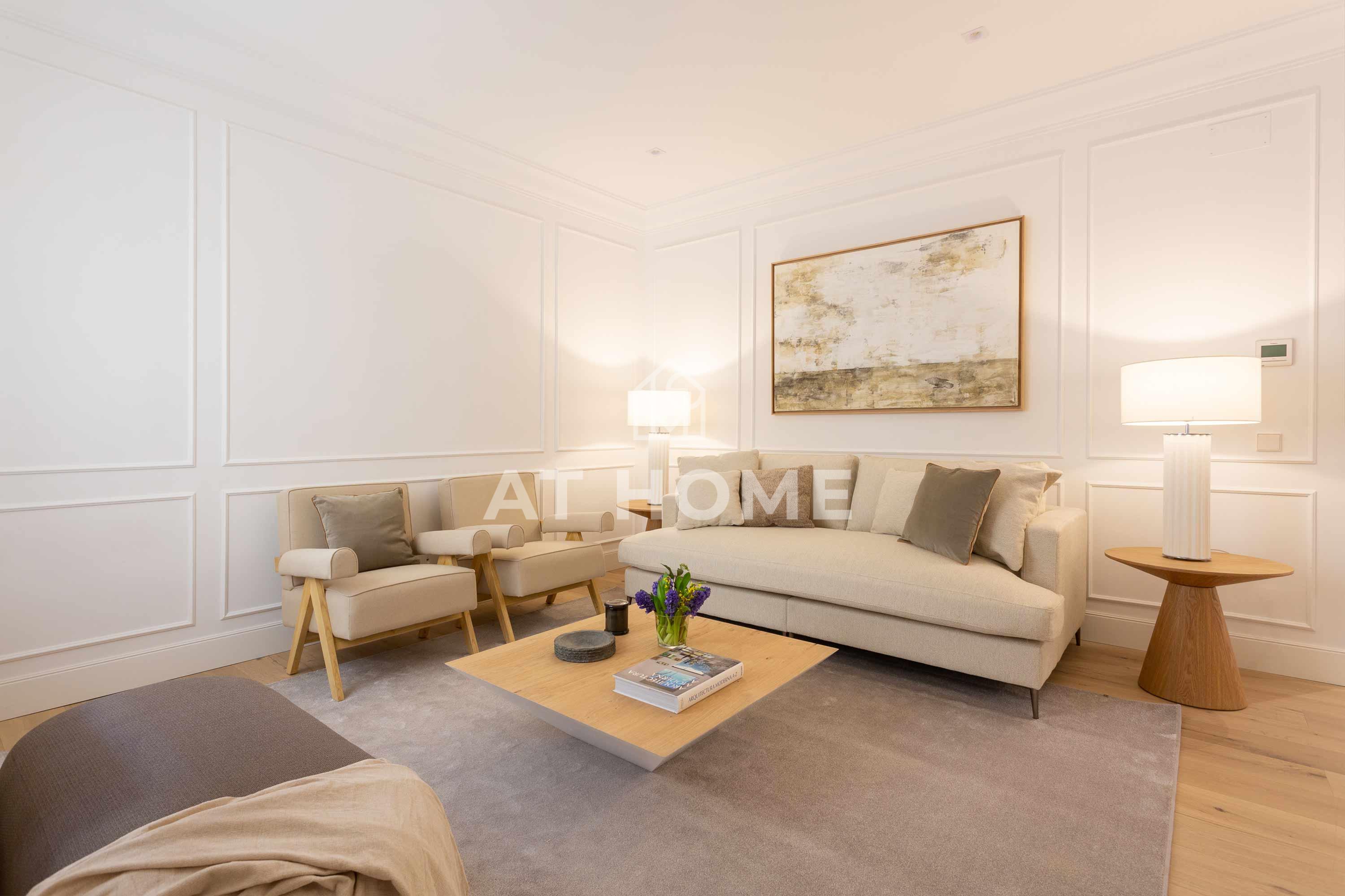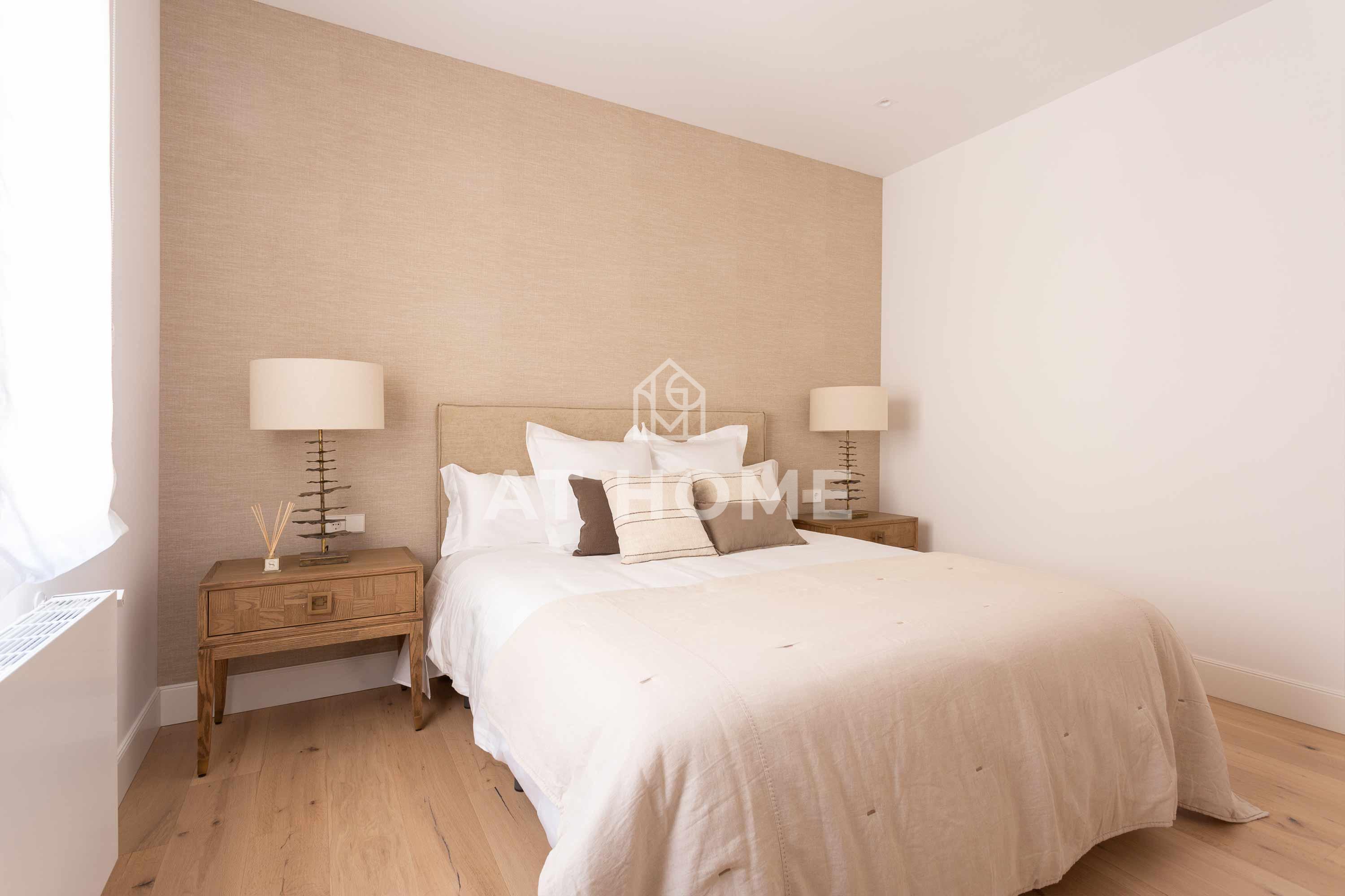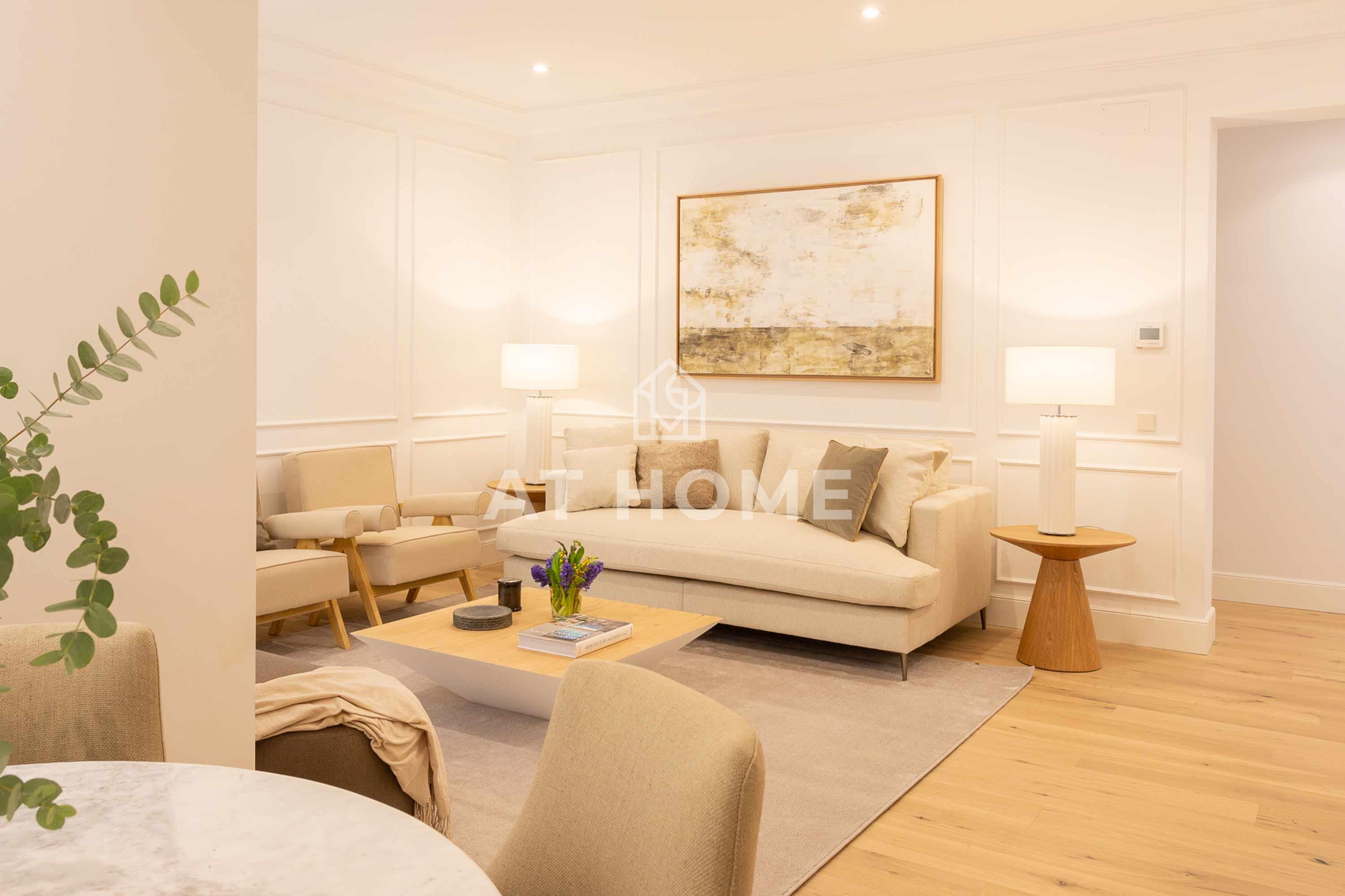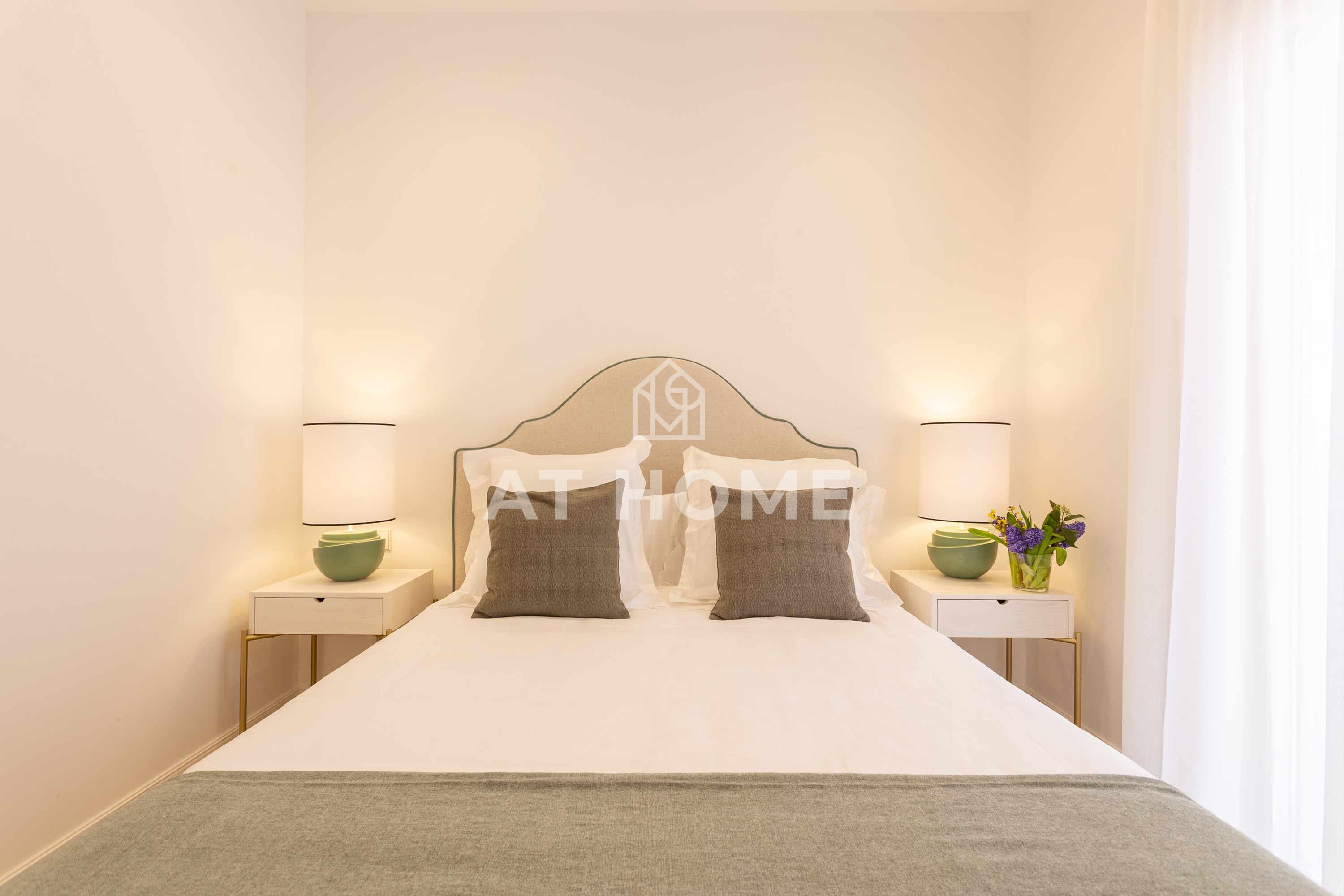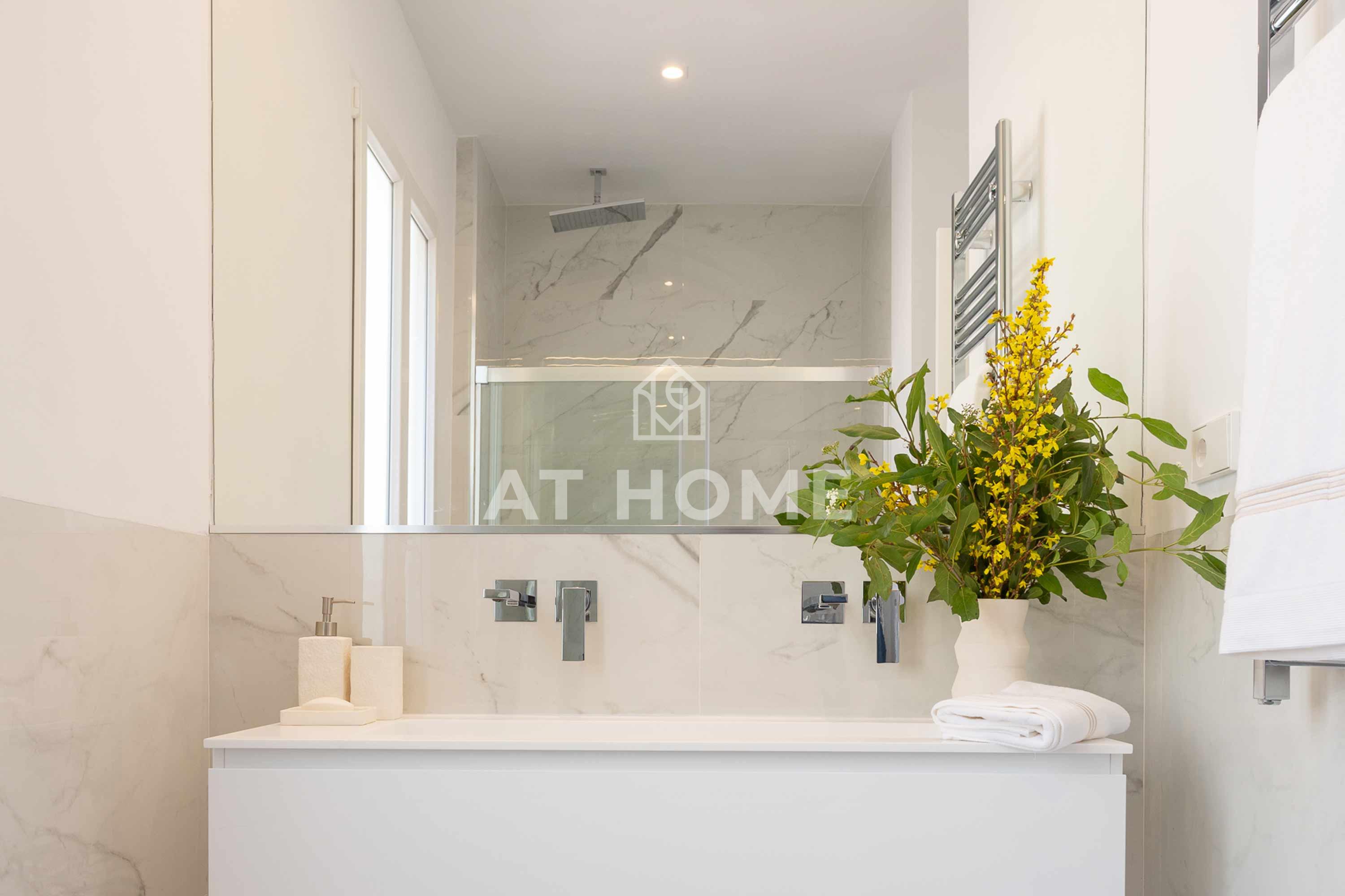 This elegant three-bedroom home has been refurbished, furnished and decorated brand new to offer you the best living experience. It has three en-suite bedrooms with natural morning light, which guarantees a quiet and relaxing atmosphere. The kitchen, integrated in the living room, has the best qualities of the market, including Silestone countertops and Bosch appliances.