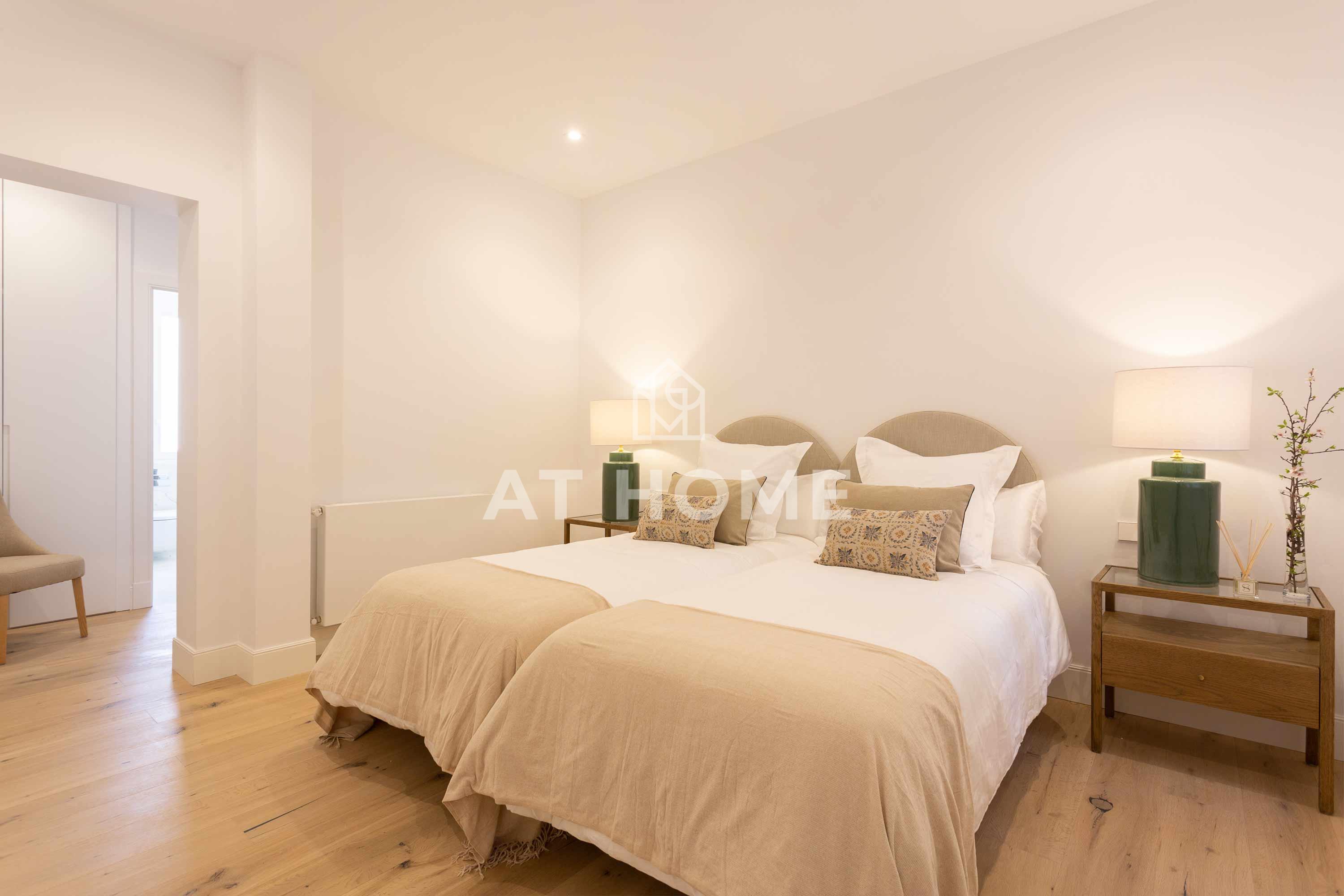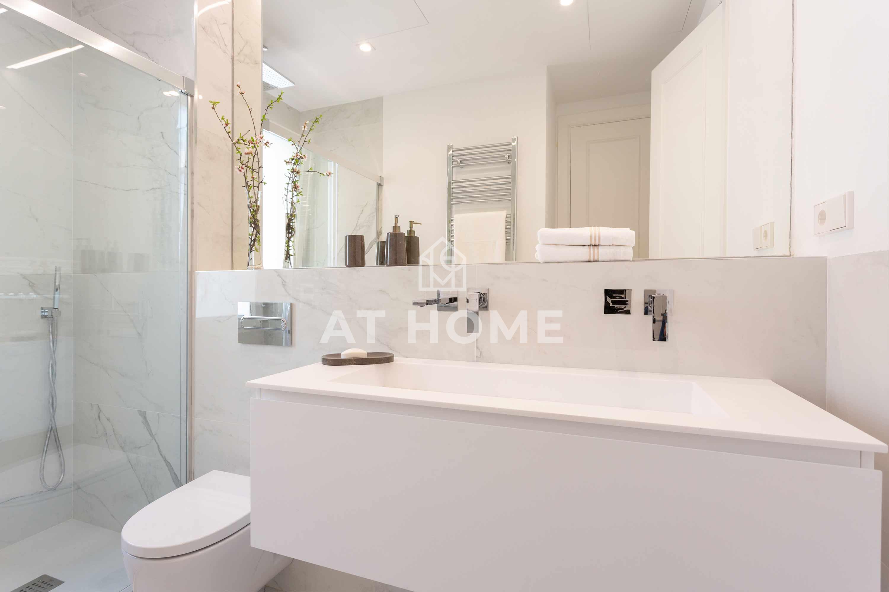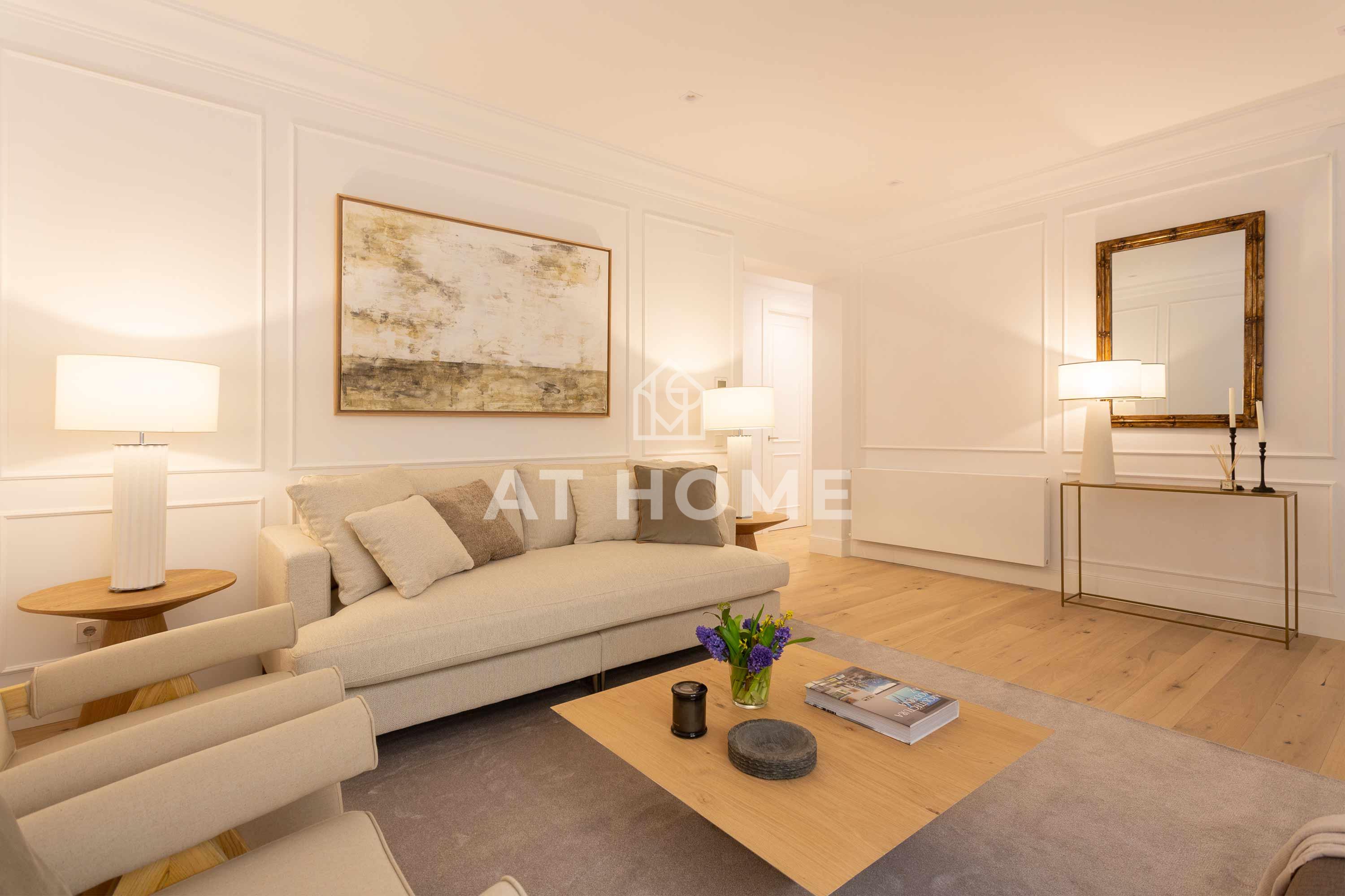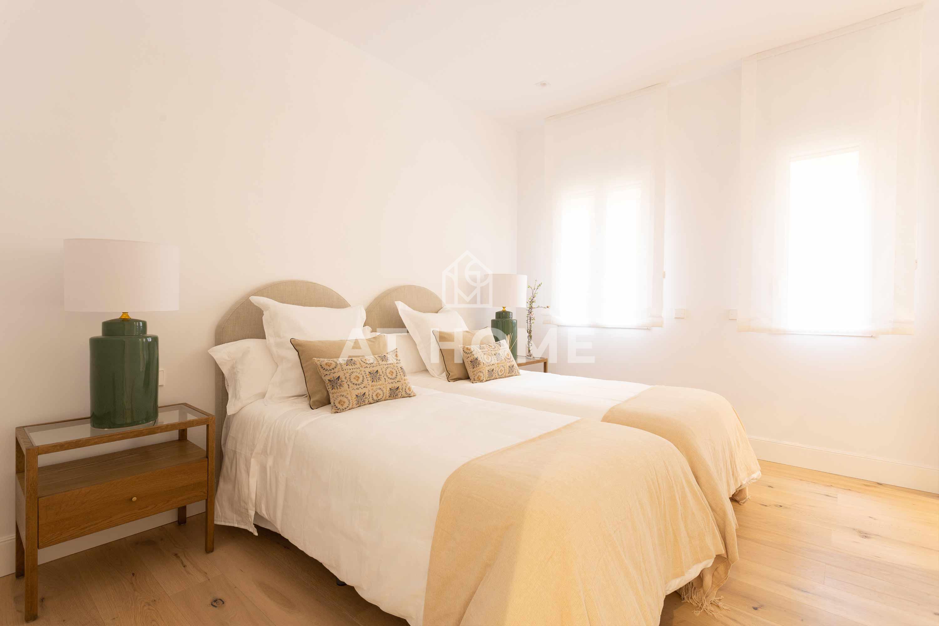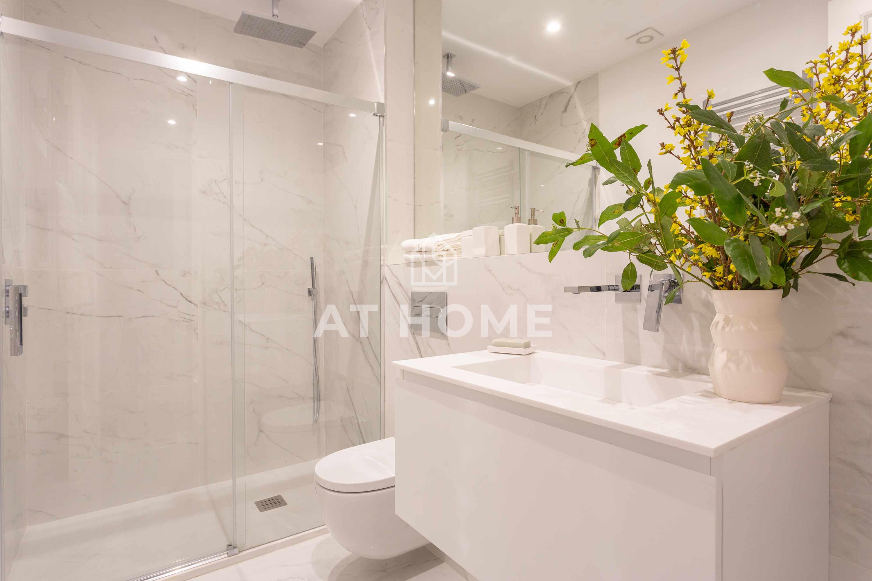 This elegant three-bedroom home has been refurbished, furnished and decorated brand new to offer you the best living experience. It has three en-suite bedrooms with natural morning light, which guarantees a quiet and relaxing atmosphere. The kitchen, integrated in the living room, has the best qualities of the market, including Silestone countertops and Bosch appliances.