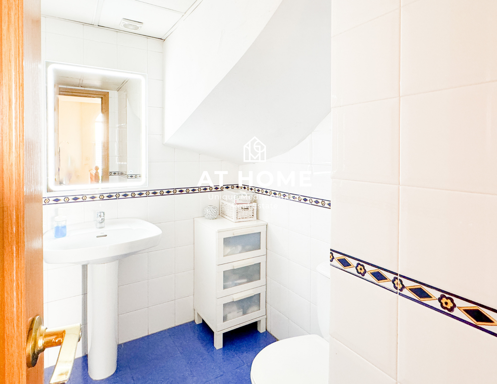 Construida en 1995 y mantenida en perfecto estado, la casa cuenta con una distribución funcional que incluye una planta principal con un luminoso salón-comedor, cocina independiente, aseo y acceso a un jardín privado. En la primera planta, encontrarás tres dormitorios, incluyendo una suite, un dormitorio doble y uno sencillo, además de otro baño completo. La planta superior ofrece un estudio abuhardillado con terraza/solárium,