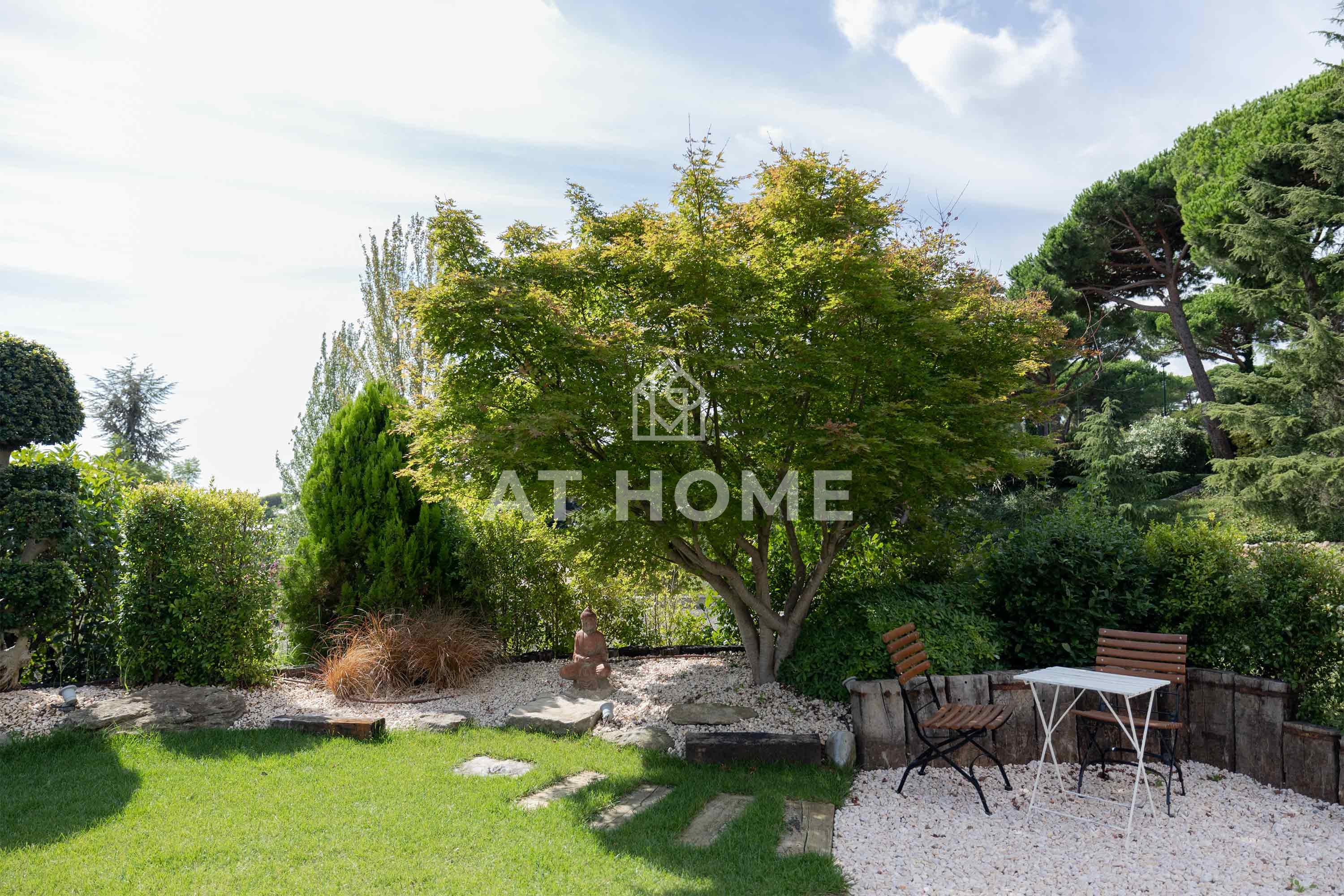 El jardín de la finca es de autor y se distribuye en varios espacios de descanso, una zona zen con un estanque vivo, un jardín de cactus, grandes plantas exóticas y terrazas de madera, así como una zona de reunión con fogata exterior. Todas las zonas verdes y espacios de césped están dotados de riego automático.