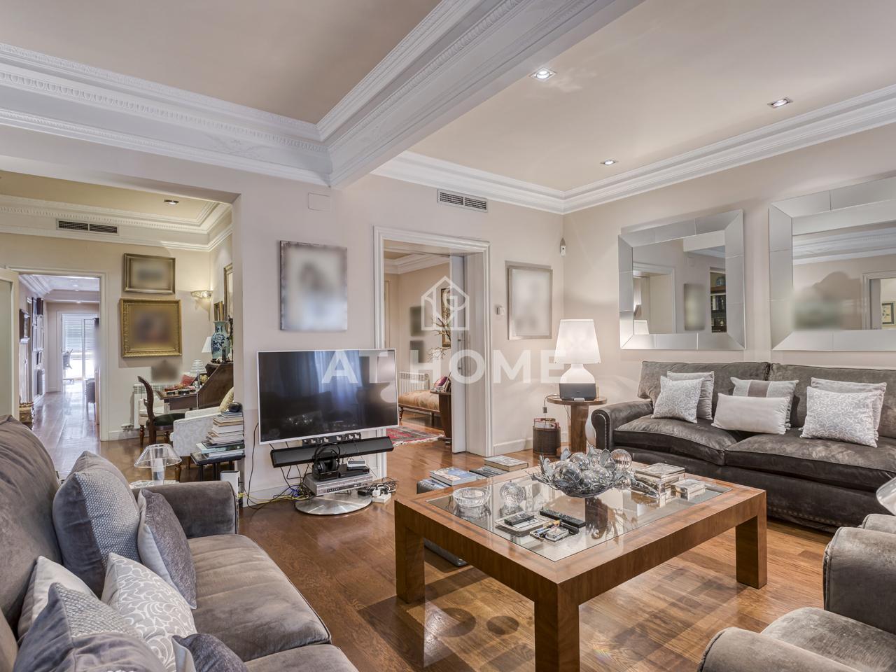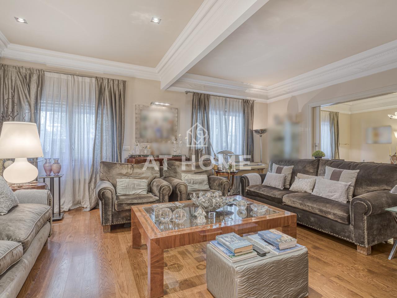 Dispone de un gran salón-comedor, una espaciosa cocina office completamente equipada con acceso a la zona de aguas, 4 habitaciones (3 dobles exteriores con vistas a la terraza y 1 individual) y 4 baños completos. Además, incluye una habitación de servicio para mayor comodidad. Entre los acabados destacan el parquet de roble americano, las puertas lacadas en blanco, el aire acondicionado por conductos y las ventanas de madera maciza con sistema de aislamiento Climalit.