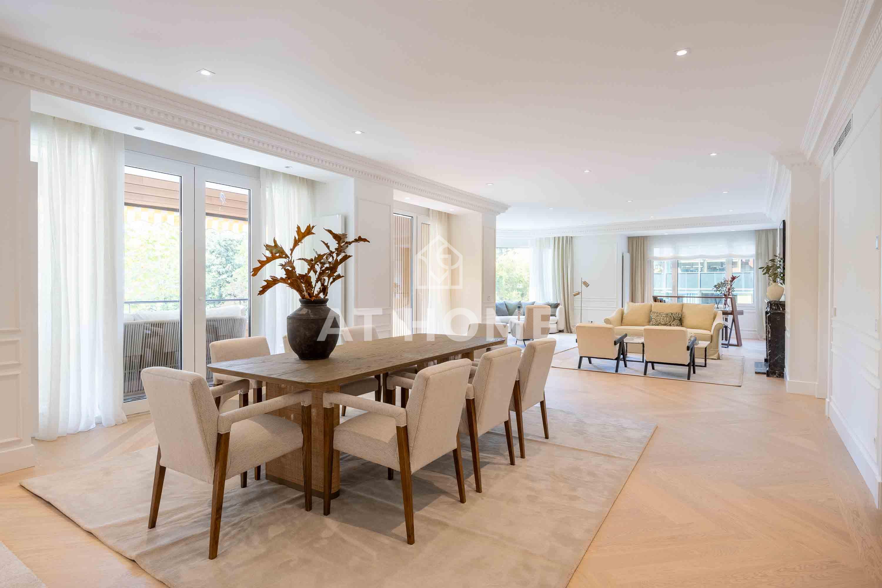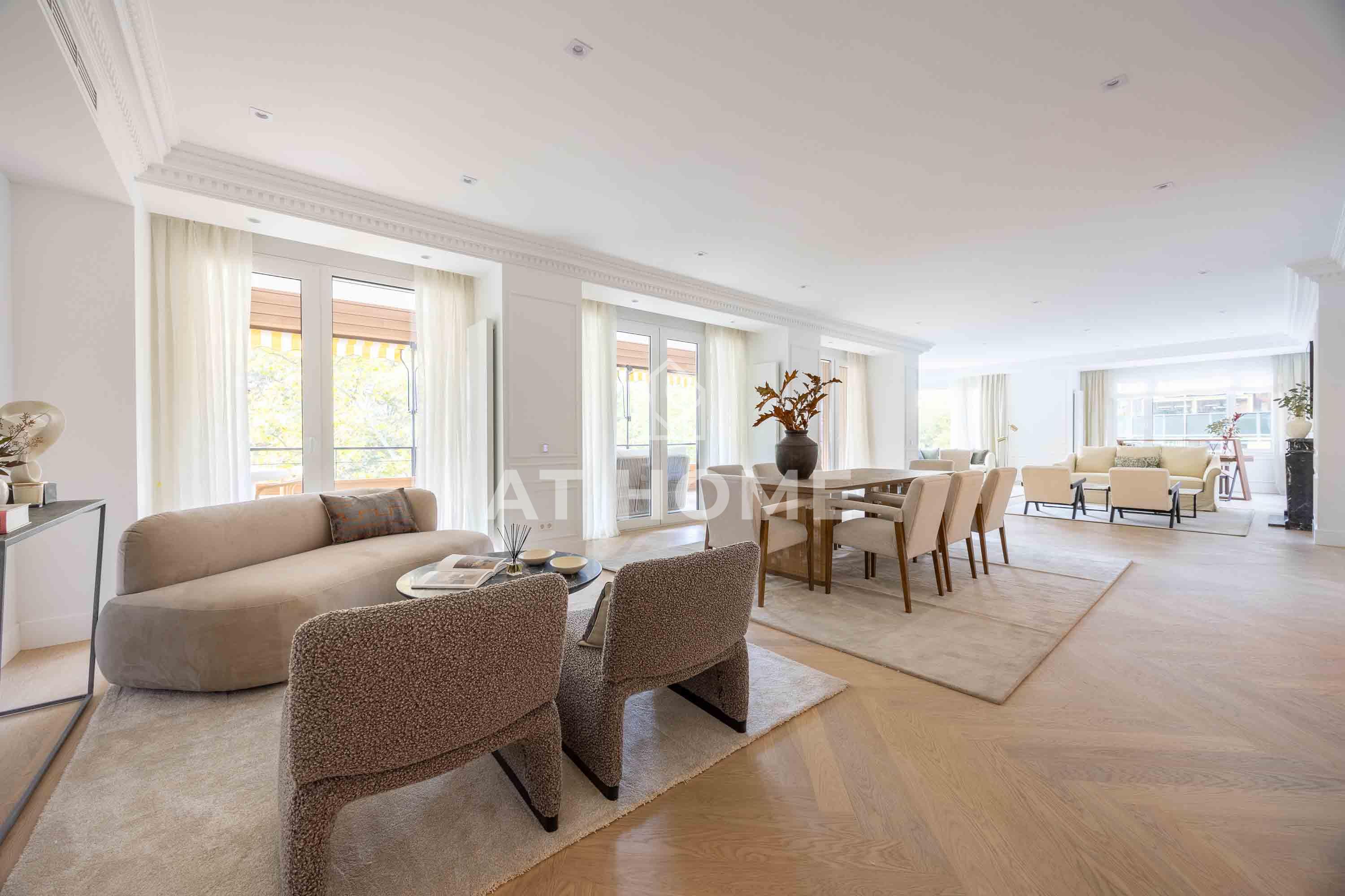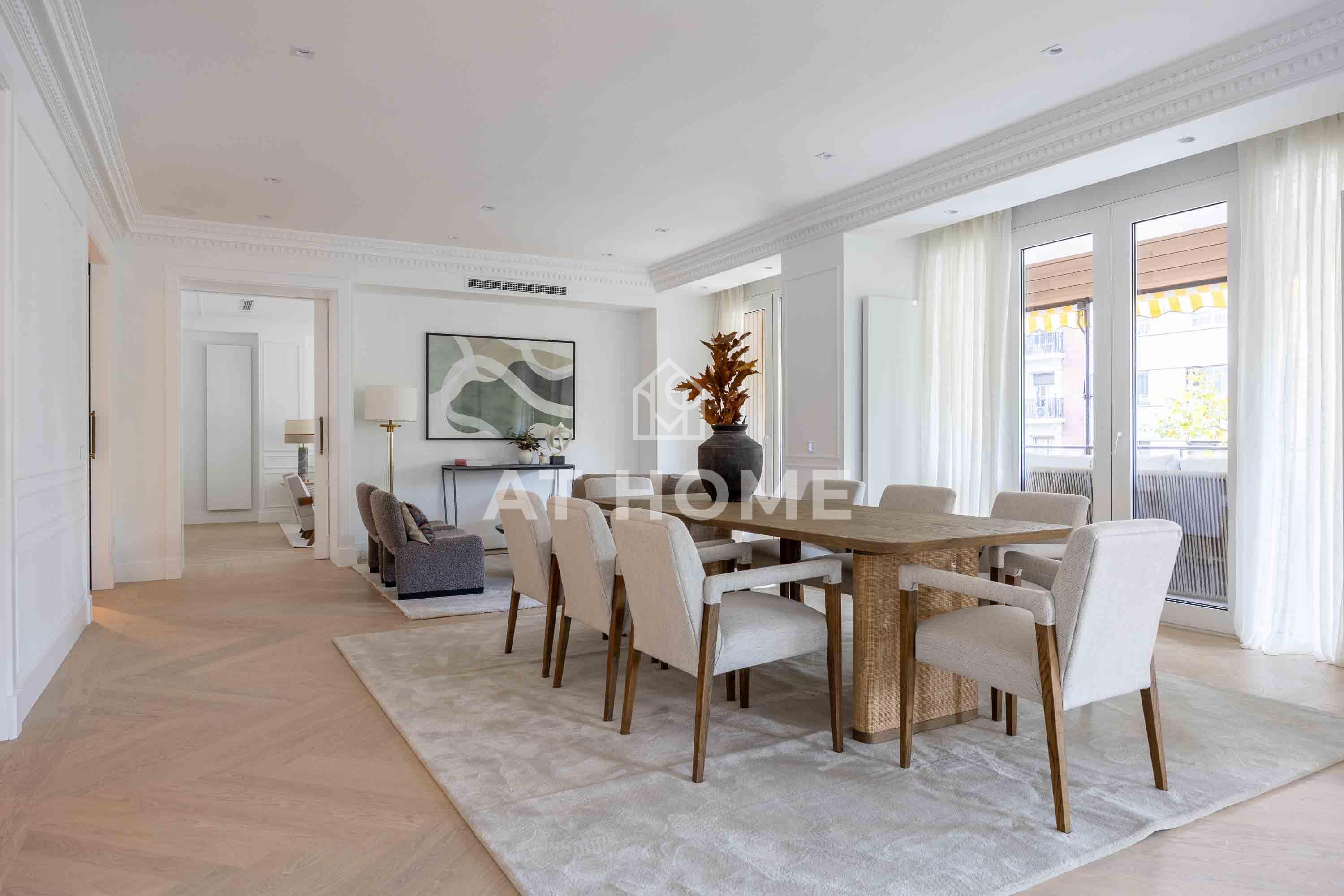 Este exclusivo piso de lujo, completamente reformado y amueblado, se encuentra en una de las zonas más prestigiosas de Madrid. Con una superficie de 462 m², esta propiedad ofrece espacios amplios, luminosos y decorados con un gusto impecable. Cada detalle ha sido cuidadosamente seleccionado para combinar elegancia, confort y calidad.