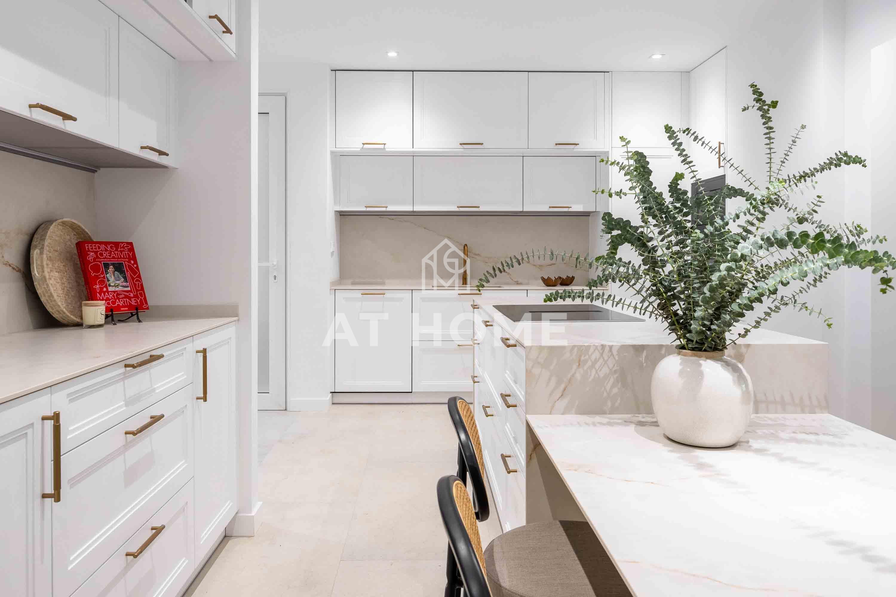 La cocina es un espacio moderno, equipado con electrodomésticos de alta gama y acabados en materiales de primera calidad. Perfecta para quienes disfrutan de la cocina y el arte de recibir invitados en un entorno sofisticado. Los muebles de diseño completan la estética de esta vivienda, dotándola de una atmósfera refinada y contemporánea.