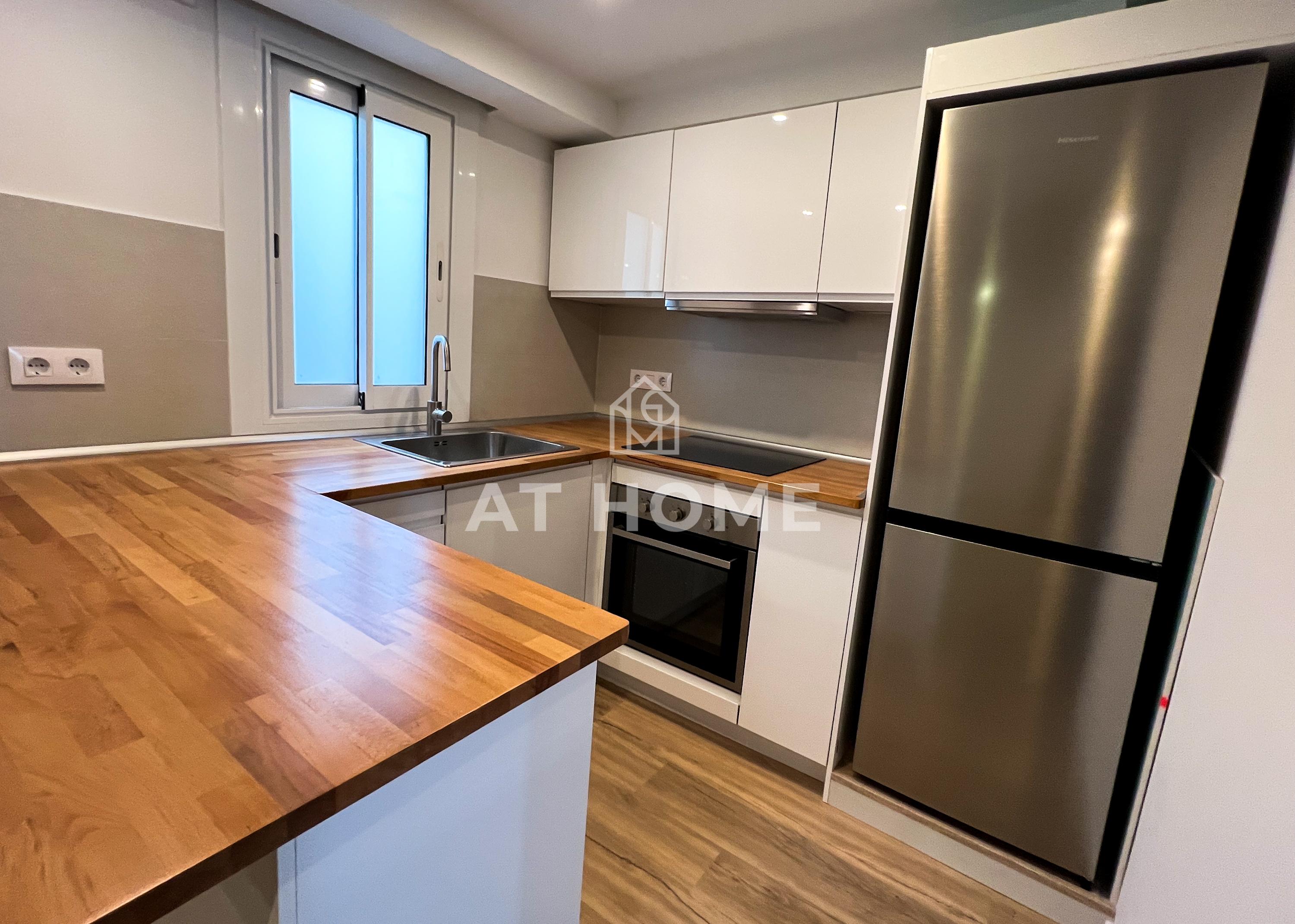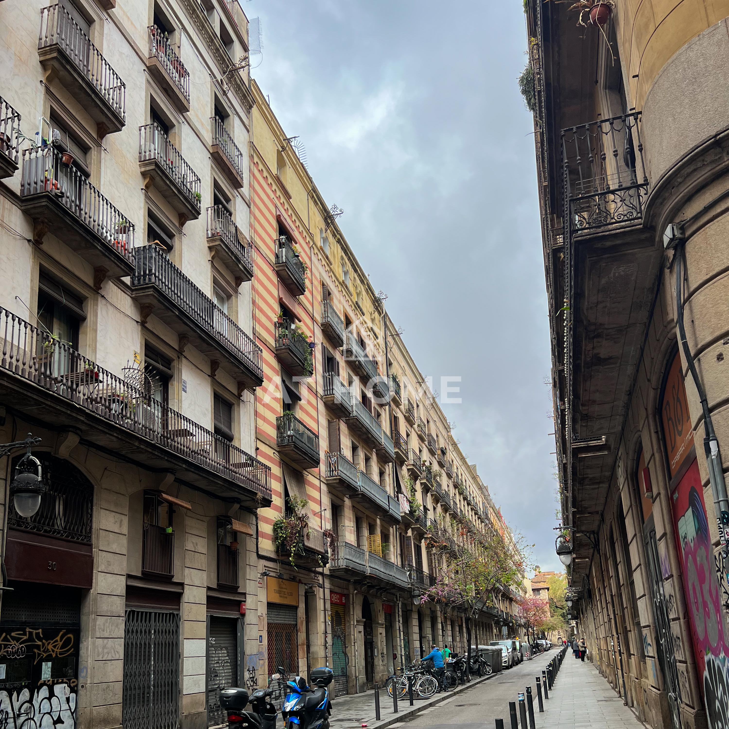 Este piso de 66 m2 construido está completamente reformado y listo para entrar a vivir. Se encuentra en la 4ª planta real de un edificio sin ascensor en la Rambla del Raval, una de las calles más emblemáticas de Barcelona.La vivienda cuenta con 2 habitaciones dobles (un tipo suitte) con salida a un balcón, 2 baños, cocina equipada, aire acondicionado y suelos de parquet. El salón-comedor es amplio y luminoso. La cocina está equipada con electrodomésticos de alta gama. Los baños están completos y reformados. El piso está situado en una zona muy bien comunicada, a pocos pasos de la Plaza Catalunya, el Paseo de Gracia y el Puerto de Barcelona.