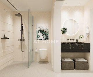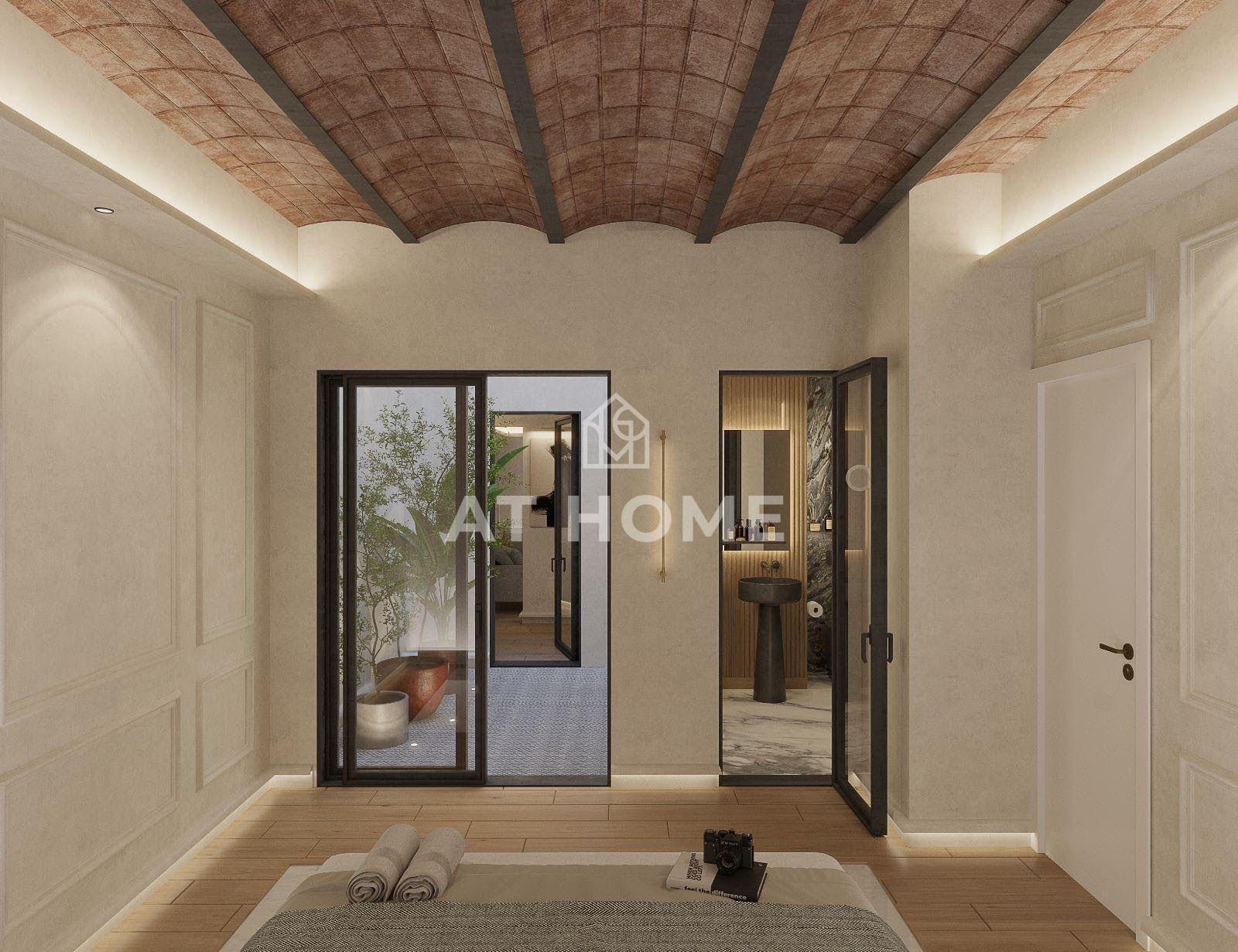 Las tres habitaciones han sido diseñadas para ofrecer privacidad y comodidad, con amplios armarios y una distribución inteligente. La suite principal es un verdadero refugio, con un espectacular techo de bóveda catalana, un espacioso vestidor y un baño en suite elegante y funcional. Además, cuenta con una terraza privada al aire libre, ideal para relajarte y disfrutar del aire fresco de la ciudad. Los otros dos baños también destacan por su diseño moderno y acabados de primera calidad.