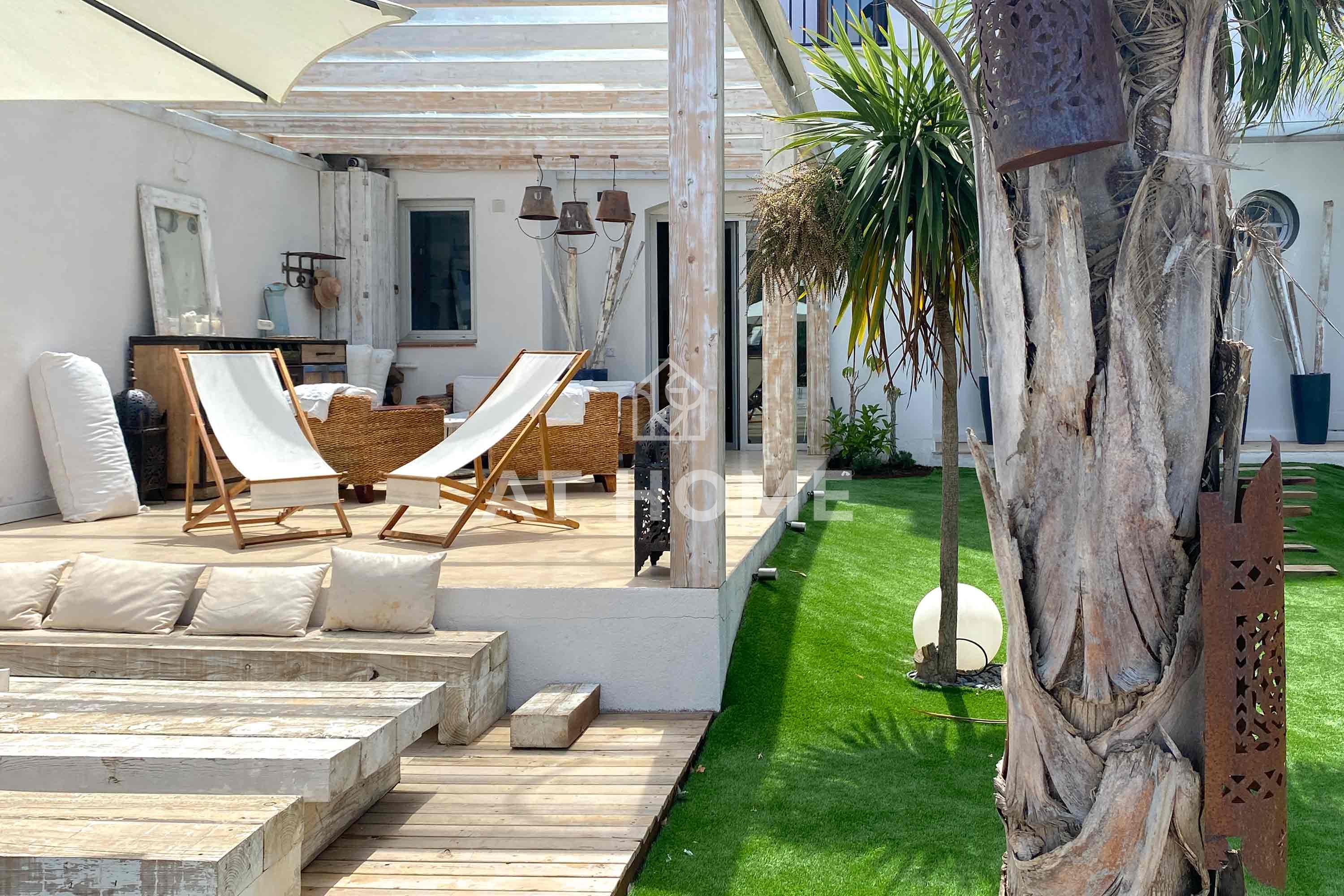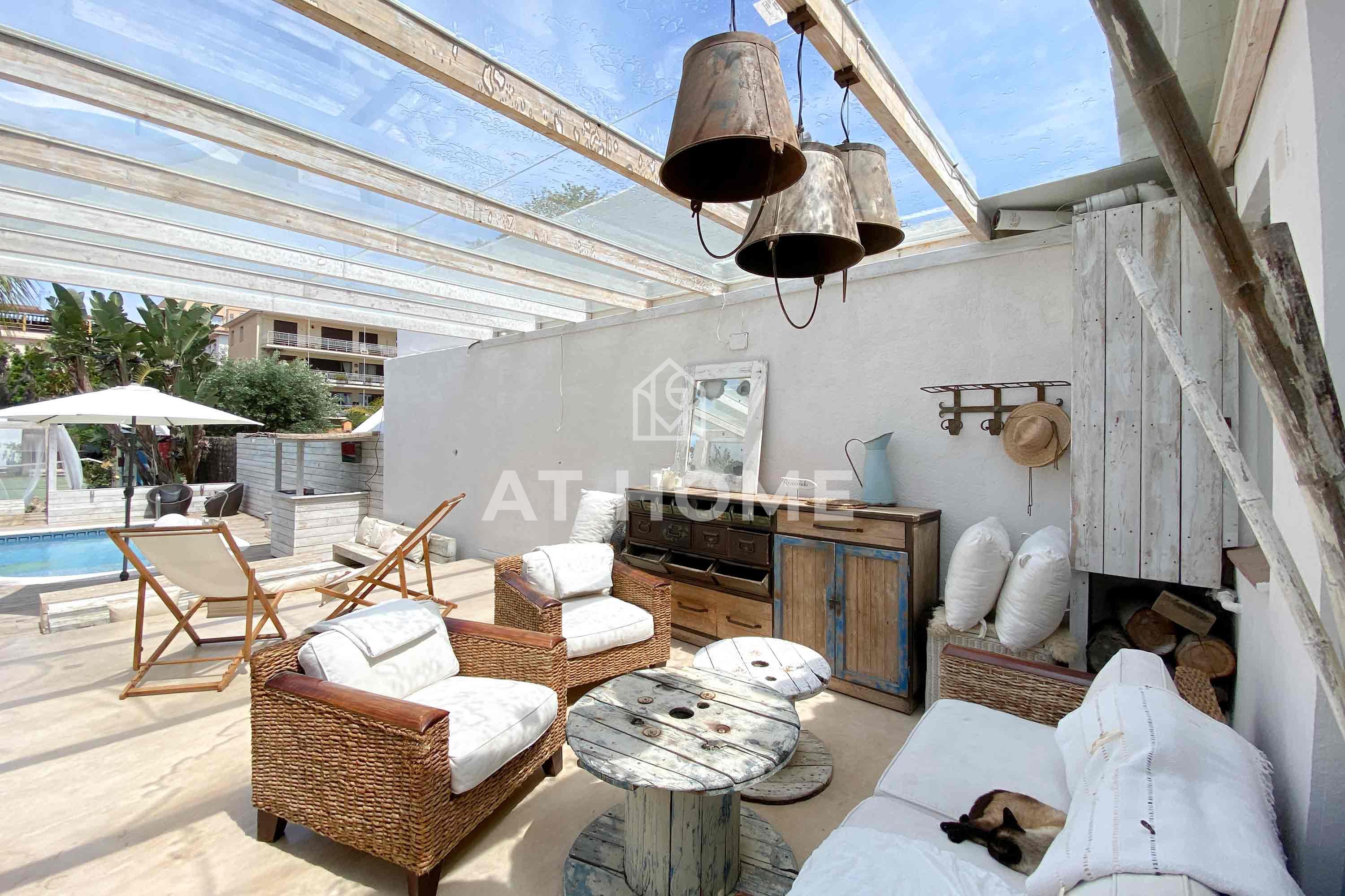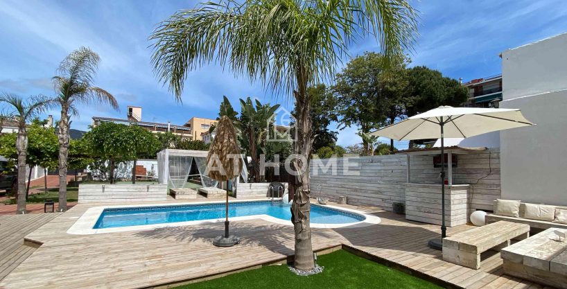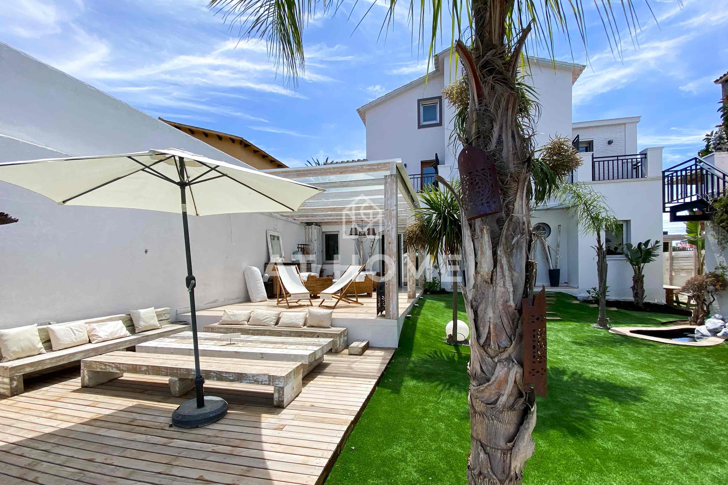 Unifamiliar reformada en el puerto de Premià. La propiedad dispone de un elegante jardín delantero en el acceso principal de la casa, y de un gran jardín con piscina y zona de chill out en la parte de atrás.